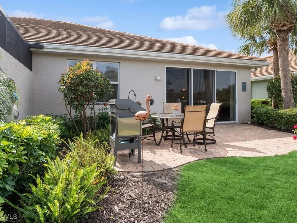SELLER OFFERING $10,000 TOWARD HOME IMPROVEMENTS, RATE BUY-DOWN OR CLOSING COSTS* Welcome to Pelican Preserve, Fort Myers’ premier 55+ gated community known for its welcoming atmosphere, resort-style amenities and active lifestyle. This inviting 1,355 sq. ft. attached villa offers 2 bedrooms, 2 full bathrooms and a 2-car garage, designed for easy single-story living with a spacious living room that feels larger than comparable floorplans. Enjoy a serene water view overlooking a lush preserve, where you can relax on the open patio and watch wildlife in a peaceful setting. Recent updates include tile flooring throughout, a new roof (2022), new A/C (2023), new garage motor (2023) and exterior paint (2024). A full-home water filtration system, a $7,000 upgrade, adds everyday convenience and long-term value. Offered partially furnished, this move-in ready villa has been beautifully maintained for worry-free living. Residents of Pelican Preserve enjoy exceptional amenities within the 70,000 sq. ft. Plaza del Sol Town Center, featuring Destinations fine dining restaurant, Flip Flops poolside café with weekly entertainment and a state-of-the-art fitness center. The community also offers three resort pools, sauna and steam rooms, spa services, and a weekly farmer’s market. Sports and recreation options include eight Har-Tru tennis courts, 12 pickleball courts, a softball field, basketball, two bocce courts and a lawn bowling green. Nature lovers will appreciate the 38-acre nature preserve with walking trails, a butterfly garden, fishing pier, two dog parks and an outdoor amphitheater. Additional amenities include a 100-seat indoor movie theater, ballroom, library, woodshop, ceramics and art studios, card rooms, billiard parlor and game room. Optional golf membership provides access to the 27-hole Chip Powell–designed championship course and a private clubhouse restaurant. HOA fees include TV, internet, lawn care, exterior pest control, roof cleaning every three years, exterior painting every seven years and more for a truly low-maintenance lifestyle. *With full price offer. Credit may be applied toward adding a screened enclosure, reducing the buyer’s mortgage interest rate and monthly payment, closing costs or other allowable expenses. Subject to lender approval and program guidelines. Terms subject to change without notice.