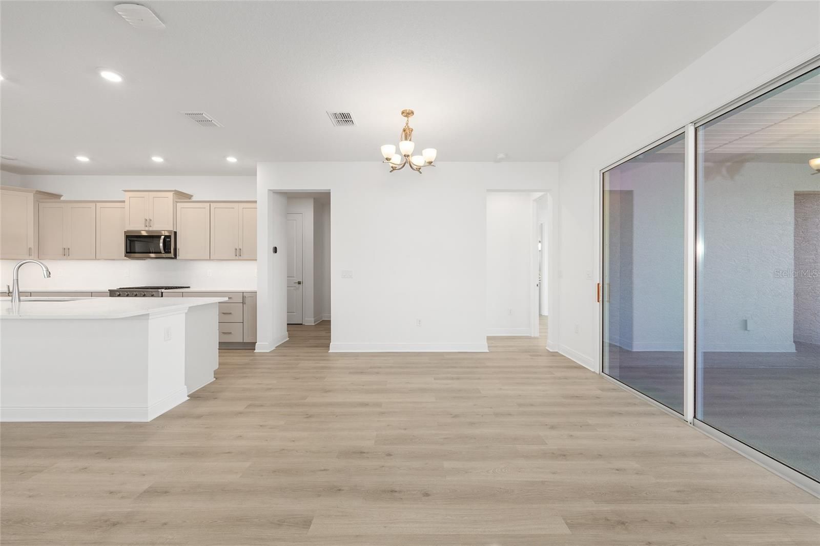 The Ariana model offers a comfortable and well-designed layout ideal for everyday Florida living. This newly constructed home features two bedrooms, two baths, and a two-car garage with dedicated golf cart space, providing both functionality and convenience. The open great room creates a welcoming atmosphere and flows seamlessly into the kitchen, making the space perfect for gathering and entertaining. The kitchen features an oversized island, modern cabinetry, stainless-steel appliances, and ample counter space, all complemented by luxury vinyl flooring and recessed lighting throughout the main living areas. A flexible bonus room adds versatility to the home and can easily be used as a home office, den, or hobby space. The primary bedroom offers a relaxing retreat with an en-suite bath and generous closet space, while a secondary bedroom and full bath provide comfort for guests. A dedicated laundry suite adds everyday convenience with thoughtful storage. Outdoor living is enhanced by a covered and screened lanai, along with a welcoming covered front porch, offering comfortable spaces to enjoy Florida’s year-round climate. Located in a desirable community, the Ariana model combines modern design, practical features, and quality construction in a home built for relaxed living. Enjoy all that On Top of the World has to offer, including golf, pools, fitness centers, walking trails, clubs, and endless social activities- perfect for embracing an active, resort-style lifestyle.