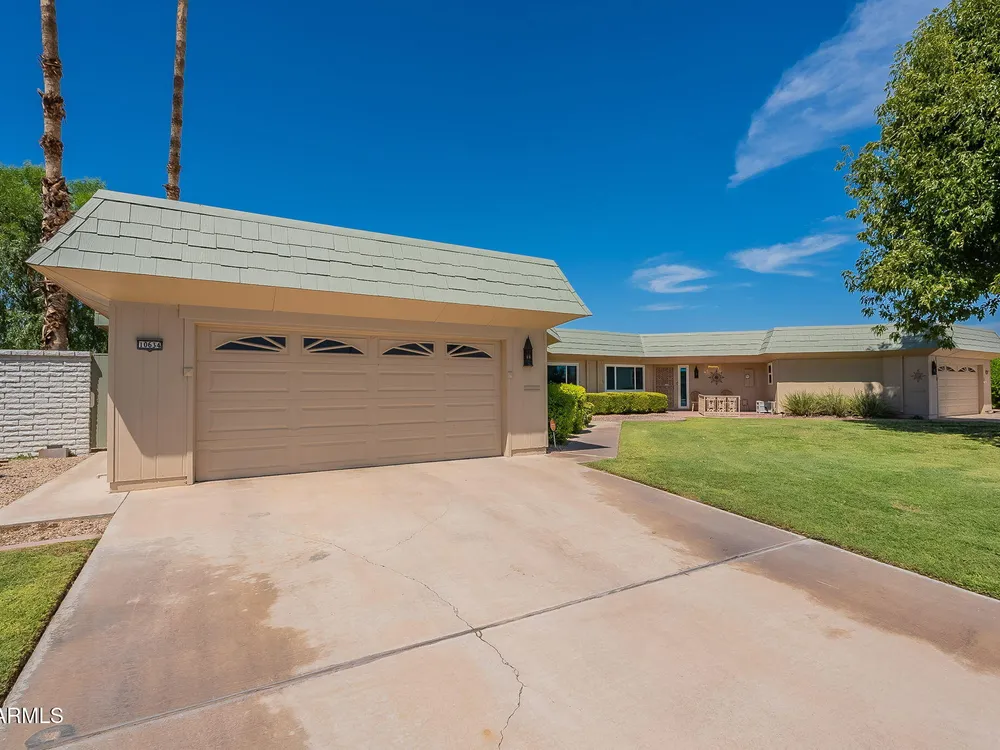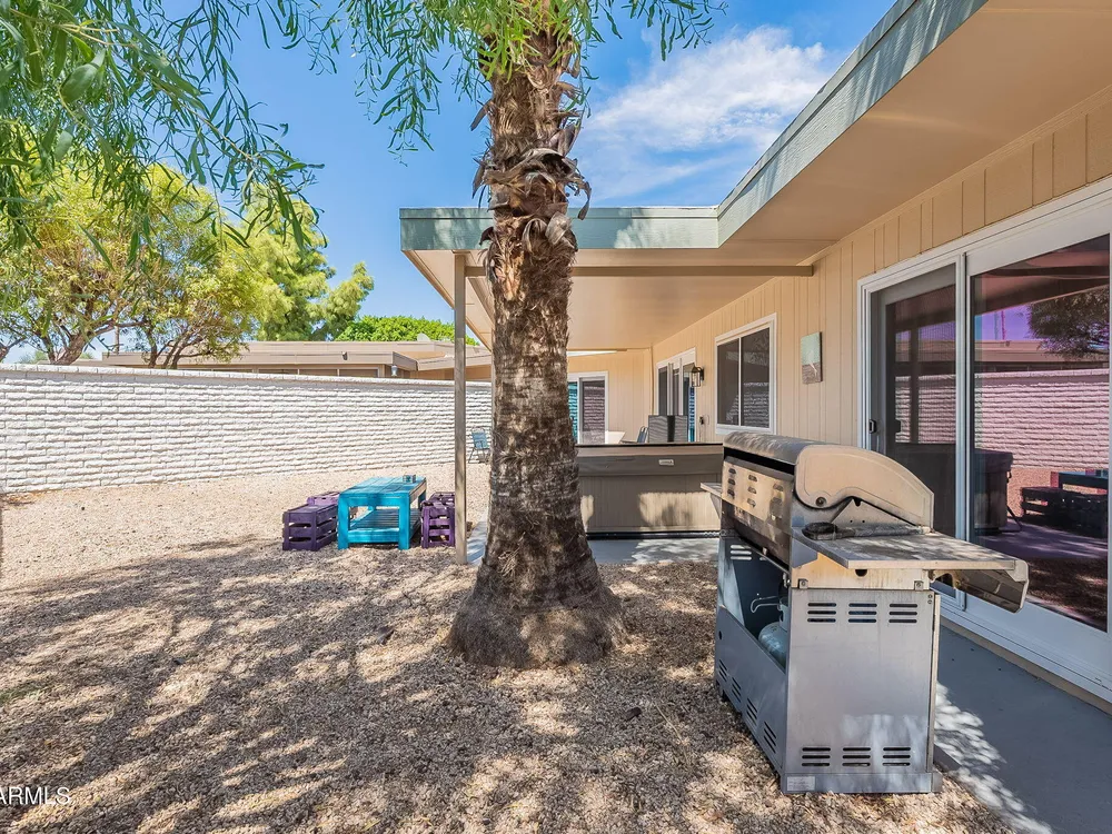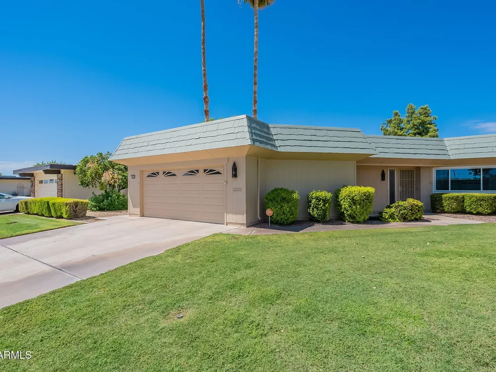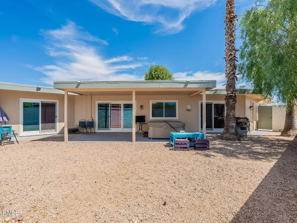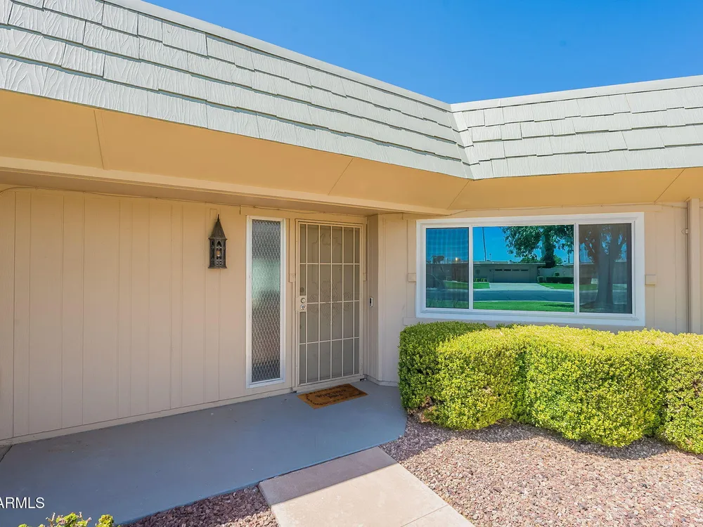 Fully remodeled gem in the heart of Sun City's vibrant 55+ community. Thoughtfully updated w/modern finishes, this home features two spacious bedrooms, each with walk-in closets, & a stylish bathroom showcasing a custom-tiled walk-in shower. The modern chef's kitchen is complete w/ stainless steel appliances, crisp white shaker cabinetry, & quartz countertops. Enjoy peace of mind w/a NEW ROOF, NEW WINDOWS & glass slider door, fresh exterior paint & luxury vinyl wood look flooring. Outdoor living shines w/ large privately fenced backyard, inviting above ground spa & covered patio. Garage has golf cart parking & EV charger. Low-maintenance landscaping in both yards allows more time to enjoy Sun City's incredible amenities—golf, pools, recreation centers, clubs. Modern & Cozy. Move In Ready!