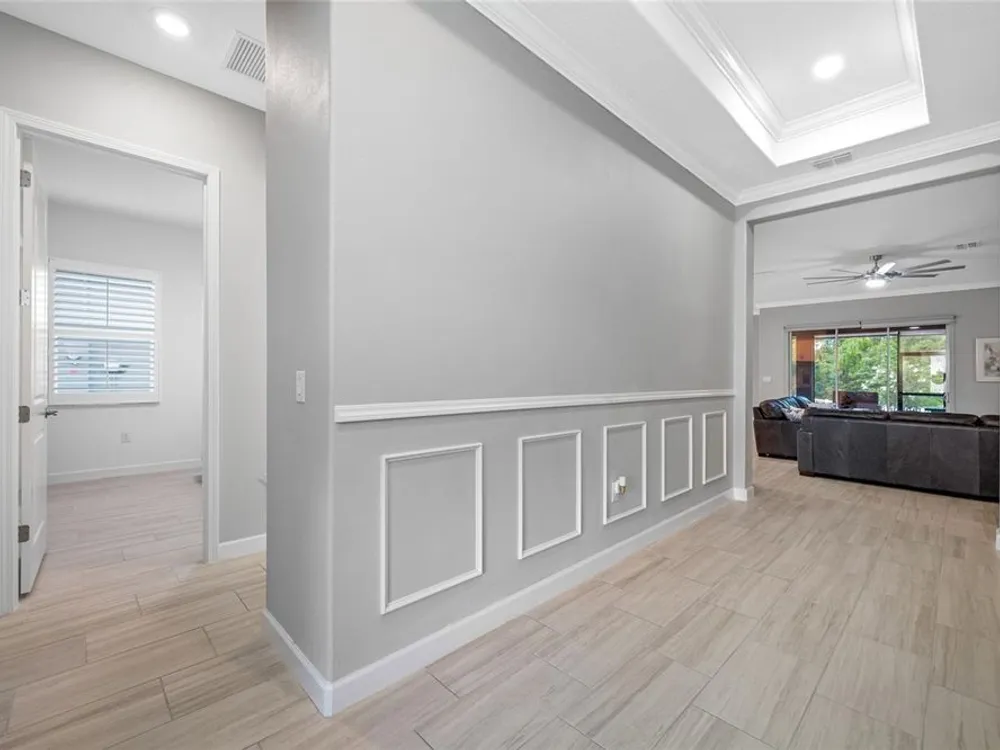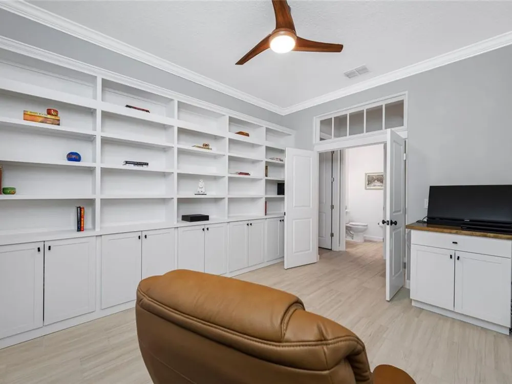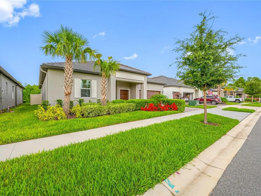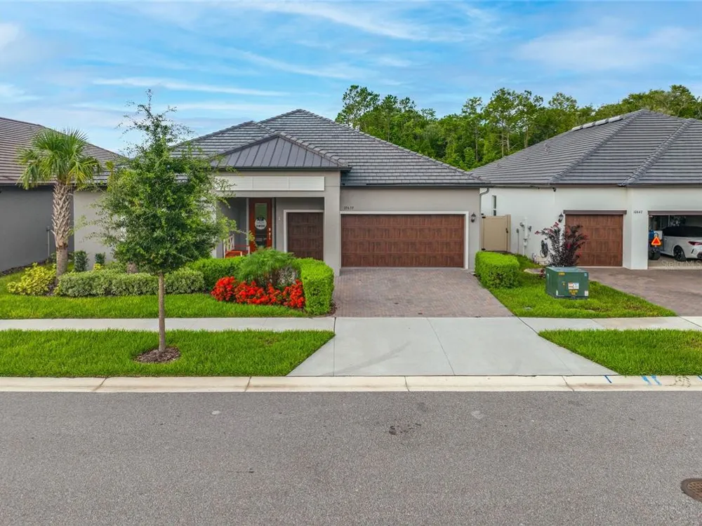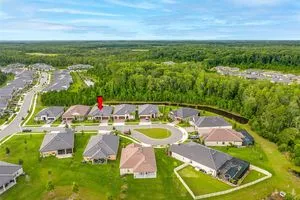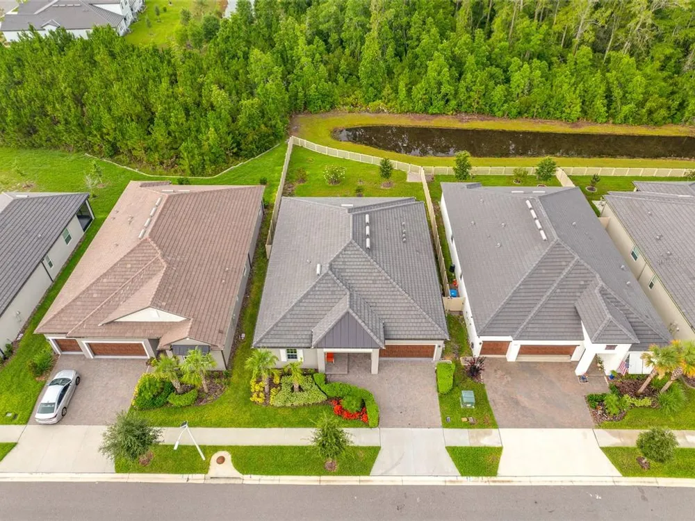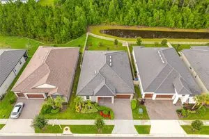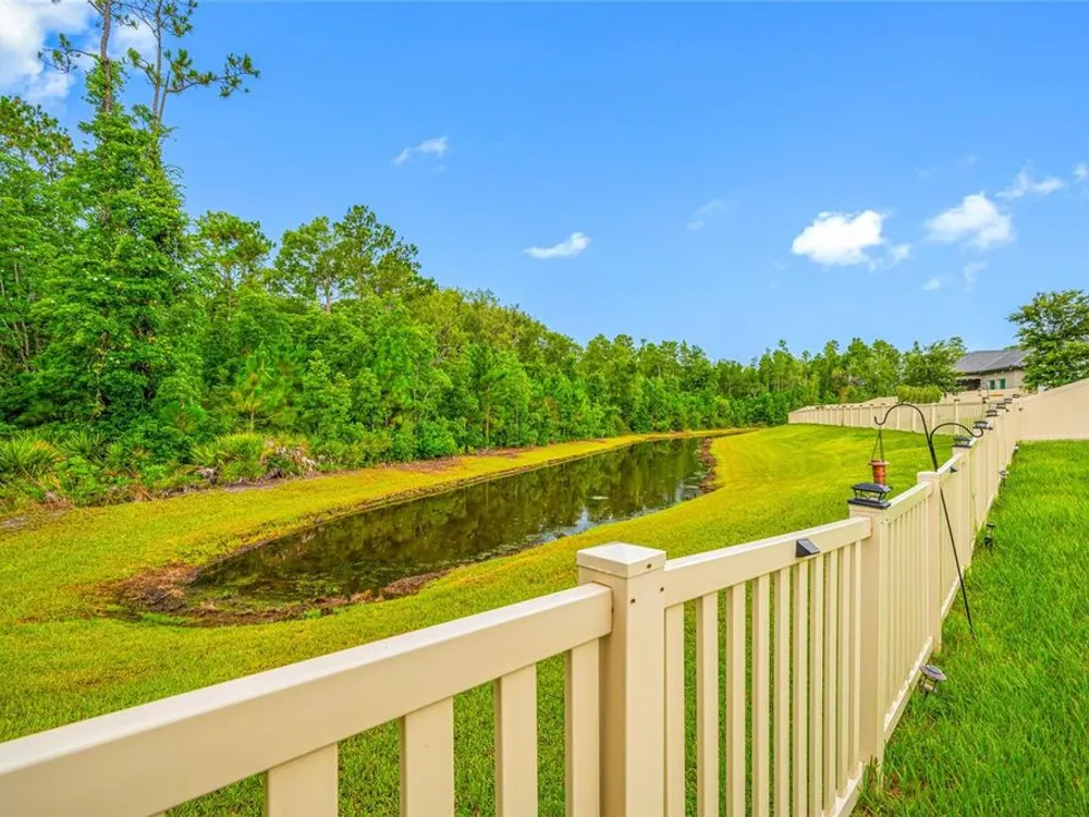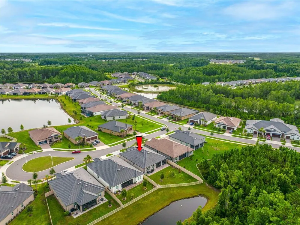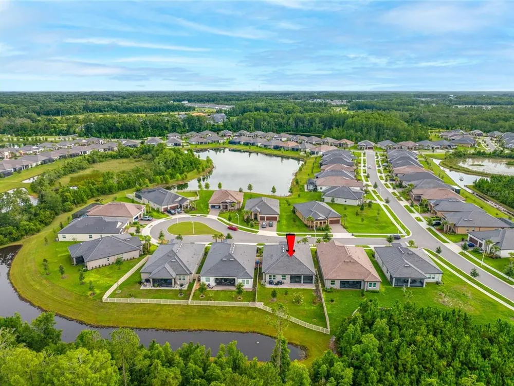 Welcome to this beautifully upgraded residence located in the heart of the vibrant, active adult community of Angeline – Medley in Land O’ Lakes, Florida. This thoughtfully designed home offers 3 spacious bedrooms, a dedicated home office, 2.5 bathrooms, and an array of high-end finishes throughout—all perfectly situated on a picturesque lot with tranquil views of the woods and pond. Step inside and be greeted by soaring ceilings, an open-concept floor plan, and abundant natural light that enhances the home’s bright, airy ambiance. The gourmet chef’s kitchen is the centerpiece of the home, featuring elegant 42” white cabinetry, quartz countertops, a stylish tile backsplash, stainless steel appliances, a butler’s pantry, and a custom walk-in pantry. A built-in bar adds a perfect touch for entertaining guests. The primary suite offers a peaceful retreat, complete with ample room for a king-size bed and a sitting area. The en-suite bath includes a spacious vanity, private water closet, and a large walk-in shower with built-in bench. A custom-designed walk-in closet with built-in drawers and shelving provides exceptional organization. Adjacent to the primary suite is a versatile office with a full wall of custom built-in bookcases and shelving—ideal for working from home or pursuing hobbies. A convenient powder room is located just across the hall. Two additional guest bedrooms are positioned at the front of the home, each with walk-in closets and a shared full bathroom featuring dual vanities. Additional highlights include: Oversized 2-car garage with a separate golf cart bay or extra storage. Built-in attic stairway leading to a bonus storage or flex space. Seamless gutters and fresh interior paint throughout. Located within the premier 55+ enclave of Angeline – Medley, this home provides access to a wide array of resort-style amenities. Enjoy miles of scenic walking and biking trails, a private clubhouse, resort-style pool, state-of-the-art fitness center, pickleball and tennis courts, and more. A community garden offers space for residents to grow their own produce, while future plans include a spectacular recreational lagoon and over 3,600 acres of green space to explore.The Angeline community also boasts convenient access to Moffitt Cancer Center’s new 775-acre Speros FL research campus, as well as a state-of-the-art STEM magnet school, positioning it as a hub for innovation, wellness, and lifelong learning. This home combines elegant living, modern functionality, and a thriving community lifestyle—don’t miss your opportunity to make it yours.