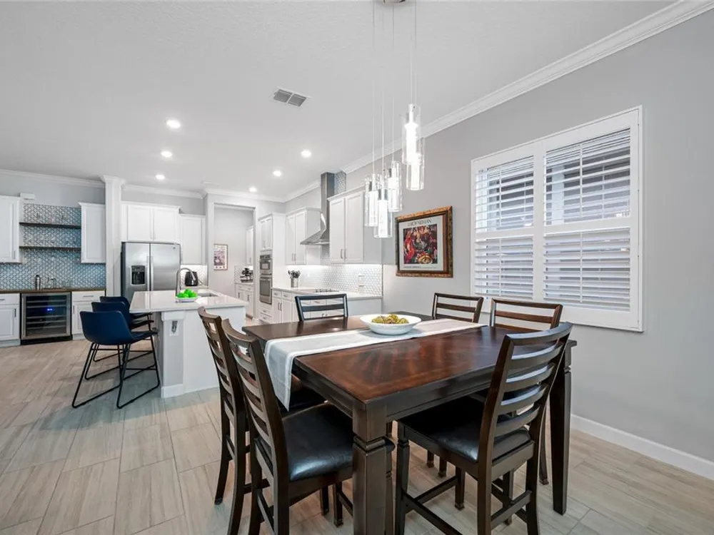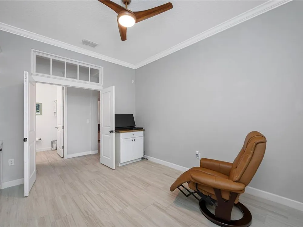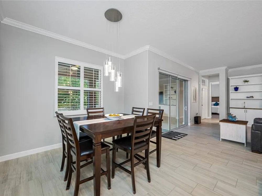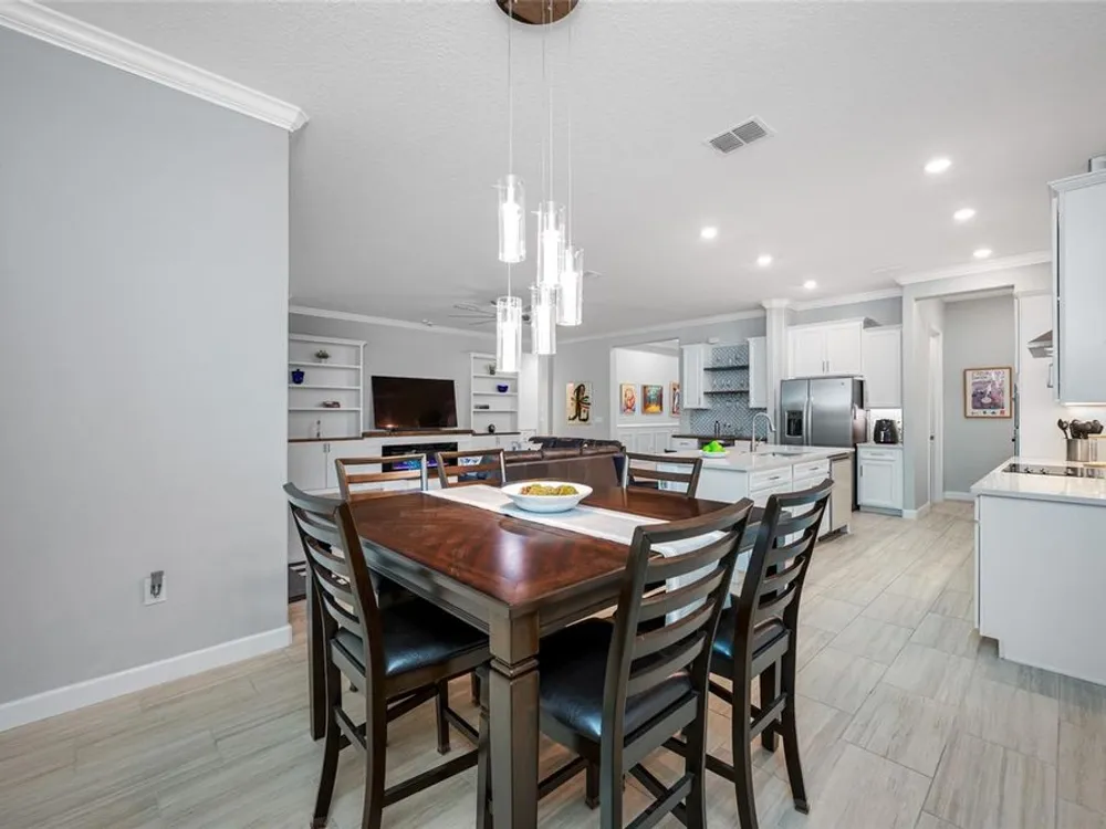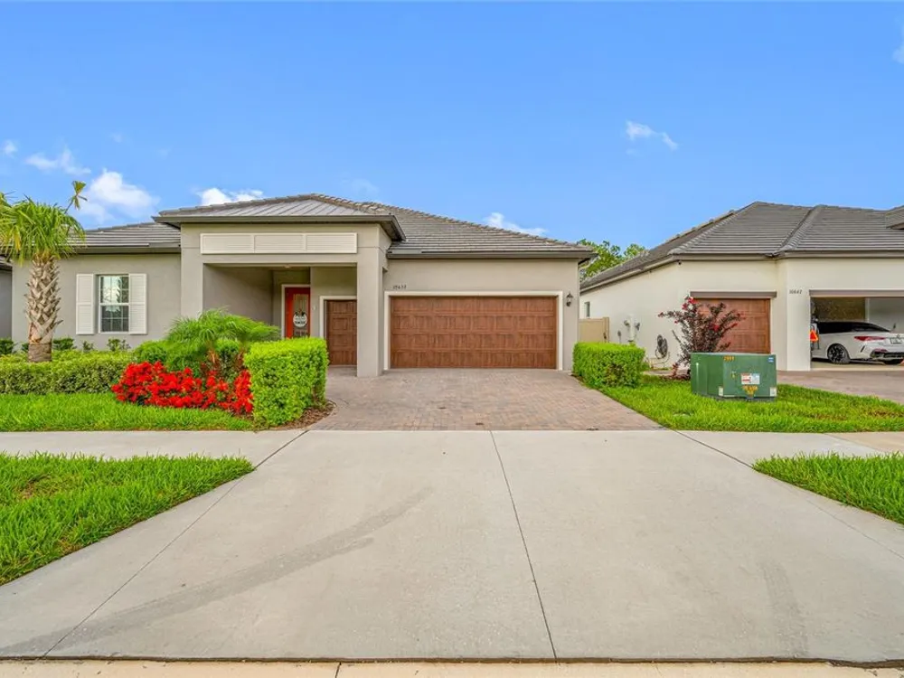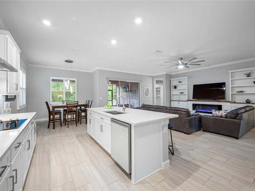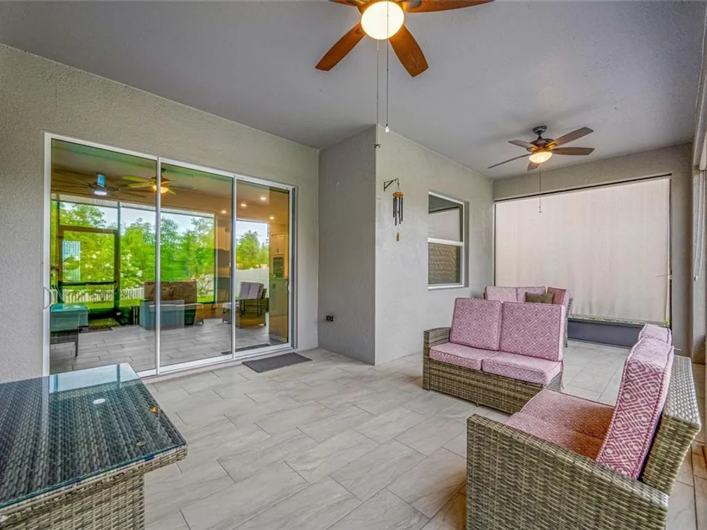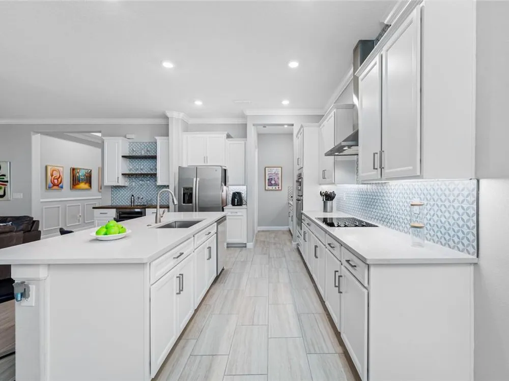 Welcome to this beautifully upgraded residence located in the heart of the vibrant, active adult community of Angeline – Medley in Land O’ Lakes, Florida. This thoughtfully designed home offers 3 spacious bedrooms, a dedicated home office, 2.5 bathrooms, and an array of high-end finishes throughout—all perfectly situated on a picturesque lot with tranquil views of the woods and pond. Step inside and be greeted by soaring ceilings, an open-concept floor plan, and abundant natural light that enhances the home’s bright, airy ambiance. The gourmet chef’s kitchen is the centerpiece of the home, featuring elegant 42” white cabinetry, quartz countertops, a stylish tile backsplash, stainless steel appliances, a butler’s pantry, and a custom walk-in pantry. A built-in bar adds a perfect touch for entertaining guests. The primary suite offers a peaceful retreat, complete with ample room for a king-size bed and a sitting area. The en-suite bath includes a spacious vanity, private water closet, and a large walk-in shower with built-in bench. A custom-designed walk-in closet with built-in drawers and shelving provides exceptional organization. Adjacent to the primary suite is a versatile office with a full wall of custom built-in bookcases and shelving—ideal for working from home or pursuing hobbies. A convenient powder room is located just across the hall. Two additional guest bedrooms are positioned at the front of the home, each with walk-in closets and a shared full bathroom featuring dual vanities. Additional highlights include: Oversized 2-car garage with a separate golf cart bay or extra storage. Built-in attic stairway leading to a bonus storage or flex space. Seamless gutters and fresh interior paint throughout. Located within the premier 55+ enclave of Angeline – Medley, this home provides access to a wide array of resort-style amenities. Enjoy miles of scenic walking and biking trails, a private clubhouse, resort-style pool, state-of-the-art fitness center, pickleball and tennis courts, and more. A community garden offers space for residents to grow their own produce, while future plans include a spectacular recreational lagoon and over 3,600 acres of green space to explore.The Angeline community also boasts convenient access to Moffitt Cancer Center’s new 775-acre Speros FL research campus, as well as a state-of-the-art STEM magnet school, positioning it as a hub for innovation, wellness, and lifelong learning. This home combines elegant living, modern functionality, and a thriving community lifestyle—don’t miss your opportunity to make it yours.