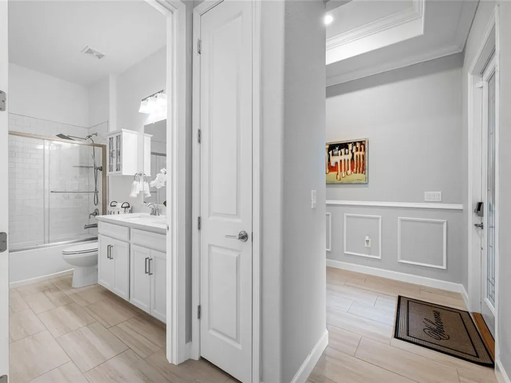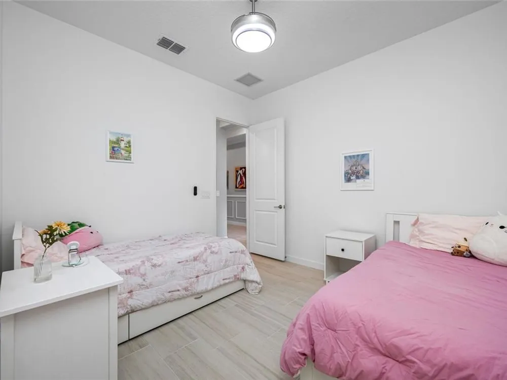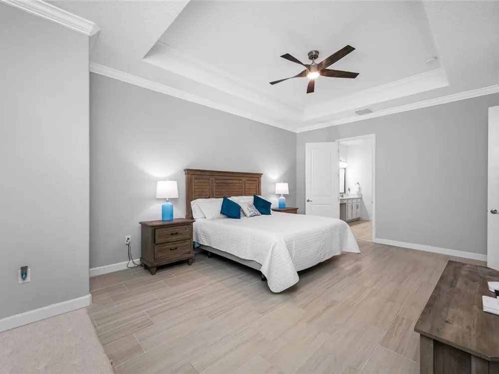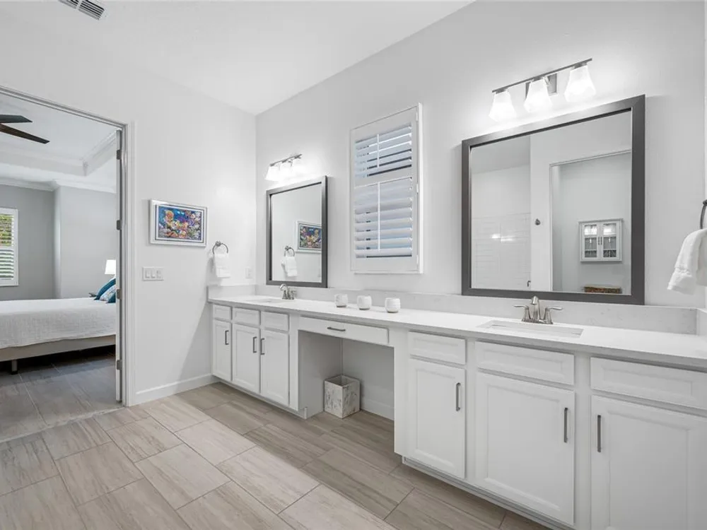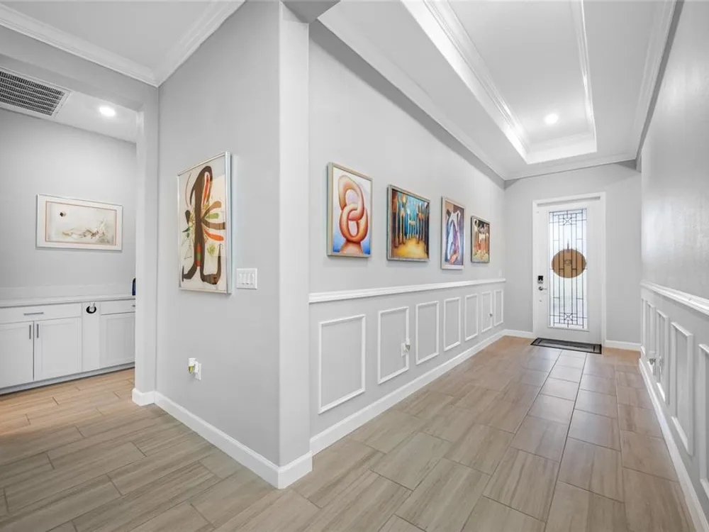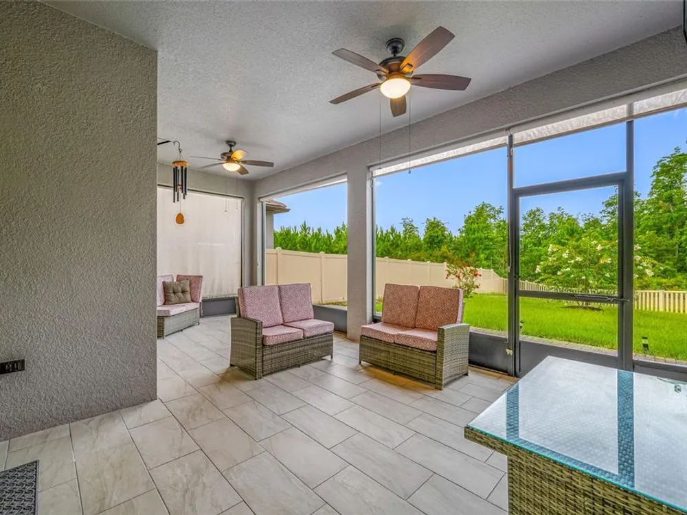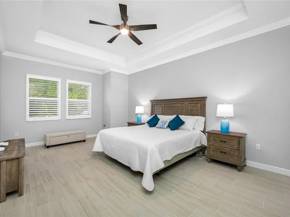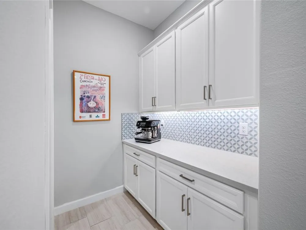 Welcome to this beautifully upgraded residence located in the heart of the vibrant, active adult community of Angeline – Medley in Land O’ Lakes, Florida. This thoughtfully designed home offers 3 spacious bedrooms, a dedicated home office, 2.5 bathrooms, and an array of high-end finishes throughout—all perfectly situated on a picturesque lot with tranquil views of the woods and pond. Step inside and be greeted by soaring ceilings, an open-concept floor plan, and abundant natural light that enhances the home’s bright, airy ambiance. The gourmet chef’s kitchen is the centerpiece of the home, featuring elegant 42” white cabinetry, quartz countertops, a stylish tile backsplash, stainless steel appliances, a butler’s pantry, and a custom walk-in pantry. A built-in bar adds a perfect touch for entertaining guests. The primary suite offers a peaceful retreat, complete with ample room for a king-size bed and a sitting area. The en-suite bath includes a spacious vanity, private water closet, and a large walk-in shower with built-in bench. A custom-designed walk-in closet with built-in drawers and shelving provides exceptional organization. Adjacent to the primary suite is a versatile office with a full wall of custom built-in bookcases and shelving—ideal for working from home or pursuing hobbies. A convenient powder room is located just across the hall. Two additional guest bedrooms are positioned at the front of the home, each with walk-in closets and a shared full bathroom featuring dual vanities. Additional highlights include: Oversized 2-car garage with a separate golf cart bay or extra storage. Built-in attic stairway leading to a bonus storage or flex space. Seamless gutters and fresh interior paint throughout. Located within the premier 55+ enclave of Angeline – Medley, this home provides access to a wide array of resort-style amenities. Enjoy miles of scenic walking and biking trails, a private clubhouse, resort-style pool, state-of-the-art fitness center, pickleball and tennis courts, and more. A community garden offers space for residents to grow their own produce, while future plans include a spectacular recreational lagoon and over 3,600 acres of green space to explore.The Angeline community also boasts convenient access to Moffitt Cancer Center’s new 775-acre Speros FL research campus, as well as a state-of-the-art STEM magnet school, positioning it as a hub for innovation, wellness, and lifelong learning. This home combines elegant living, modern functionality, and a thriving community lifestyle—don’t miss your opportunity to make it yours.