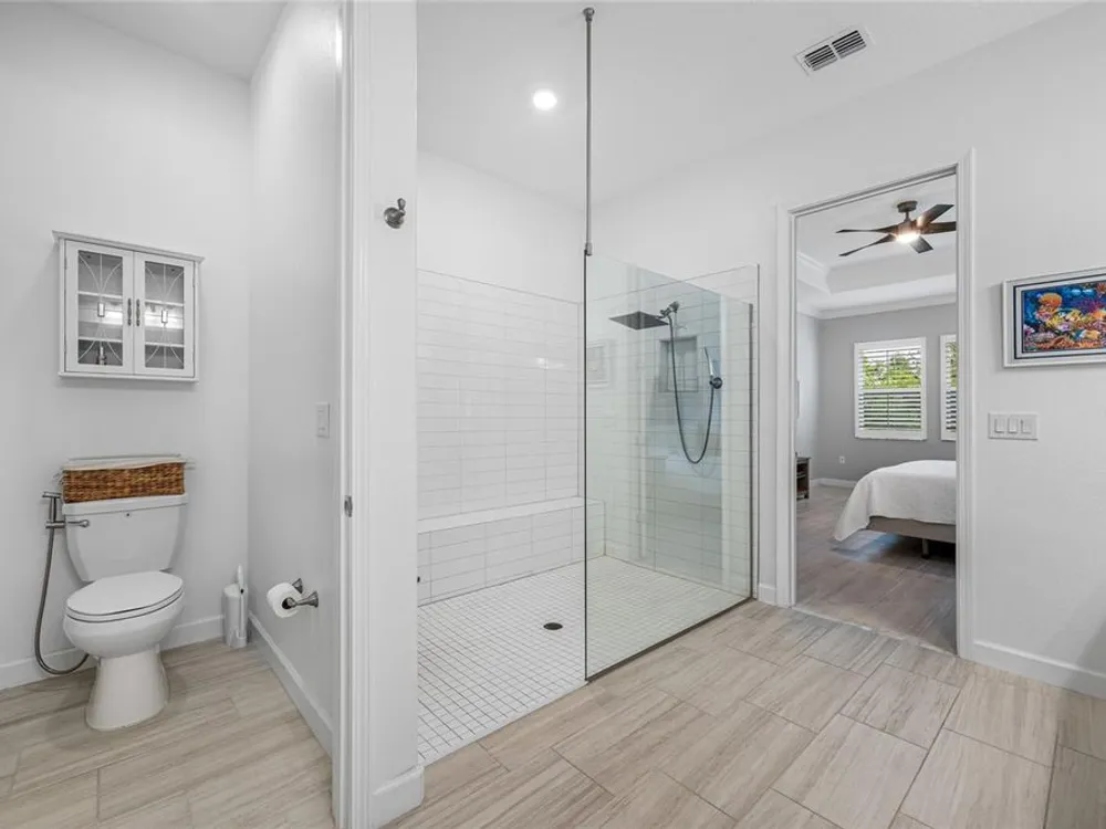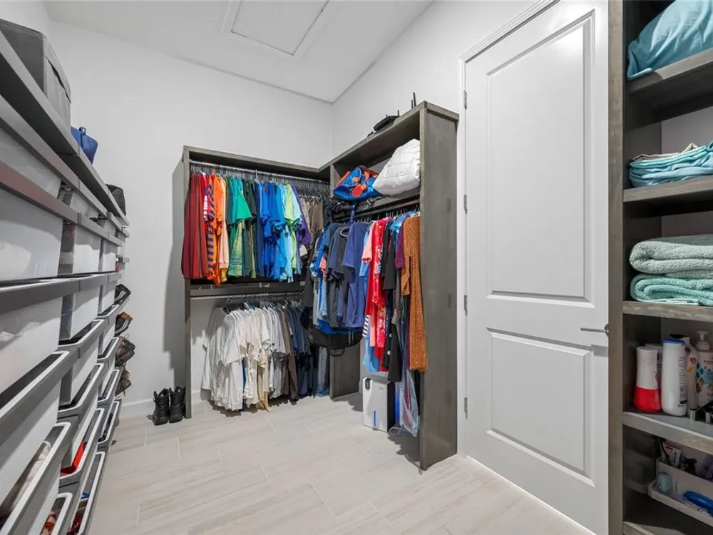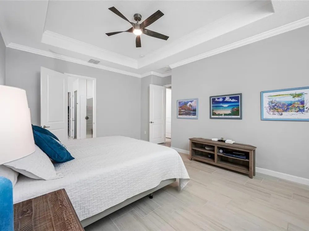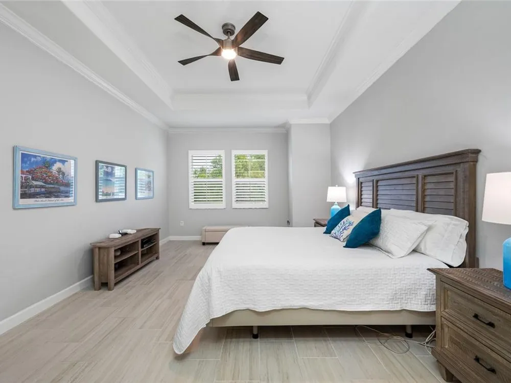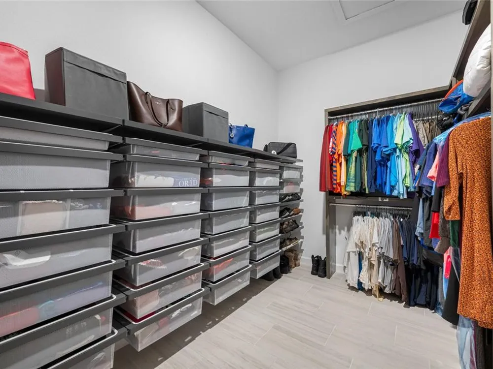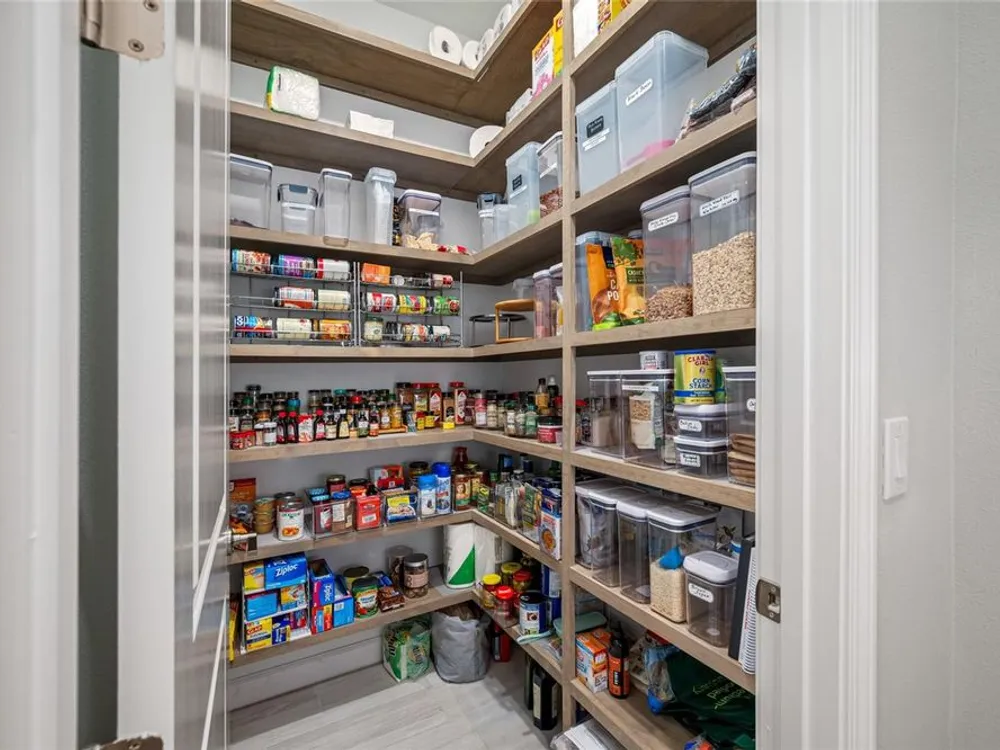 - Accessibility Features, Ceiling Fan(s), Crown Molding, Eat-in Kitchen, High Ceilings, In-Wall Pest Control, Kitchen/Family Room Combo, Living/Dining Room, Open Floorplan, Solid Surface Counters, Split Bedrooms, Stone Counters, Thermostat, Tray Ceiling(s), Vaulted Ceiling(s), Walk-In Closet(s), Wet Bar