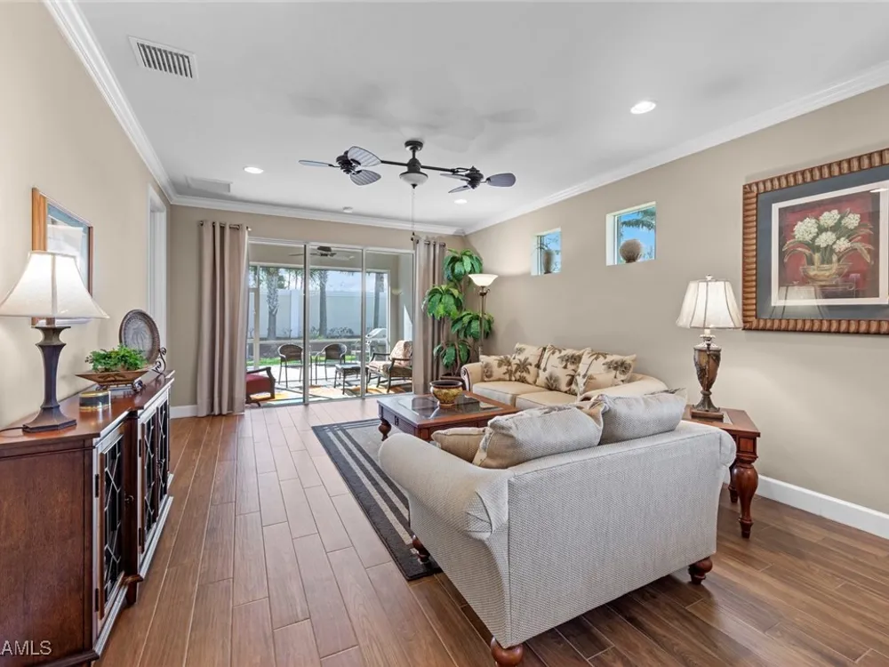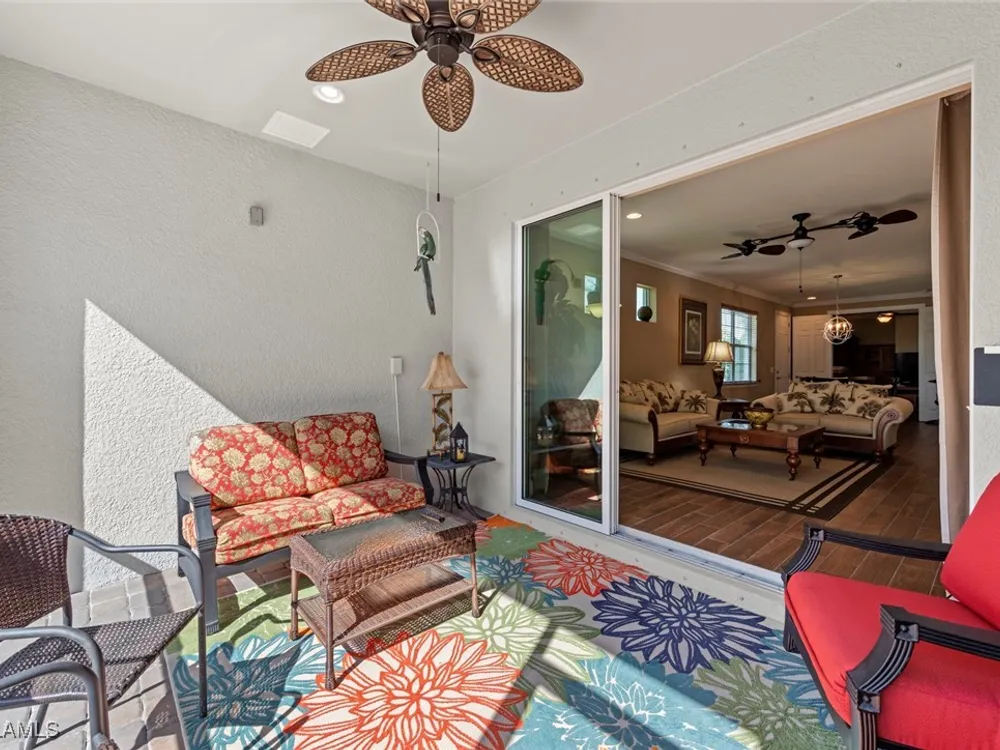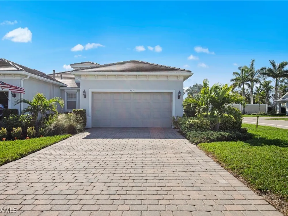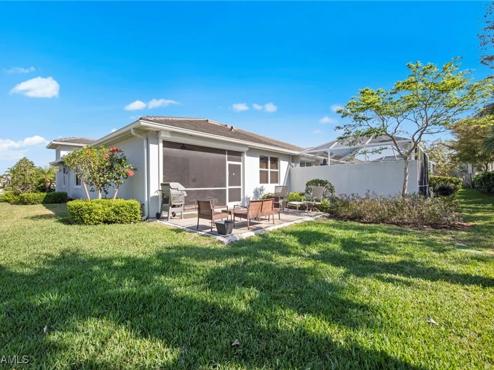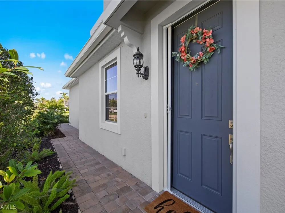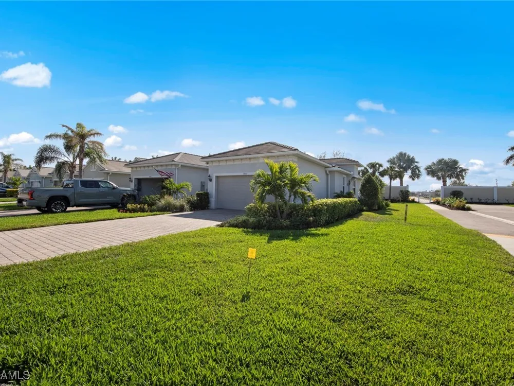 This attached villa by Pulte is located in Tidewater, an active Del Webb 55+ community, in the heart of Estero. Built in 2017, this home has been meticulously cared for by it’s original owners, and offers 2 bedrooms + Den, 2 baths, and a 2-car attached garage. On the inside, this home offers a warm and inviting feel, with open concept living, “wood look” plank tile flooring throughout the main living area and den, carpet in the bedrooms, and tile in the baths. The front door has a Retractable screen, which allows you to have the front door open, the lanai slider open, and allow the cool breezes to flow though the home. The upgraded kitchen offers granite countertops, tile backsplash, stainless appliances, a pantry and natural gas for cooking. The split bedroom floor plan provides ideal privacy between the guest room and your spacious master suite. The master en-suite has an oversized walk-in shower w/frameless glass, dual sinks, linen closet and large walk-in closet. The laundry room is finished off with cabinets, for extra storage. Outside, the covered, screened lanai provides shade to enjoy the fresh air, beyond the covered area, step outside to an expanded lanai for those who enjoy the direct sun. Tidewater by Del Webb, is in Estero's premier 55+ community! The award-winning amenity center, offers bocce, Pickleball, tennis, a resort-style pool, and more! This active community offers the perfect location in Estero. Close to RSW Airport, Miromar Outlets, Hertz Arena, I-75... and more. Welcome home!