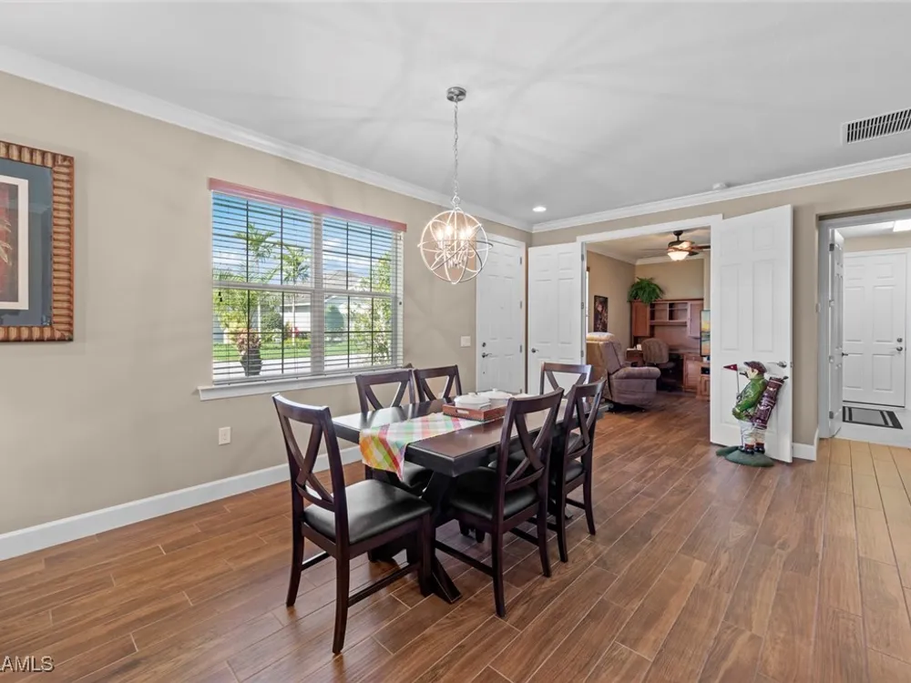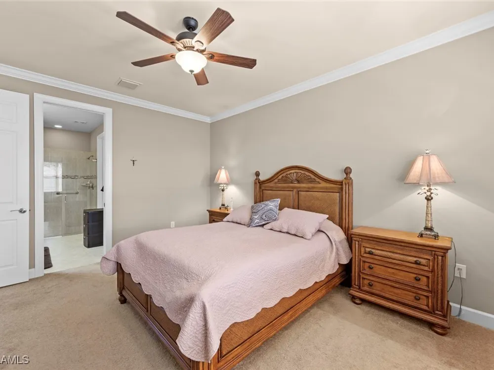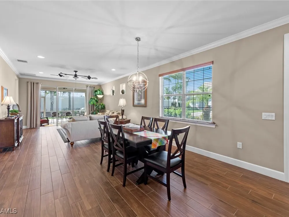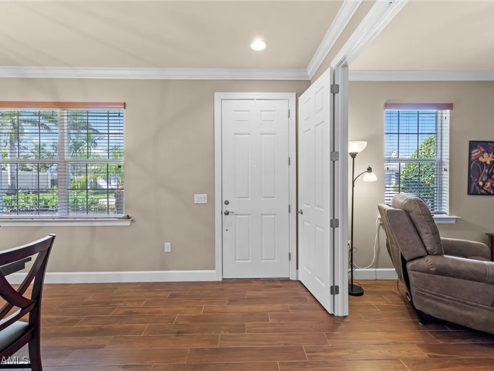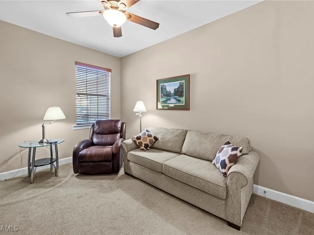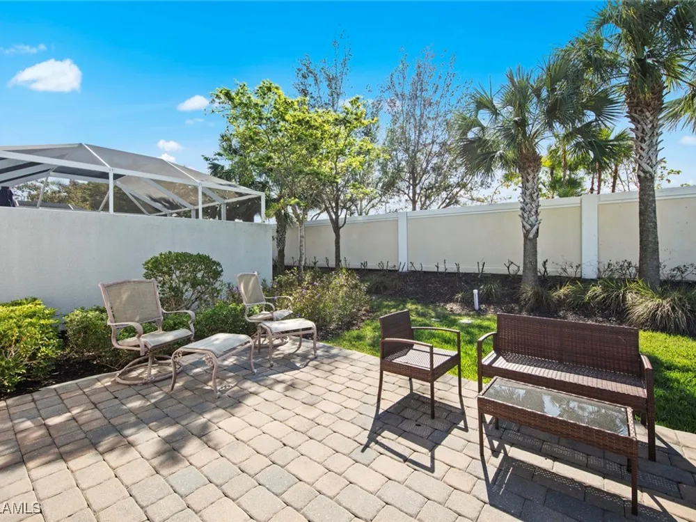 This attached villa by Pulte is located in Tidewater, an active Del Webb 55+ community, in the heart of Estero. Built in 2017, this home has been meticulously cared for by it’s original owners, and offers 2 bedrooms + Den, 2 baths, and a 2-car attached garage. On the inside, this home offers a warm and inviting feel, with open concept living, “wood look” plank tile flooring throughout the main living area and den, carpet in the bedrooms, and tile in the baths. The front door has a Retractable screen, which allows you to have the front door open, the lanai slider open, and allow the cool breezes to flow though the home. The upgraded kitchen offers granite countertops, tile backsplash, stainless appliances, a pantry and natural gas for cooking. The split bedroom floor plan provides ideal privacy between the guest room and your spacious master suite. The master en-suite has an oversized walk-in shower w/frameless glass, dual sinks, linen closet and large walk-in closet. The laundry room is finished off with cabinets, for extra storage. Outside, the covered, screened lanai provides shade to enjoy the fresh air, beyond the covered area, step outside to an expanded lanai for those who enjoy the direct sun. Tidewater by Del Webb, is in Estero's premier 55+ community! The award-winning amenity center, offers bocce, Pickleball, tennis, a resort-style pool, and more! This active community offers the perfect location in Estero. Close to RSW Airport, Miromar Outlets, Hertz Arena, I-75... and more. Welcome home!