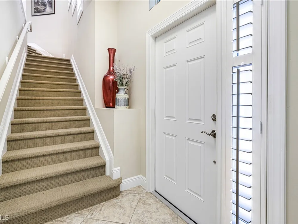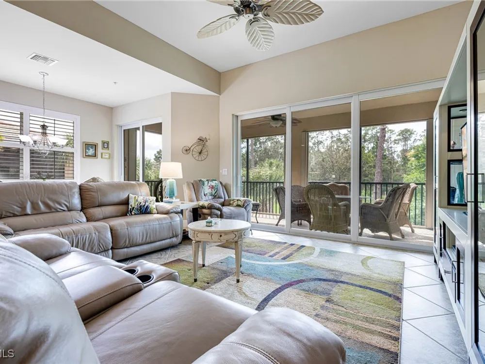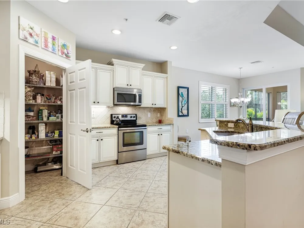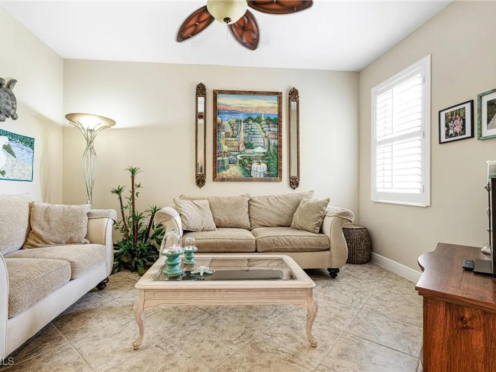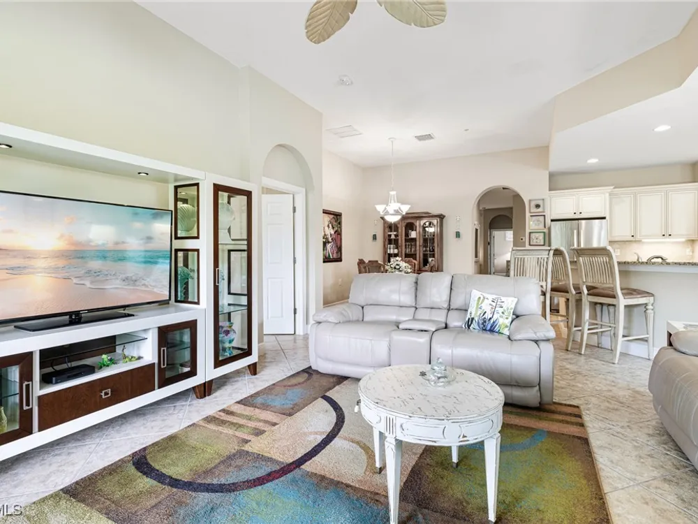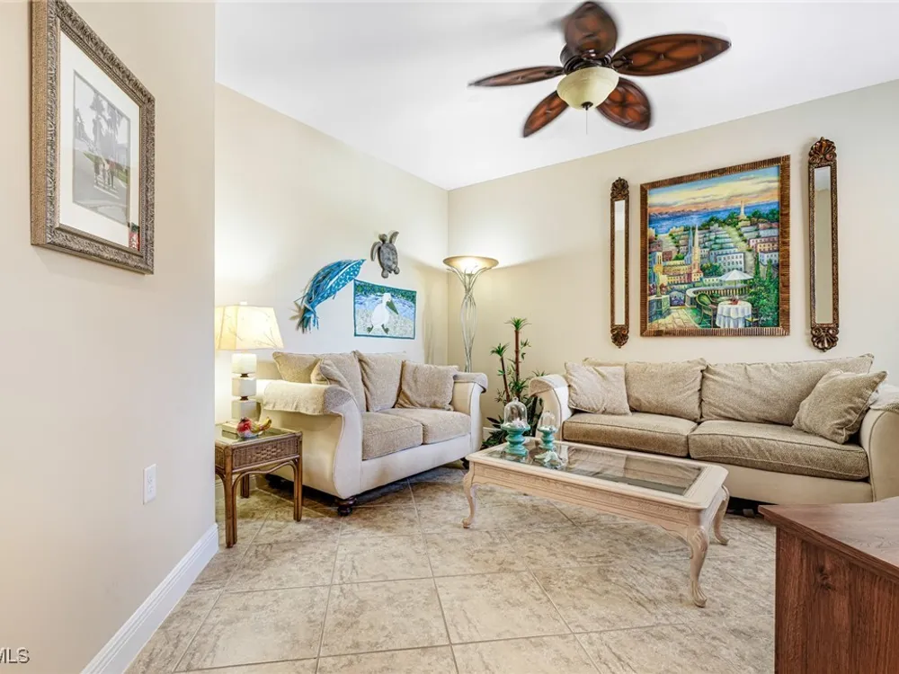 GREAT VALUE! PRICED TO SELL! This spectacular home is priced $50K below market value. Welcome to your dream home in the prestigious 55+ community of Pelican Preserve! This 2nd floor carriage home is better than new, with numerous upgrades. As you step inside, you'll be greeted by a spacious interior with vaulted ceilings. The tile floors are stunning and there is quality carpet in the bedrooms. There are plantation shutters throughout, granite counters, stainless appliances, under-counter lighting, custom closets and more. The HVAC was replaced in 2024. Step outside onto your patio and enjoy the beauty of the golf course and tropical landscape. And for added peace of mind all windows and doors are high impact glass. The spacious garage has epoxy flooring. This home is being sold Turnkey, so get ready to move in and start enjoying the Florida lifestyle. Living in Pelican Preserve means you'll have access to a wide range of amenities to suit all interests, from pickle ball, golf and tennis to fitness classes and social clubs, spa, dog parks, entertainment, theatre, amphitheater, walking trails, card groups, etc. Don't miss out on the opportunity to make this stunning home yours - schedule a showing today!