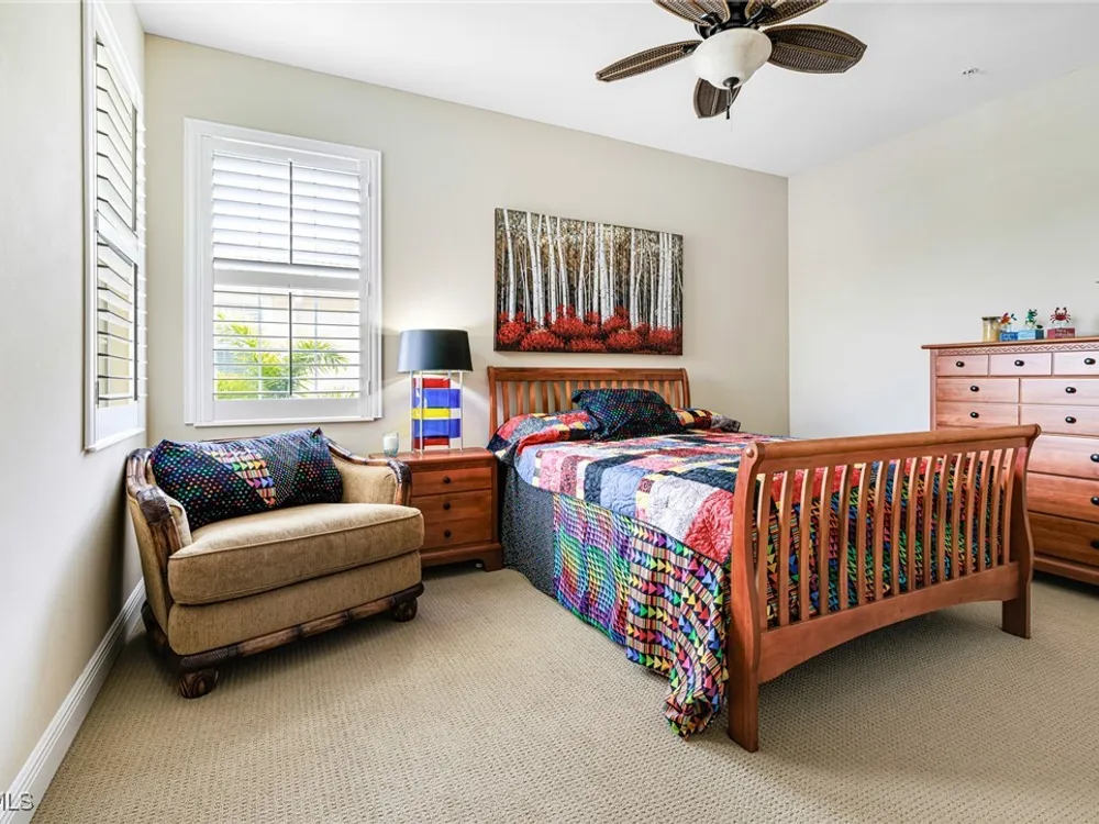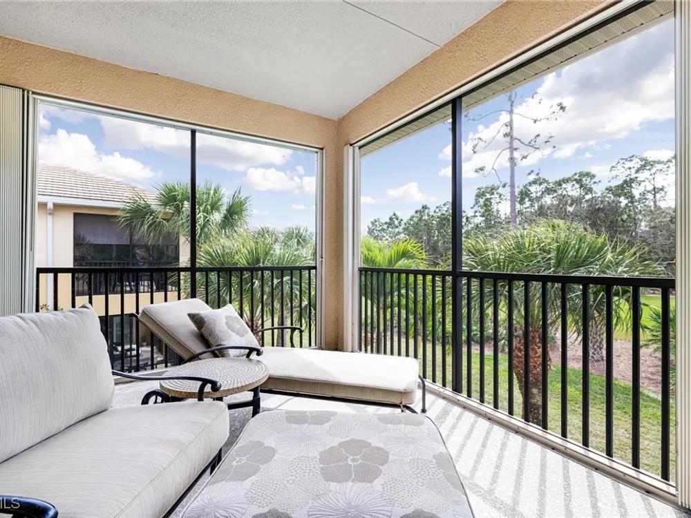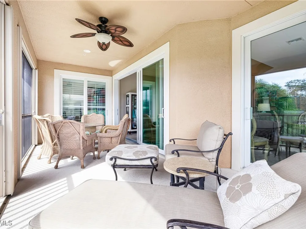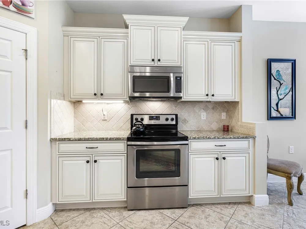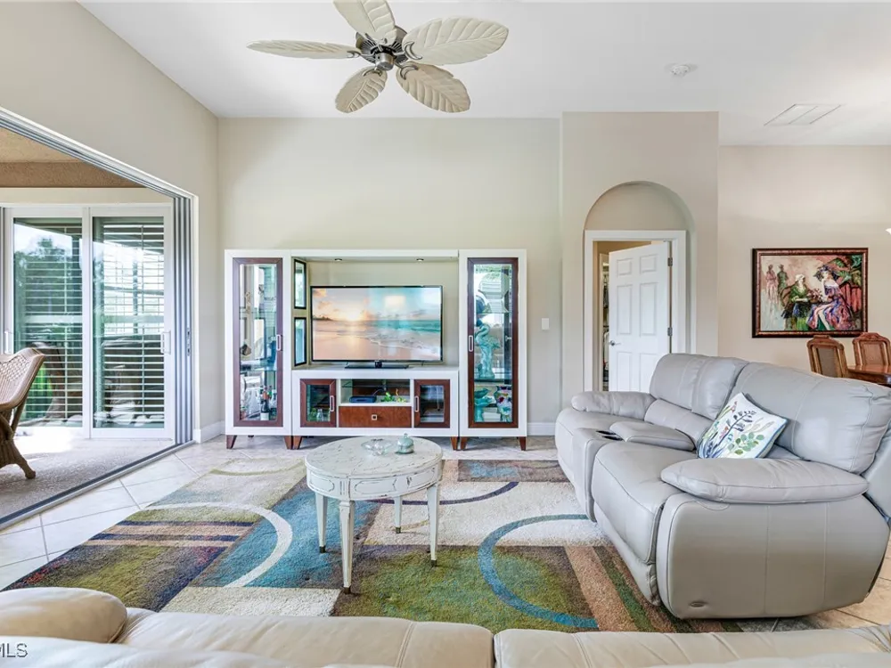 GREAT VALUE! PRICED TO SELL! This spectacular home is priced $50K below market value. Welcome to your dream home in the prestigious 55+ community of Pelican Preserve! This 2nd floor carriage home is better than new, with numerous upgrades. As you step inside, you'll be greeted by a spacious interior with vaulted ceilings. The tile floors are stunning and there is quality carpet in the bedrooms. There are plantation shutters throughout, granite counters, stainless appliances, under-counter lighting, custom closets and more. The HVAC was replaced in 2024. Step outside onto your patio and enjoy the beauty of the golf course and tropical landscape. And for added peace of mind all windows and doors are high impact glass. The spacious garage has epoxy flooring. This home is being sold Turnkey, so get ready to move in and start enjoying the Florida lifestyle. Living in Pelican Preserve means you'll have access to a wide range of amenities to suit all interests, from pickle ball, golf and tennis to fitness classes and social clubs, spa, dog parks, entertainment, theatre, amphitheater, walking trails, card groups, etc. Don't miss out on the opportunity to make this stunning home yours - schedule a showing today!