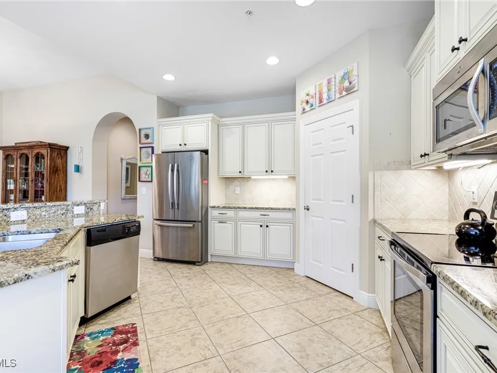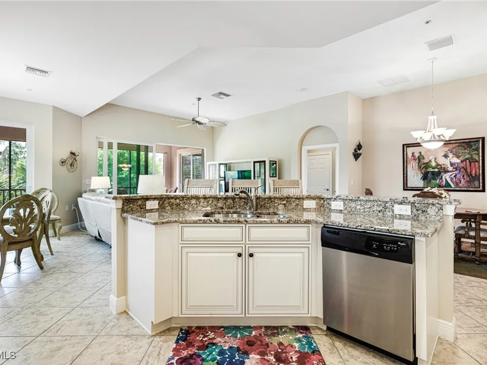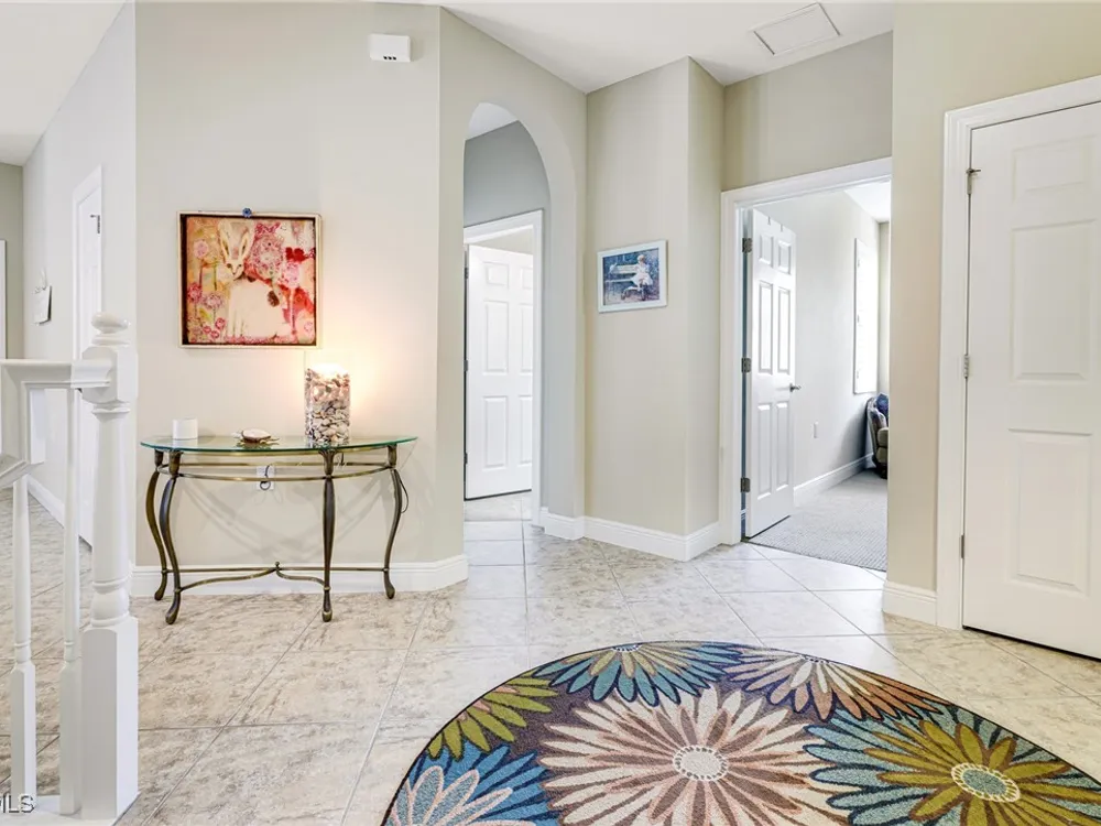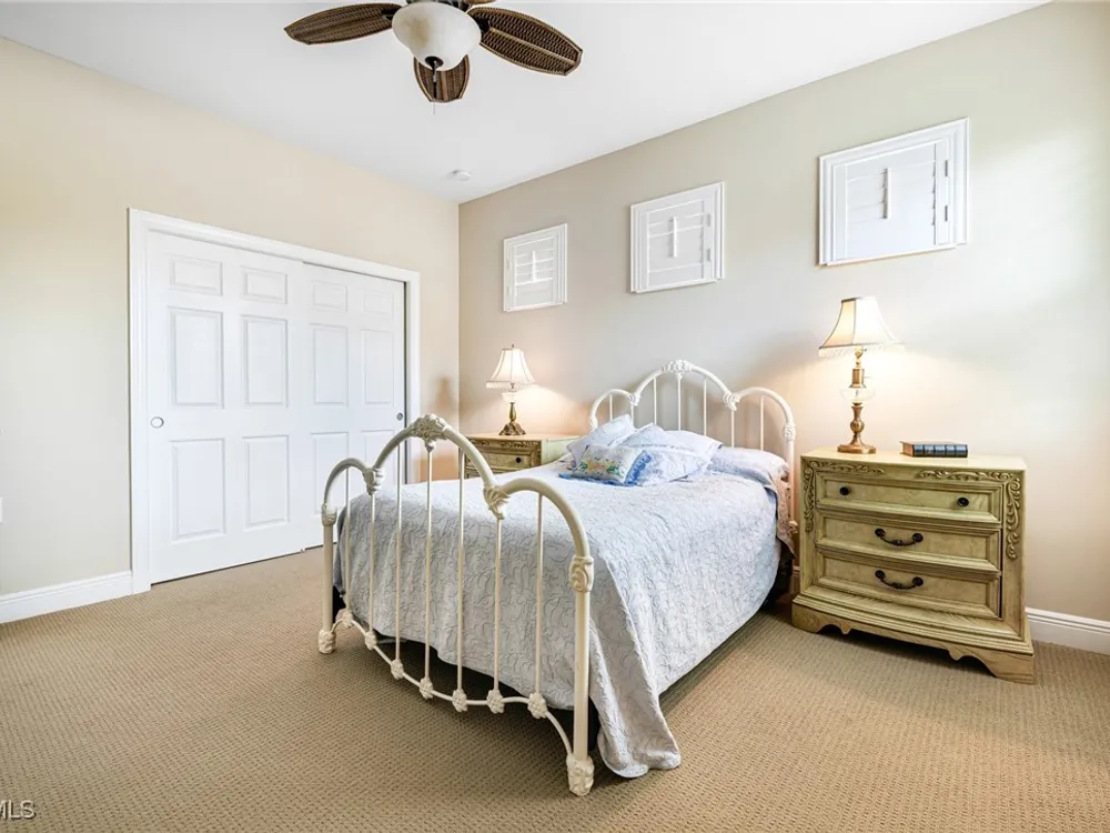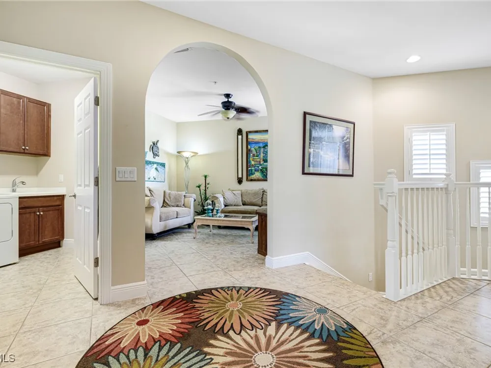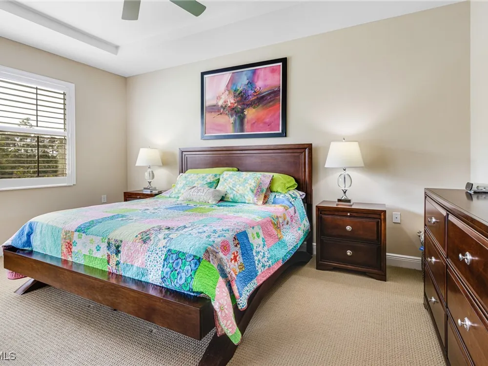 GREAT VALUE! PRICED TO SELL! This spectacular home is priced $50K below market value. Welcome to your dream home in the prestigious 55+ community of Pelican Preserve! This 2nd floor carriage home is better than new, with numerous upgrades. As you step inside, you'll be greeted by a spacious interior with vaulted ceilings. The tile floors are stunning and there is quality carpet in the bedrooms. There are plantation shutters throughout, granite counters, stainless appliances, under-counter lighting, custom closets and more. The HVAC was replaced in 2024. Step outside onto your patio and enjoy the beauty of the golf course and tropical landscape. And for added peace of mind all windows and doors are high impact glass. The spacious garage has epoxy flooring. This home is being sold Turnkey, so get ready to move in and start enjoying the Florida lifestyle. Living in Pelican Preserve means you'll have access to a wide range of amenities to suit all interests, from pickle ball, golf and tennis to fitness classes and social clubs, spa, dog parks, entertainment, theatre, amphitheater, walking trails, card groups, etc. Don't miss out on the opportunity to make this stunning home yours - schedule a showing today!