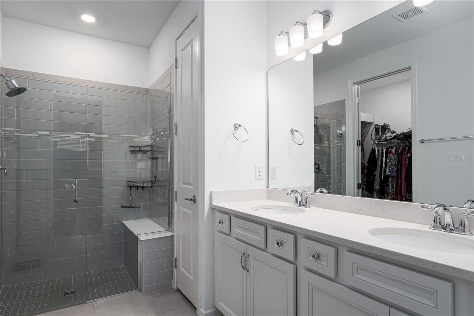 Completed in 2023 by Pulte Homes, this 2-bedroom, 2-bath villa with a den offers 1,542 square feet of well-planned living in the sought-after 55+ community of Del Webb at Bayview. Positioned on a wooded preserve, the home delivers privacy, nature views, and a seamless indoor–outdoor flow. Inside, Luxury vinyl plank flooring runs throughout the main living areas, creating a cohesive and low-maintenance foundation. The kitchen is designed for easy entertaining with stainless steel appliances, quartz countertops, a glass tile backsplash, and generous workspace. A power retractable sun shade on the rear sliding doors adds comfort and convenience during sunny afternoons. The flexible den is currently set up as an office but can adapt to a variety of uses—including a potential third bedroom. The primary suite easily accommodates a king-size bed and full bedroom set, while the primary bath features a walk-in shower with glass enclosure and subway tile, bench seating, plus a dual-sink vanity. Ceramic tile flooring finishes all wet areas, including both bathrooms and the inside laundry room. The rear lanai is ideal for taking in nature's grand finale, the nightly sunsets. Enhanced by wide vista screens that preserve unobstructed views of the wooded backdrop. An attached two-car garage adds everyday practicality. Del Webb at Bayview offers an active, amenity-rich lifestyle supported by a full-time Lifestyle Director. Residents enjoy a resort-style pool, tennis courts, pickleball courts, a fitness center, on-site dining, and a full calendar of social activities. Situated along the Moccasin Wallow Corridor, the community provides quick access to I-75 for travel to Tampa, St. Petersburg, or Sarasota. The area is rapidly expanding with new dining, shopping, two new hospitals, and the highly anticipated Seaire Crystal Lagoon is on the way. At this price point, the opportunity to step into a vibrant, maintenance-free lifestyle has never been more compelling.