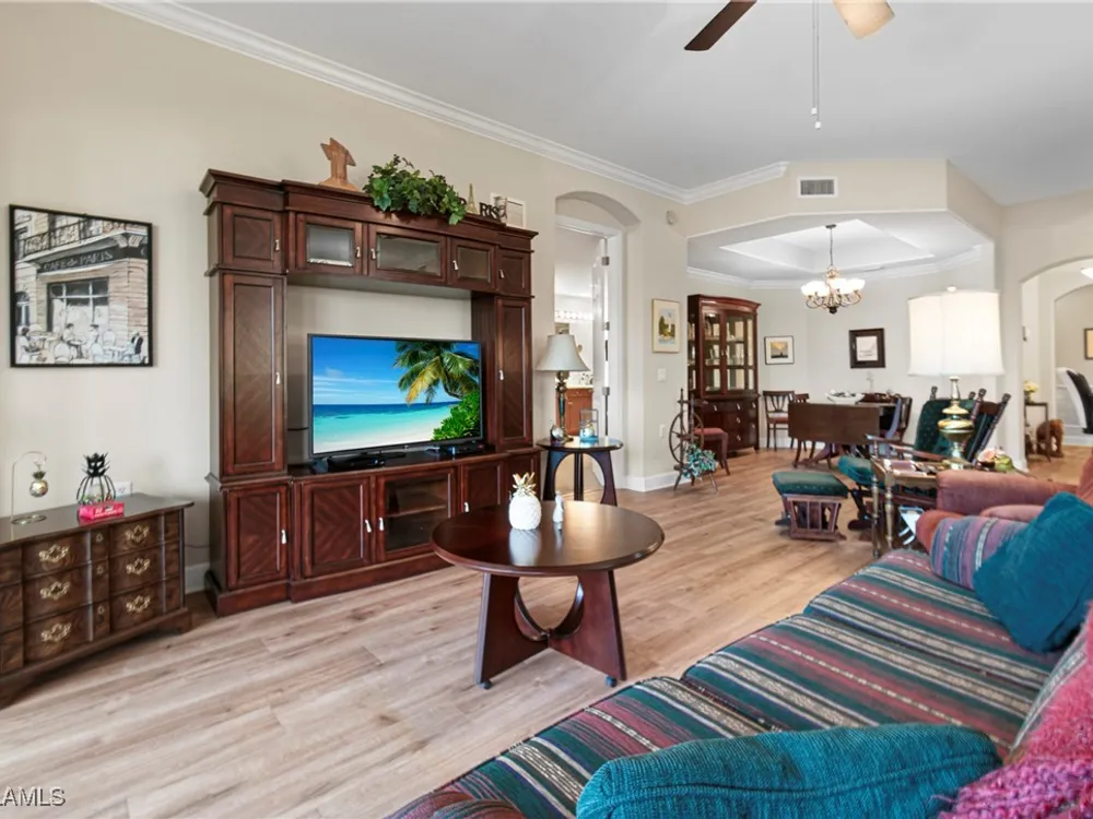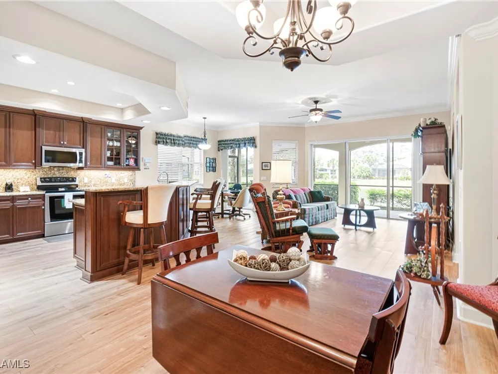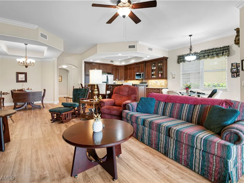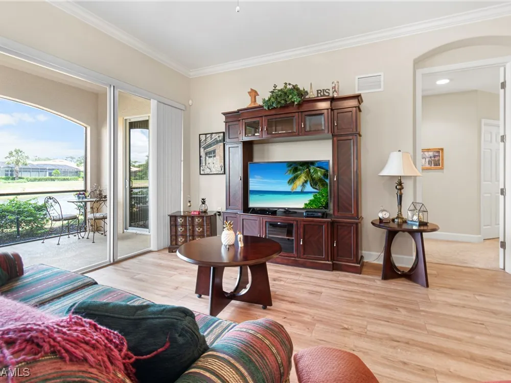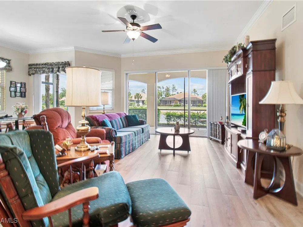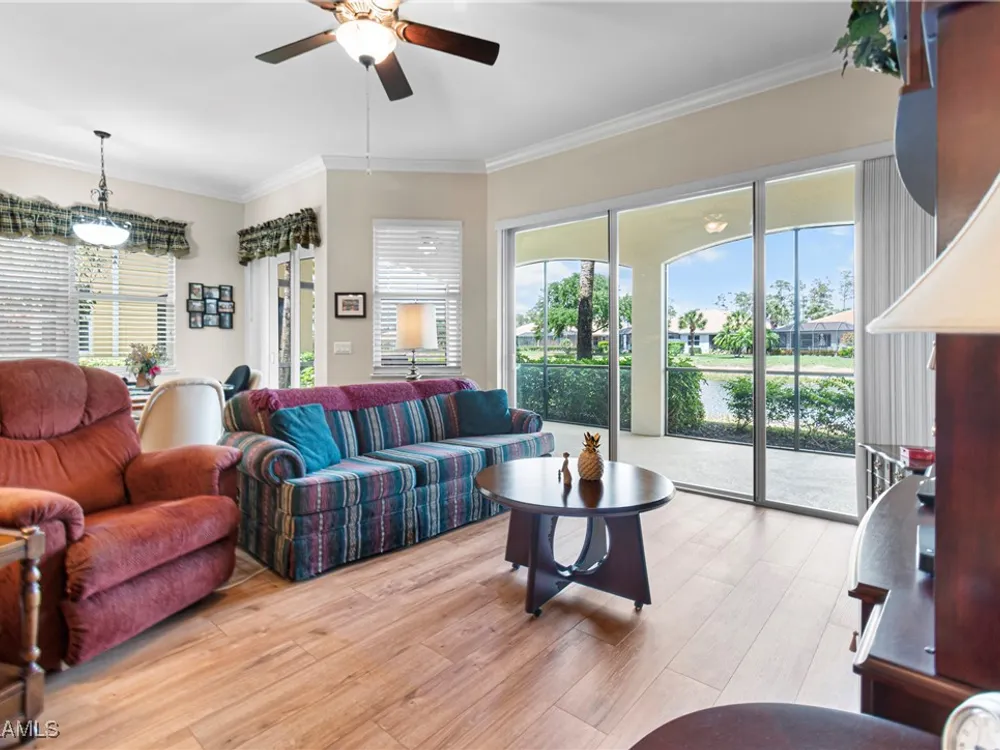 PRICED TO SELL IN TODAY'S MARKET! First Floor Carriage Home with 3 LARGE BEDROOMS, 2 Bathrooms & a 2 CAR GARAGE! Plus A TOTALLY OPEN CONCEPT! Enter your new Home & you'll love your beautiful Entryway & you will be be wowed by the stunning Luxury Vinyl Plank Flooring. This Community has New Roofs plus a Lake, Preserve & Golf View to Enjoy! The A.C. was Totally Refurbished in 2017. The Kitchen has "Ultra-Rich" Cabinets, Updated Stainless Steel Appliances & "High-Grade" Countertops! The Beautiful Barstools & Amazing Breakfast Table & Chairs remain with the Home! The Home is adorned with Crown Molding, Updated Fans w/Lighting & Coffered Ceilings. All 3 Bedrooms are Large & have extremely comfortable carpet & the Master has an Amazing Walk-in Shower. All Furniture in the Guest Bedroom Remains & the Daybed in the 2nd Guest Bedroom also stays with the Home! Enjoy Mornings & Evenings on your Lanai with A Beautiful Lake View! Note: All the Lanai Furniture Remains! The Lanai also has Privacy Blinds to Enjoy! NOTE: The home is being Sold Partially Furnished but in Reality the Majority of the Furniture REMAINS! WELCOME TO PARADISE! YOUR FUTURE HOME IS LOCATED IN PELICAN PRESERVE ONE OF THE TOP 55+ COMMUNITIES IN THE U.S. LOCATED NEAR SWFL INTL. AIRPORT, SHOPPING & THE BEACHES!