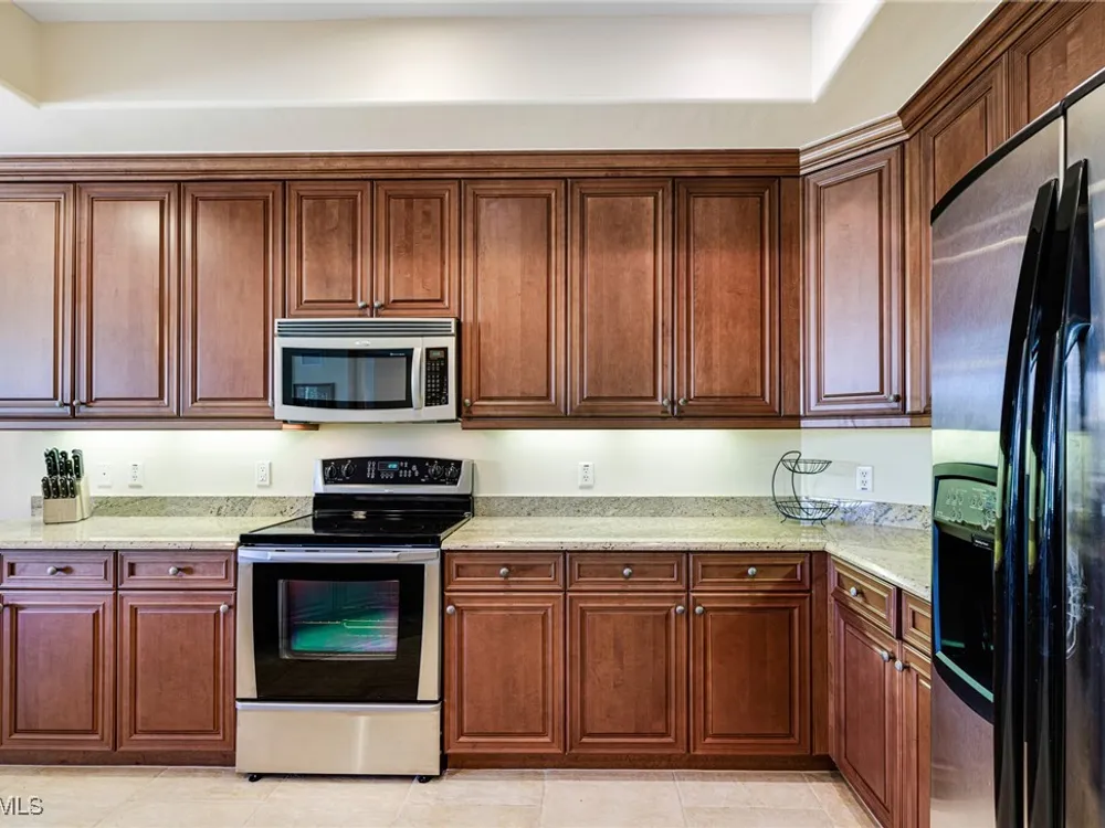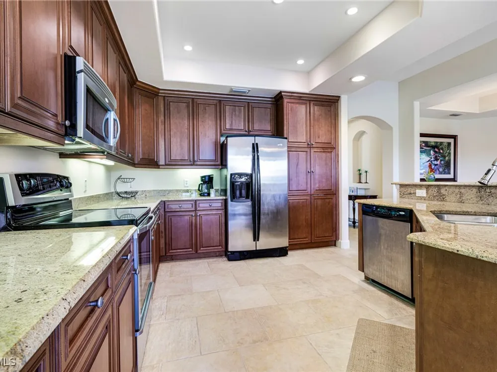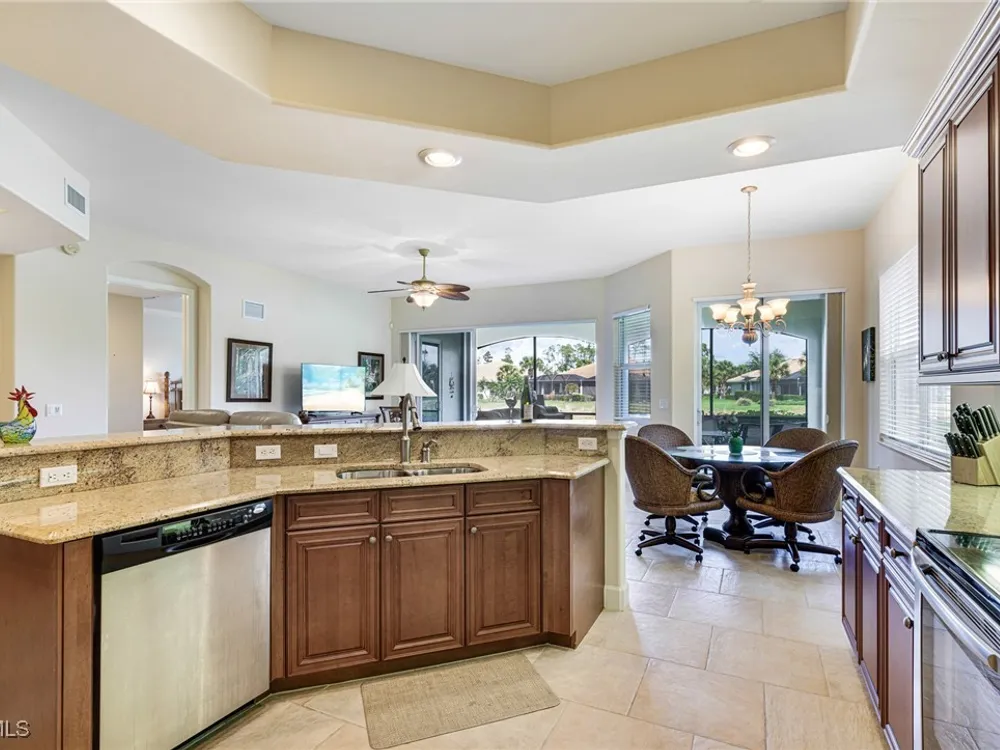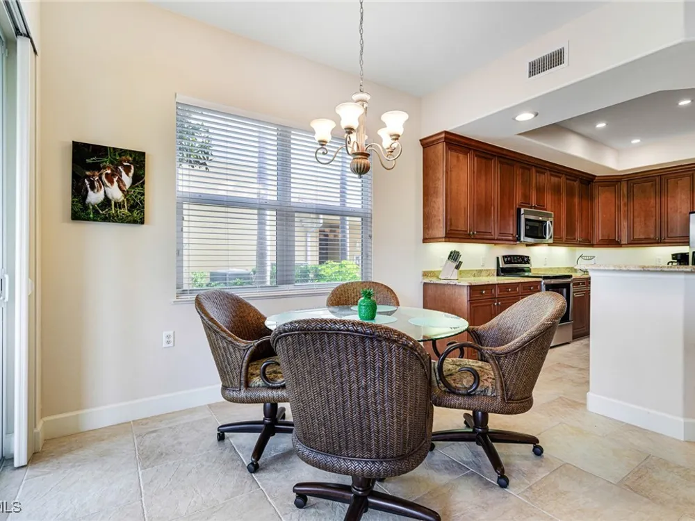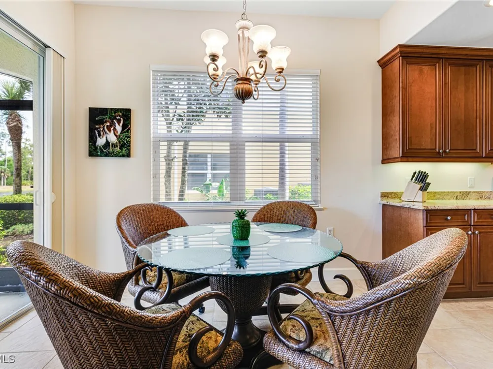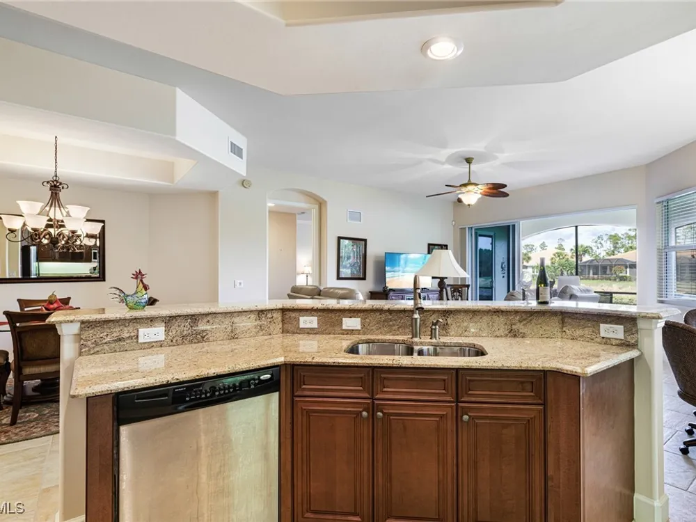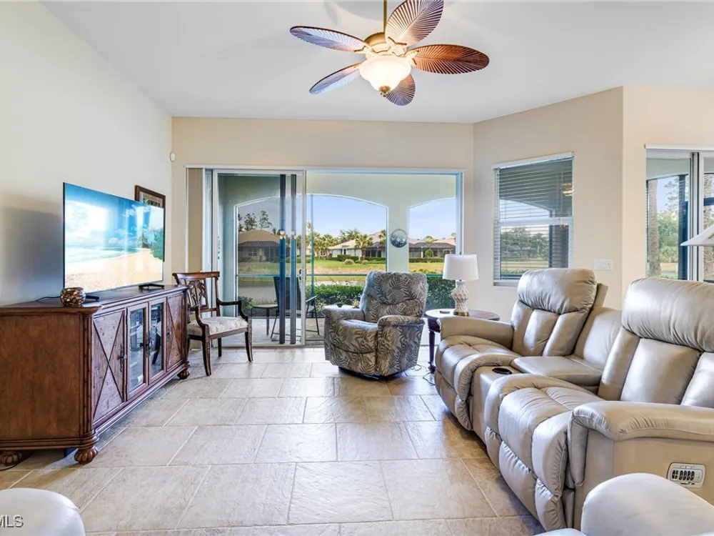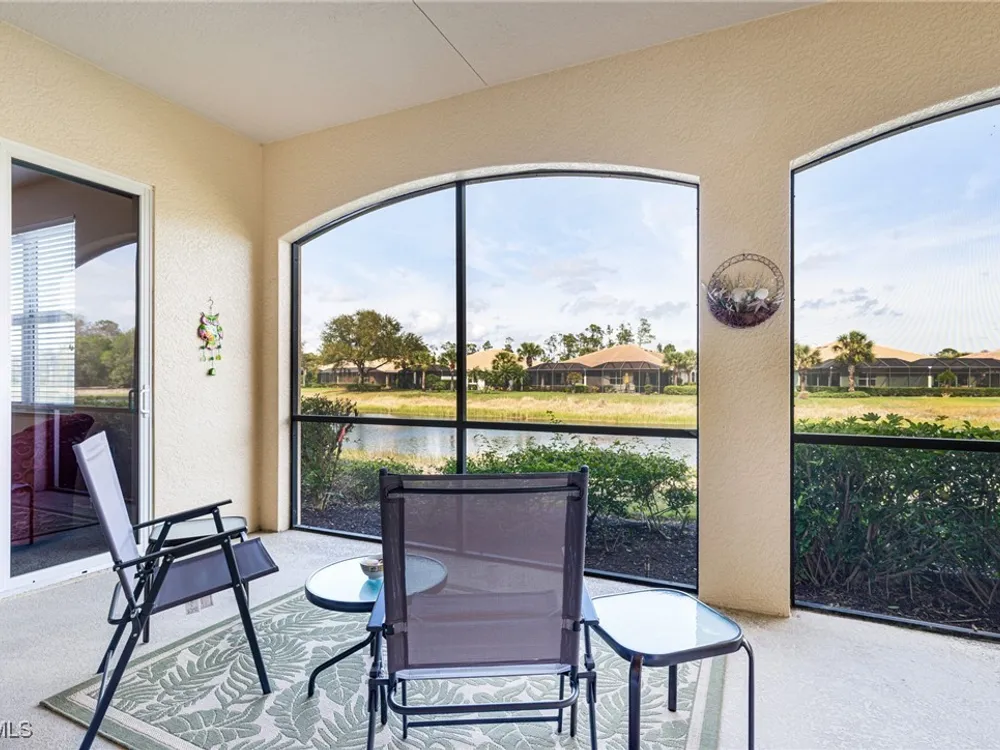 INCREDIBLE PRICE ON THIS BEAUTIFUL CARRIAGE HOME! MOVE IN READY TURNKEY! It is all about lifestyle, and Pelican Preserve will not disappoint! This 1st floor carriage home could be the one you have been waiting for. You will love the spacious great room with tray ceilings and plenty of room for entertaining.There is tile throughout and newer carpet in the bedrooms. Granite counters, stainless appliances, and under-counter lighting in the kitchen. The living room furniture is new and reclines! The AC and WH were replaced in 2024! To top it off, the seller is offering $1500 allowance for a new refrigerator! Step outside onto your patio and enjoy the peaceful water views complete with privacy and wildlife sightings. And for added peace of mind all windows and doors are high impact glass. Note the association covers all expenses except electricity and contents insurance. This one is being sold Turnkey, so just move in and start enjoying the Florida Lifestyle. Living in Pelican Preserve means you'll have access to a wide range of amenities to suit all interests, from pickle ball, golf and tennis to fitness classes and social clubs, spa, dog parks, entertainment, theatre, amphitheater, walking trails, card groups, etc. Don't miss out on the opportunity to make this stunning home yours - schedule a showing today!