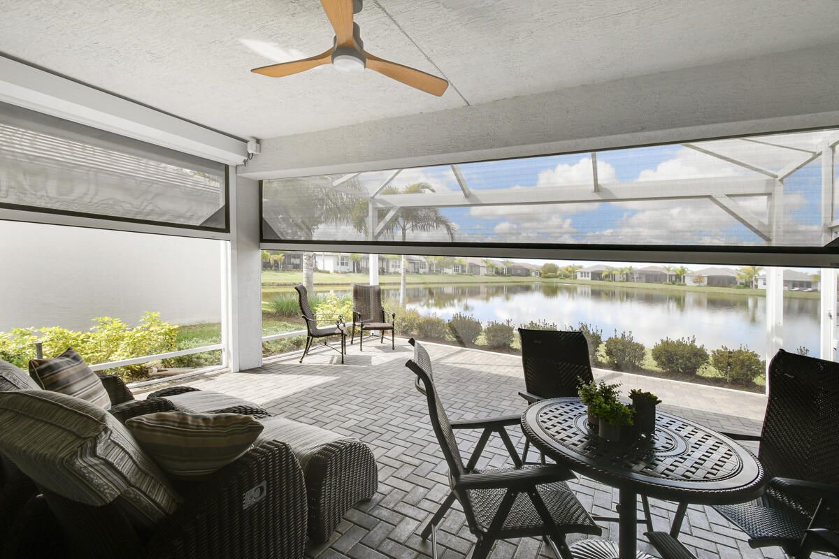 UPGRADED luxury living at this WATERFRONT Lucie model home. Interior features; a gourmet kitchen boasting natural quartzite stone counters, high-end cabinetry with pullout drawers, upgraded appliances, a new glass backsplash, deep double sink, and an oversized in-cabinet self-venting microwave, high-end faucet and hardware; matching wood-look porcelain floors (no carpet), plantation shutters, custom organizers in ALL closets, Minka fans, and the security of never losing power with a WHOLE-HOUSE GENERATOR. The primary bath includes a Hansgrohe shower system and tile to the ceiling. Outdoor living is enhanced by an extended screened patio with, a natural gas line for BBQ, and hurricane roll-down shades. Additional upgrades: stained garage floor with storage and re-landscaped exterior. Enjoy Riverland's amazing amenities: A 2-lane scenic Paseo for walking, golf carts/bikes; a 34,000 sq ft clubhouse w/ resort-style pool, restaurant, & live entertainment; a 24-acre fitness campus w/ state-of-the-art gym, 4 pools (3 outdoor/1 indoor); plus an arts and culture center for cooking, painting, or pottery!