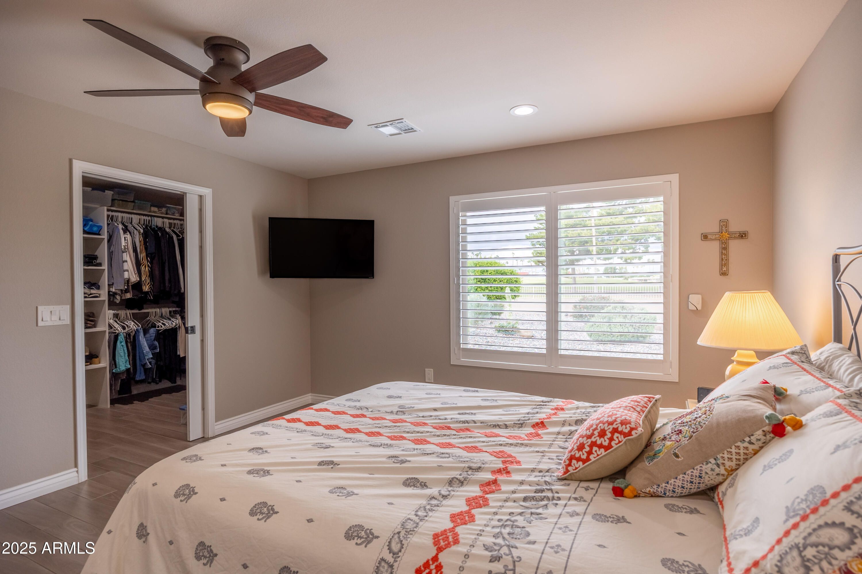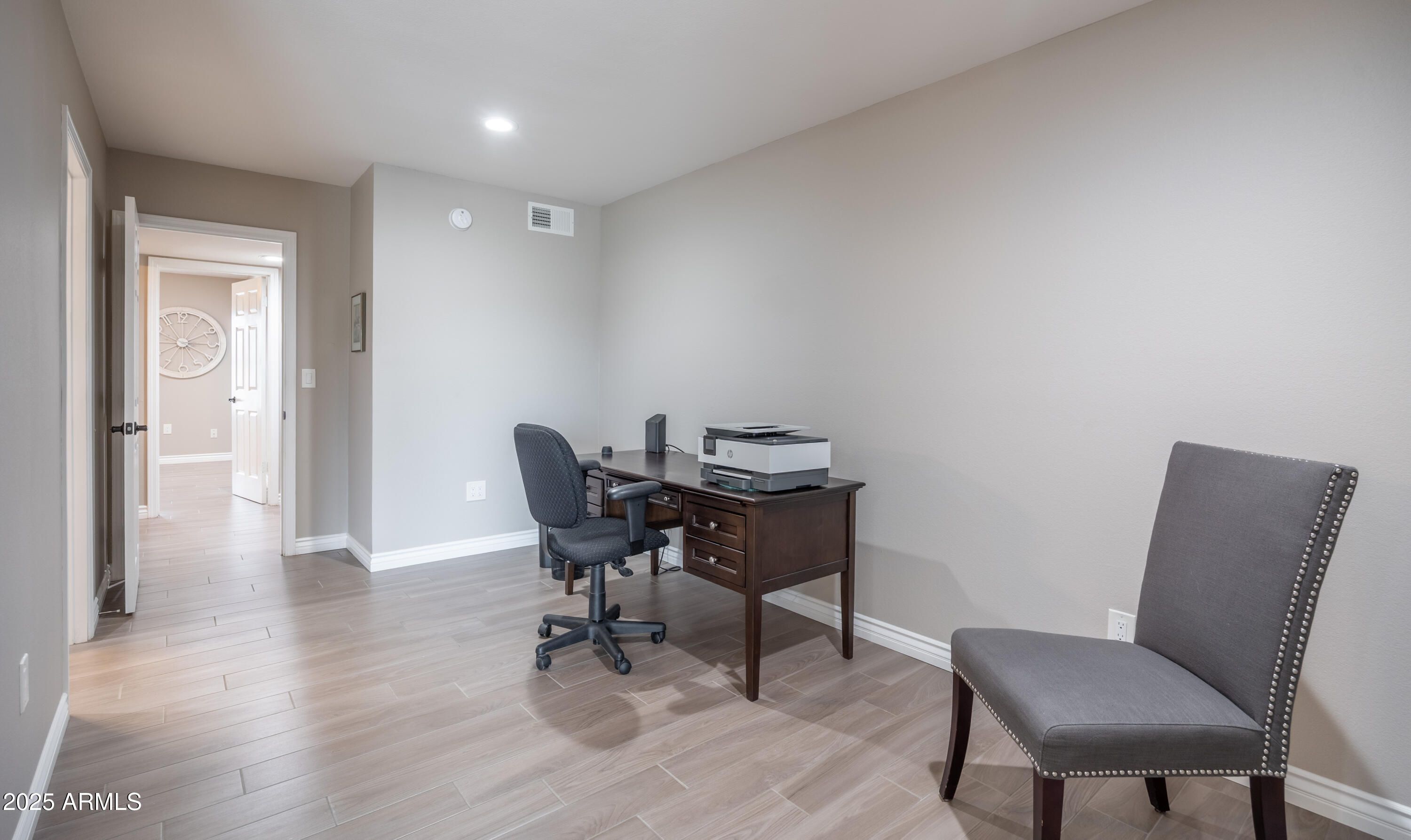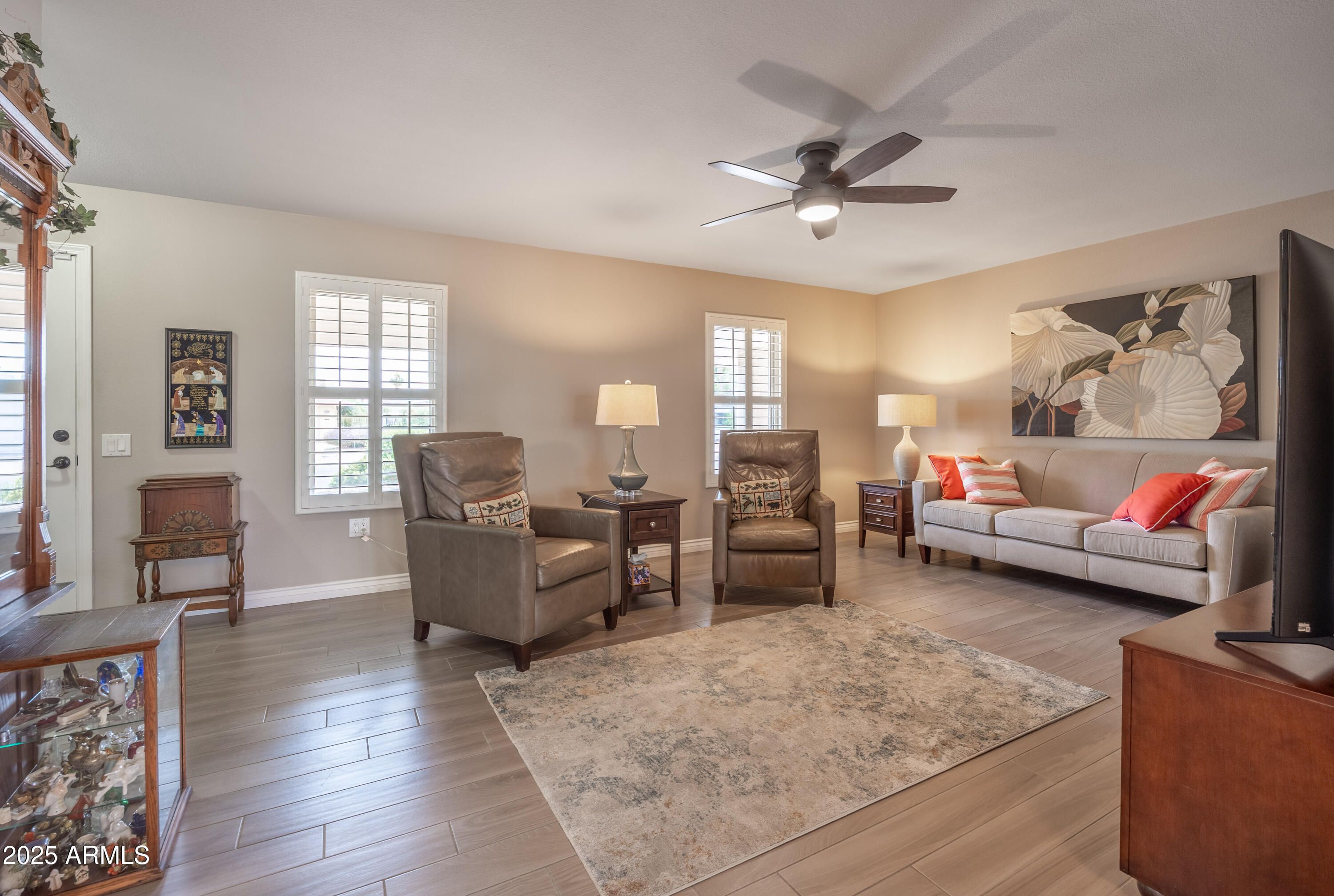 Absolutely Gorgeous Golf Course Home! Everything has been done for you! Inviting & remodeled. Stucco exterior w/ dual pane windows. Beautiful kitchen which is open to the large AZ room features granite countertops, tiled backsplash, luxury wood cabinets, stainless steel appliances, recessed lighting, & breakfast bar. Primary suite w/ spacious closet, large, tiled shower, tub, & vanity w/ granite top & undercabinet lighting. Office area in primary suite is like having a 3rd bedroom! 2nd bath has tiled shower, & vanity w/ granite top. Plantation shutters, ceiling fans, plank tile flooring throughout. Inside laundry w/ washer/dryer. Incredible fenced backyard overlooking golf course w/ covered patio to enjoy the views! This is a 10! So many wonderful updates! Trane HVAC-'23. Roof-'18.