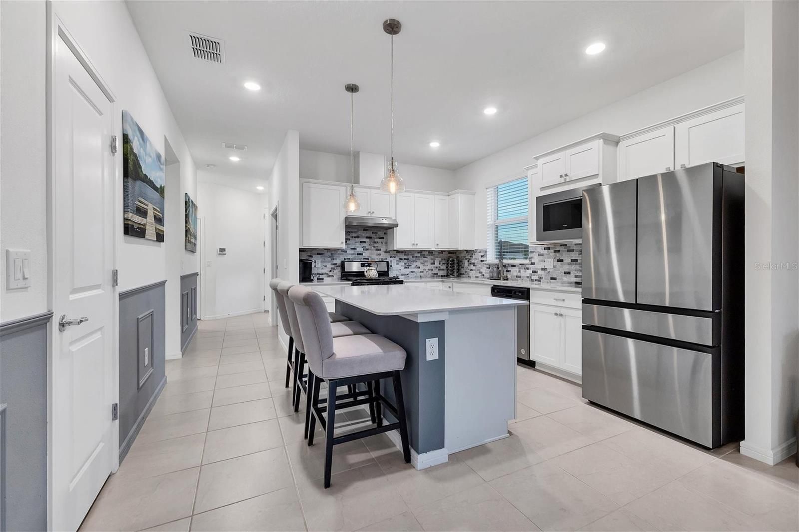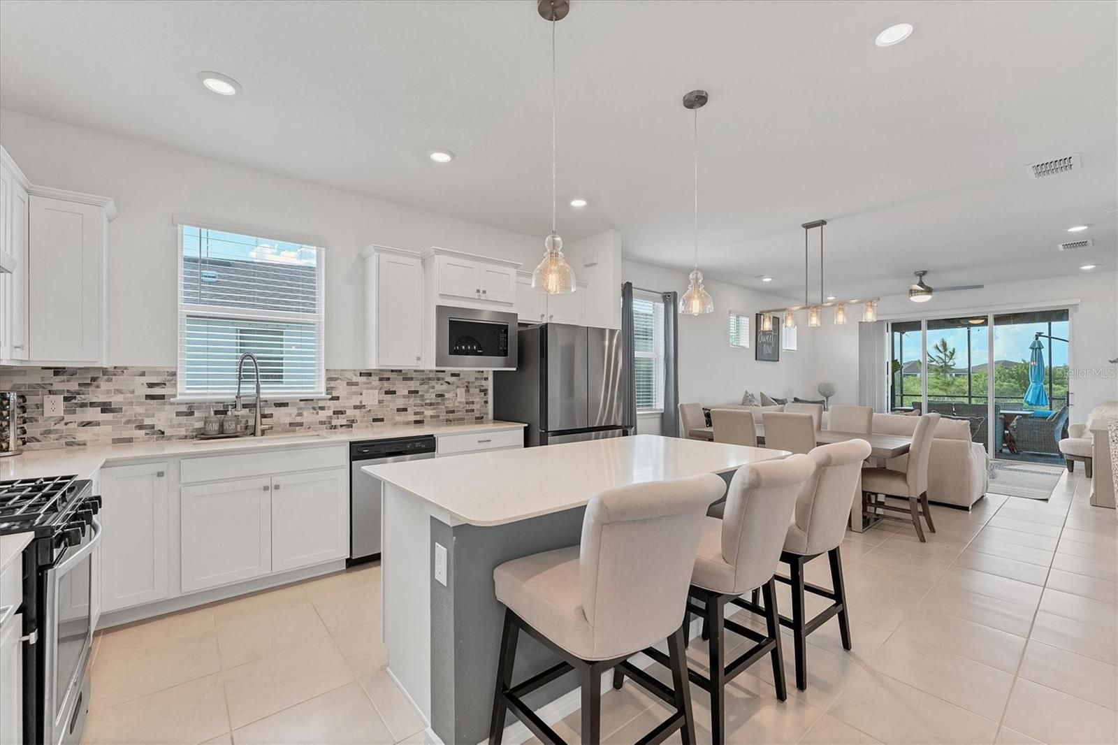 Experience elevated living in the sought-after BayView community with this beautifully upgraded CONTOUR floorplan. Designed for discerning 55+ buyers, this residence offers a seamless blend of luxury, comfort, and active lifestyle amenities. Enjoy Florida’s sunshine from your extended lanai and patio, surrounded by lush landscaping that creates a private outdoor retreat. The air-conditioned garage provides a climate-controlled space ideal for hobbies, crafts, or additional storage. Step inside to discover high-end finishes throughout: - Premium vinyl plank flooring in the den - Designer clear glass pendant lighting - Elegant marble backsplash in the kitchen - Ceiling fans throughout, including outdoor areas - Integrated surround sound system for immersive entertainment The gourmet kitchen features a gas range and on-demand hot water, catering to both convenience and culinary excellence. BayView’s exclusive amenities include: - Streaming TV and internet included in the HOA - Full grounds maintenance - A state-of-the-art fitness center - Resort-style pool with cabanas and hot tub - Shuffleboard courts, community garden, and two dog parks - On-site restaurant and golf cart-friendly pathways - A wide variety of clubs and social activities tailored to active adults This home offers the perfect balance of sophistication and community engagement. Schedule your private showing today and discover why BayView is the premier destination for luxury 55+ living. Please note that 2025 Taxes includes the CDD fee and two homesteads