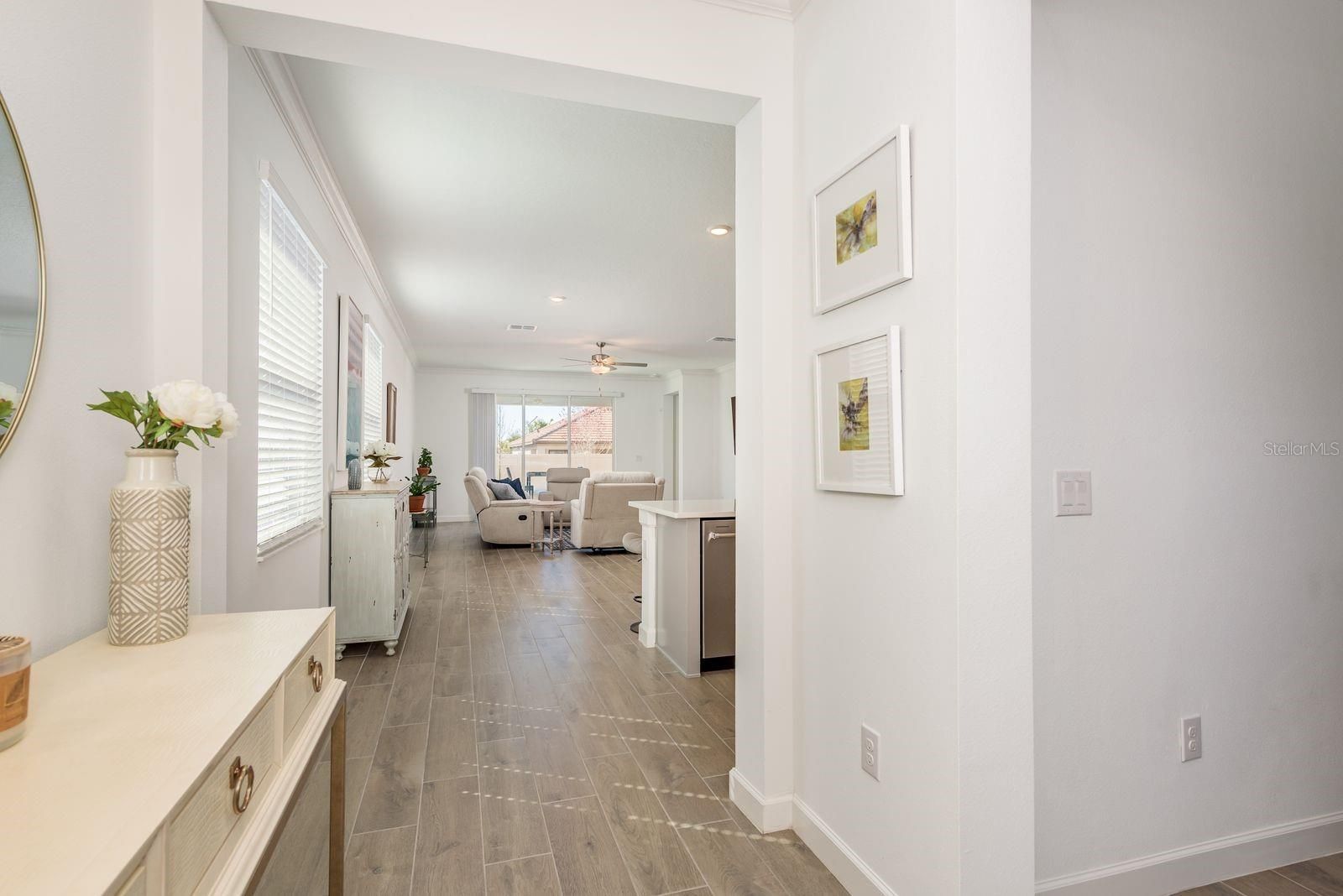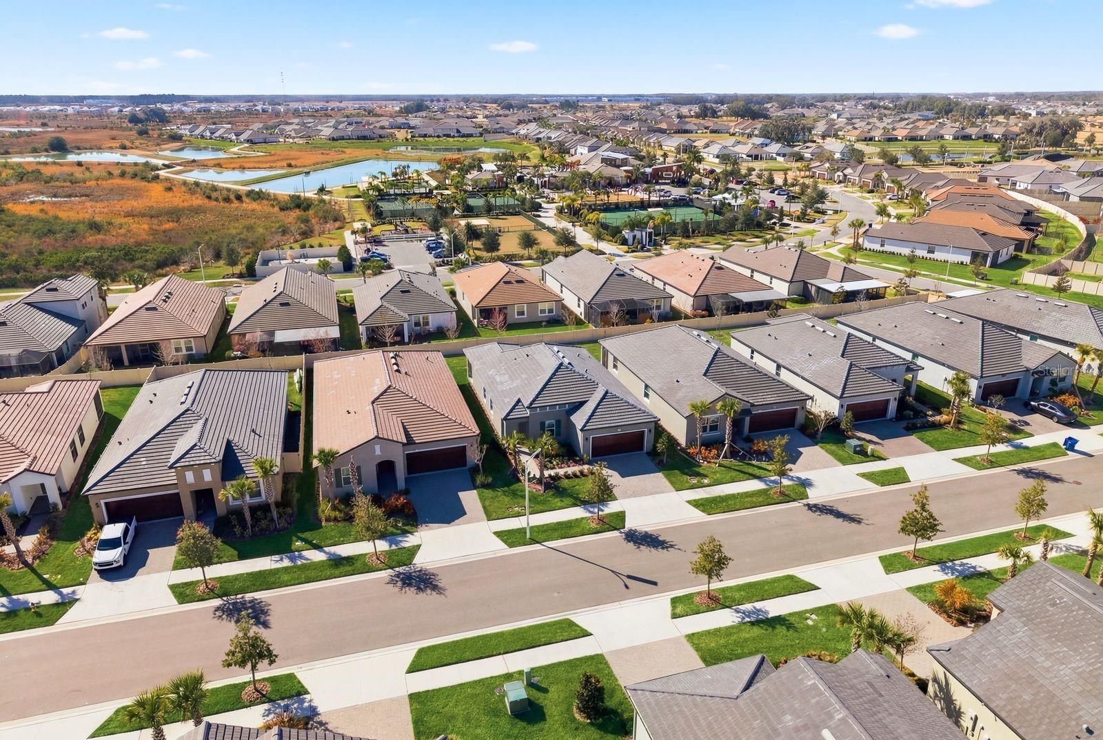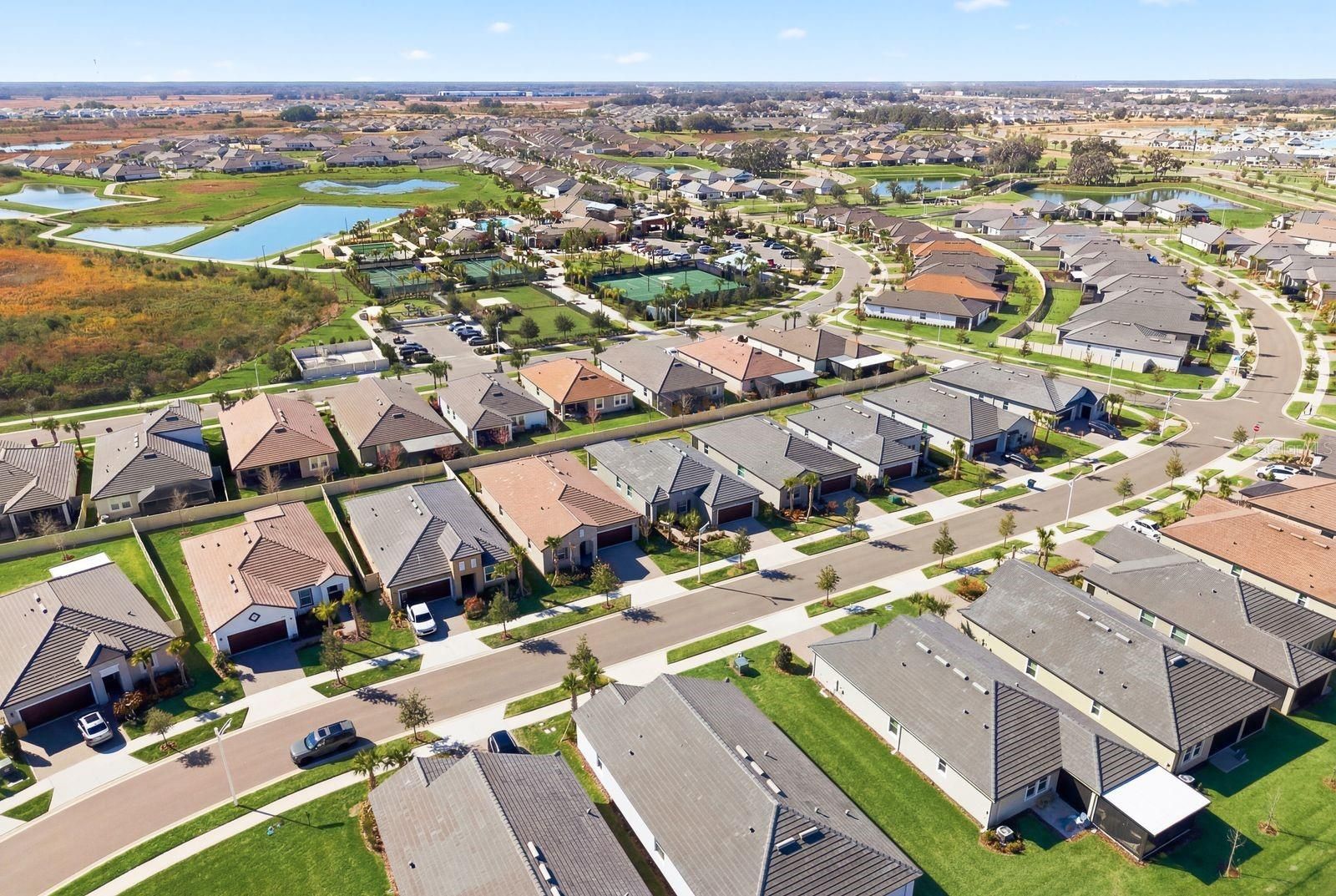 Discover effortless Florida living in the sought-after Medley at Mirada 55+ active community. This two year old Mediterranean-style home is immaculate, move-in ready, and an ideal alternative to waiting for new construction. The home offers 2 bedrooms, 2 bathrooms, and a flexible den or office, all within a bright open-concept Splendor layout designed for both comfortable daily living and entertaining. An oversized 2-car garage provides ample space for a golf cart, storage, or hobbies.The contemporary kitchen features upgraded GE stainless steel appliances, including a french door refrigerator, microwave, glass-top range with convection oven and air fryer. The Kinetico REVERSE OSMOSIS system provides high quality purified drinking water for added convenience. Additional upgrades include crown molding, a dedicated laundry room with cabinetry, Ring doorbell, and exterior flood lights, showcasing thoughtful attention to detail throughout. Enjoy 1,783 square feet of living space on a 6,075-square-foot maintenance-free homesite. Exterior maintenance, lawn care, irrigation, basic cable, and internet are included for truly low-maintenance living. Residents of Medley enjoy a private resort-style clubhouse with a sparkling pool, poolside bar and café, ballroom, billiards room, fitness center, and a full social calendar! Recreational amenities include pickleball, tennis, bocce ball, and shuffleboard with this home being just steps away from all of the fun! Ownership also includes membership to the Mirada freshwater lagoon, featuring sandy beaches, kayaking, swim areas, lounge seating, and food and beverage options, offering a vacation-like setting right inside the community. Conveniently located near I-75, the home is a short drive from The Shops at Wiregrass, Tampa Premium Outlets, KRATE Container Park, and Main Event Wesley Chapel, along with everyday shopping and dining. Nearby medical facilities include AdventHealth Zephyrhills and AdventHealth Dade City. Experience the ideal blend of comfort, convenience, and active 55+ living at Medley at Mirada!