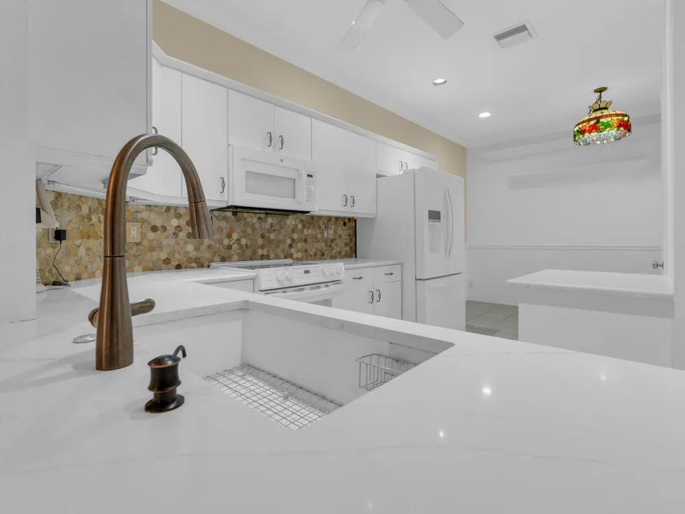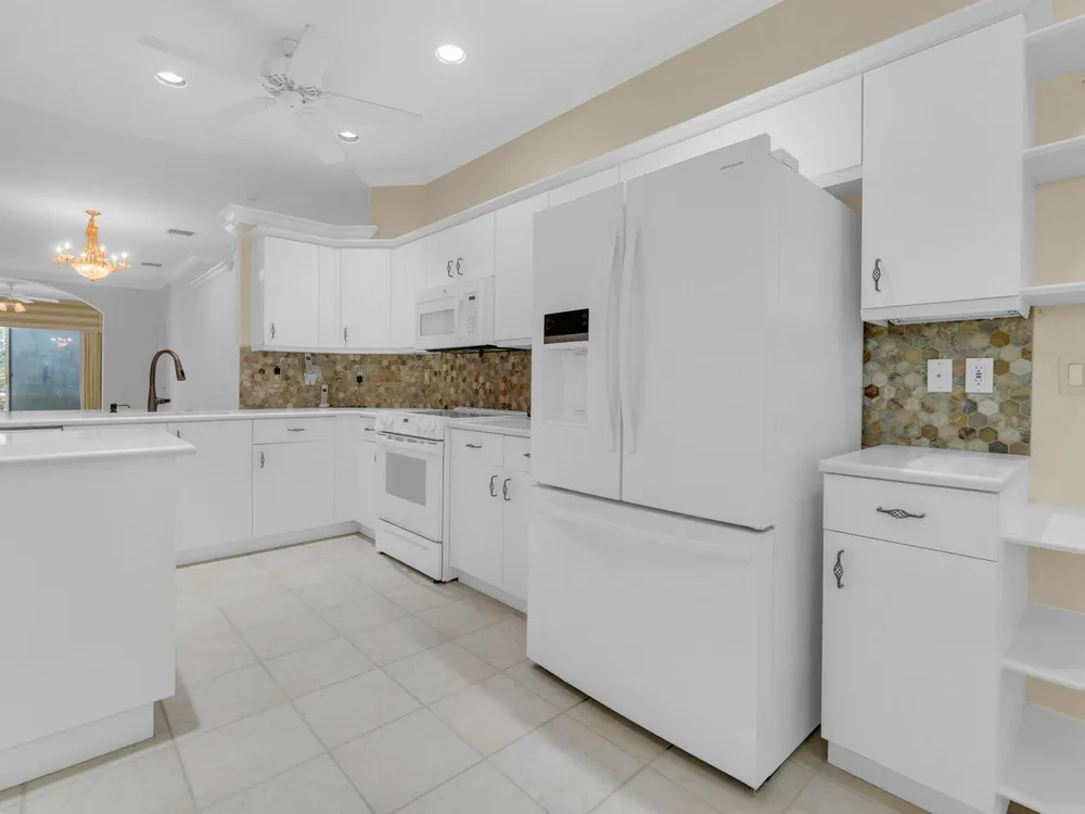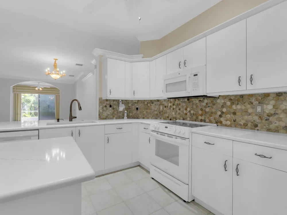 Welcome to Resort-Style Living in a Premier 55+ Guard-Gated Community Majestic Isles Discover the perfect blend of comfort, style, and convenience in this beautifully maintained villa, ideally situated in one of the area's most desirable 55+ communities. This spacious residence features three full bedrooms, two bathrooms, and an attached two-car garage, offering ample room for both relaxing and entertaining. Step inside to soaring vaulted ceilings in the expansive family and dining area, creating an airy, inviting atmosphere. The open-concept kitchen has been thoughtfully remodeled with stunning quartz countertops and seamlessly connects to the living space, ideal for hosting family and friends. Freshly painted interiors enhance the home's brightness, complemented by its