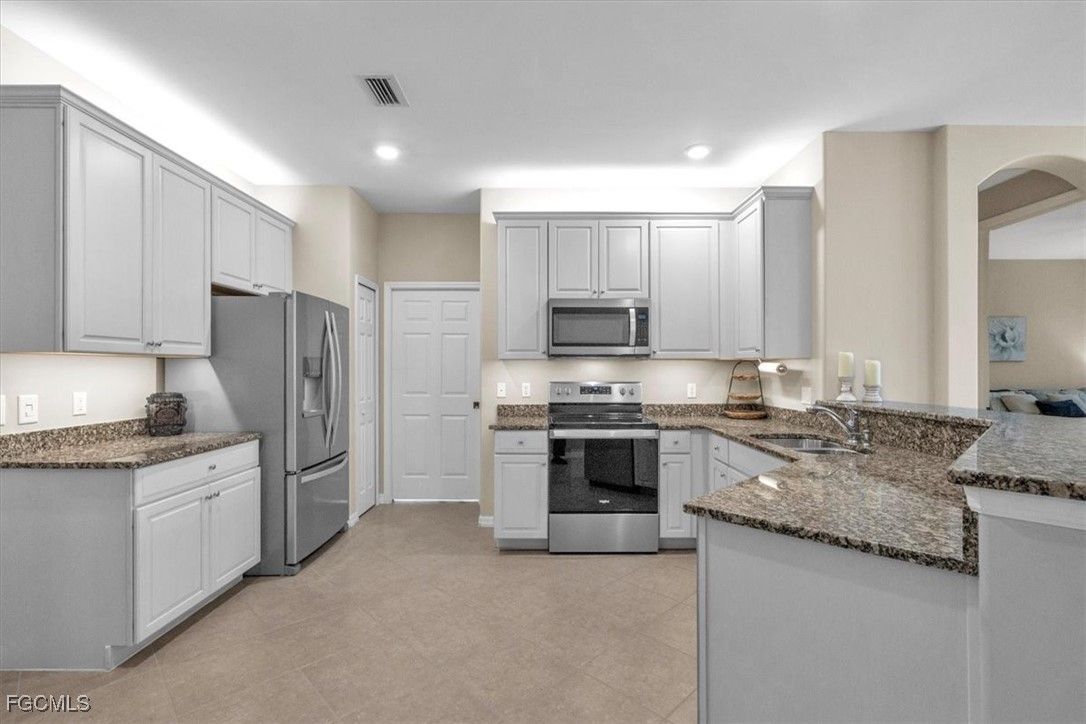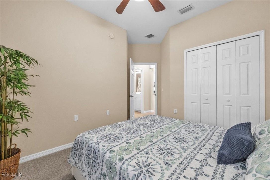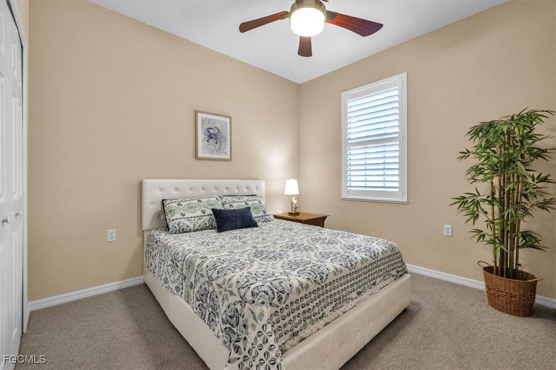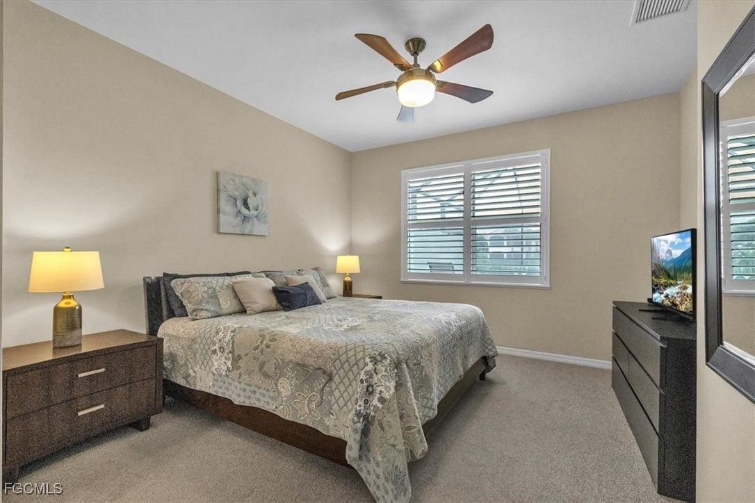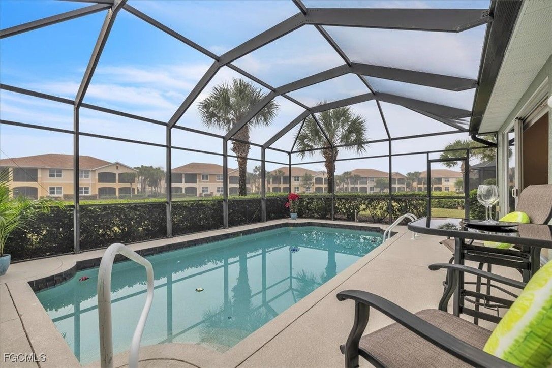 Welcome to this extraordinary home in the prestigious Pelican Preserve community! This immaculate villa home is move-in ready, updated, painted, cleaned, turnkey, and priced to sell fast. The sparkling pool is an inviting oasis with a pond view beyond. The granite counters in the kitchen add a touch of elegance, while the new appliances make meal prep a breeze. The hurricane glass windows and doors provide peace of mind, and the plantation shutters and tile floors in the living area create a stylish and comfortable space for relaxing or entertaining guests. The master bedroom is a true retreat with new carpet and a bathroom with dual sinks plus a closet with built-ins. The guest area has a new bed, new carpet, and privacy curtain to divide the area from the great room. With a new roof in 2025 and a stunning expanded Milan floor plan, this home is truly a gem in Pelican Preserve. Pelican Preserve is a 55+ community that is amenity-rich with pickleball, tennis, cypress preserve trails, dog parks, bocce ball, fitness center, spa, craft rooms, dining, music, pools, butterfly garden, softball, and much more. Don't miss your chance to own this slice of paradise!