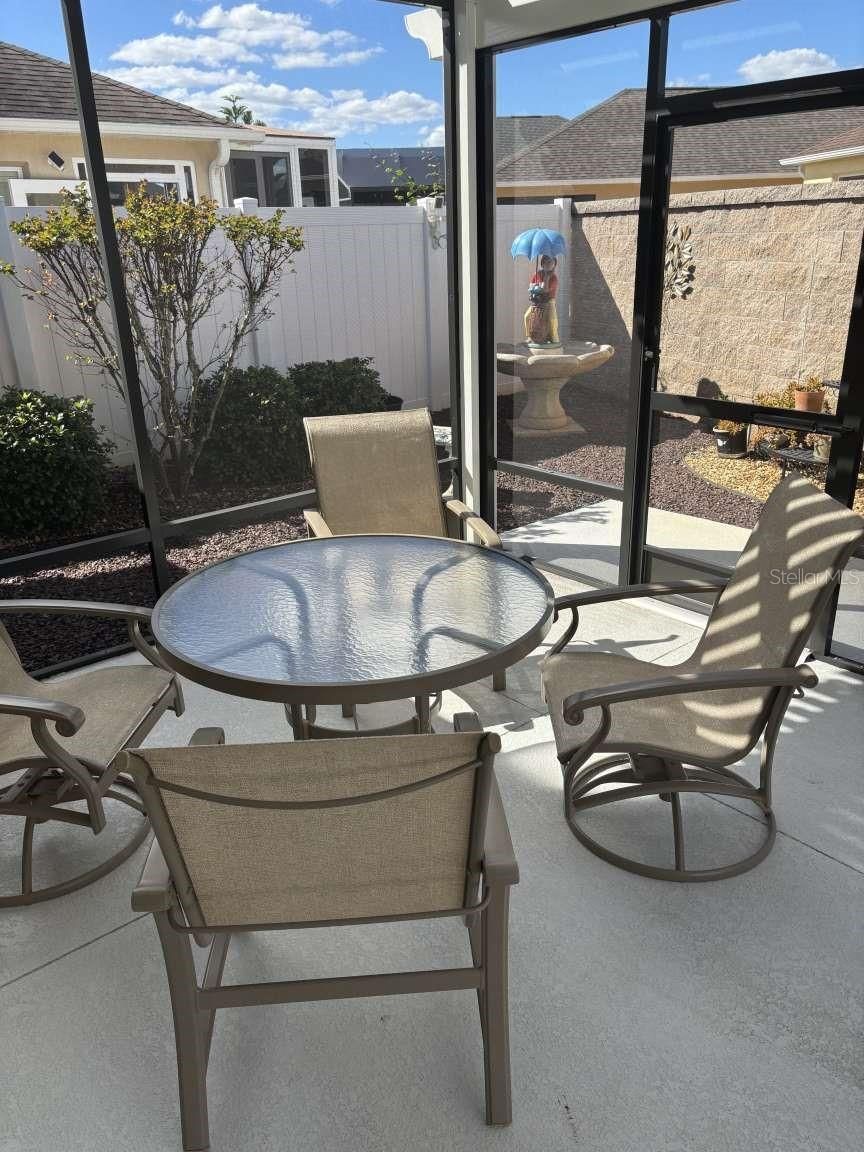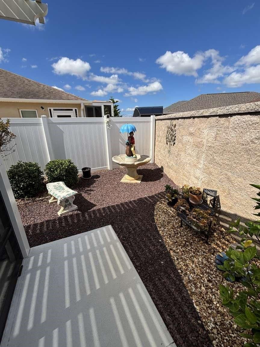 TURN-KEY SALE Low Bond - under $13,000 Friendly and active neighborhood Comfortable walk throughout area Fully Furnished and Stocked Low Maintenance Inside and outside No Grass or Carpets Great Location Near Three Country Clubs Near Four Executive Golf Courses Near Three Rec Centers Near Dog Park and Nature Preserve Near Golf Shop, Driving Range, putting and chipping practice area Near Shopping, Medical and Restaurants Beautiful poured concrete two bedroom two bath Court Yard Villa. with enclosed fully insulated lanai and fully screened 200sf Pergola. Floors are premium vinyl planking throughout house and ceramic tile in lanai. Stamped driveway and painted walkways. Enclosed yard for privacy and pets. Solar tube in Living Room and Master Bath. Quartz countertops and upgraded faucets in kitchen and bathrooms. Premier Master Shower Upgrade. Finished Wood Cornish’s on all windows. Custom Fans. Screened /Glass storm Door. Nice golf caddy water fountain.