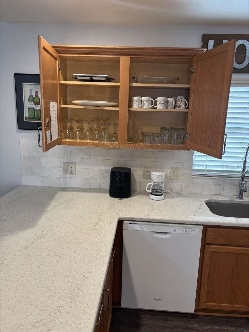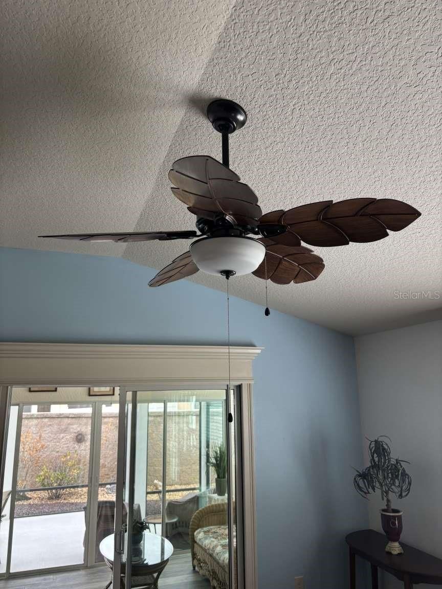 - Ceiling Fan(s), Coffered Ceiling(s), High Ceilings, Living/Dining Room, Open Floorplan, Main Level Primary, Solid Surface Counters, Solid-Wood Cabinets, Stone Counters, Thermostat, Vaulted Ceiling(s), Walk-In Closet(s), Window Treatments