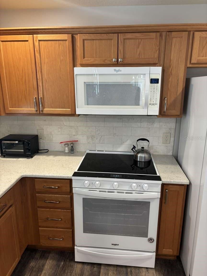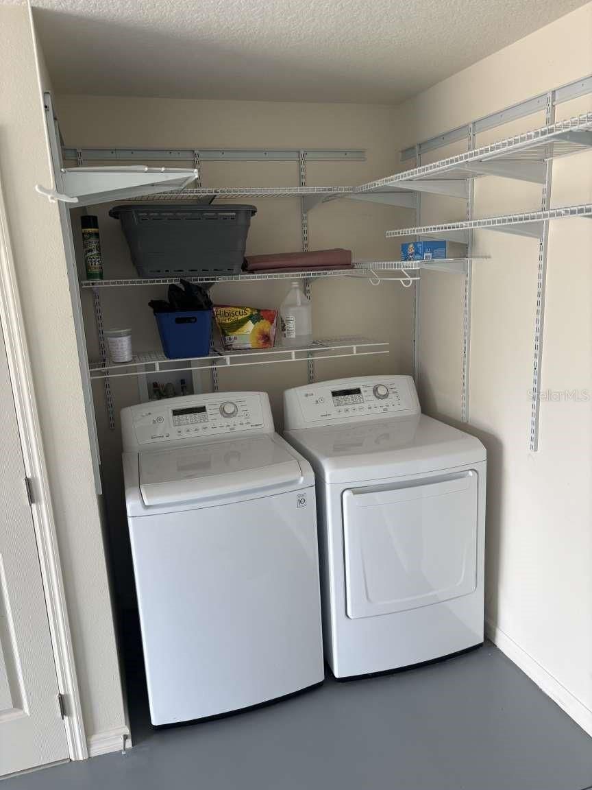 - Dishwasher, Disposal, Dryer, Electric Water Heater, Ice Maker, Microwave, Range, Range Hood, Refrigerator, Washer