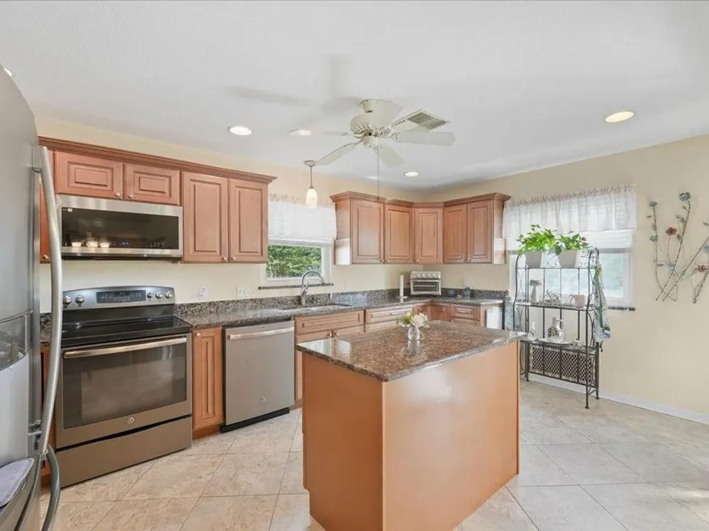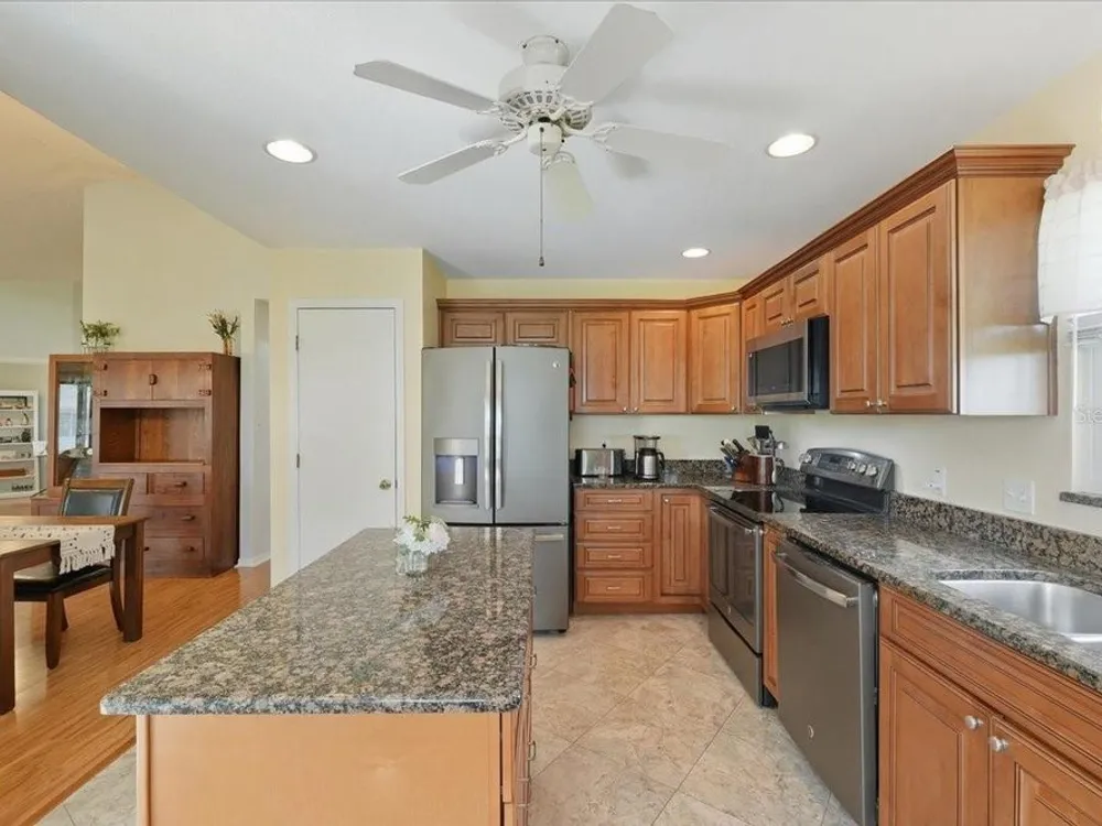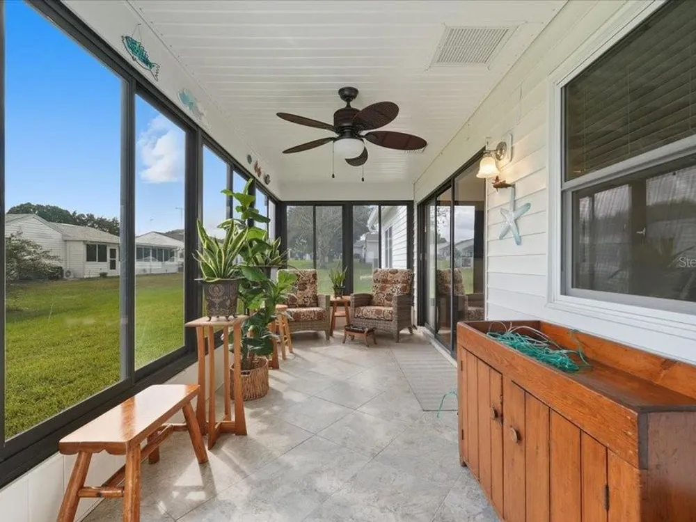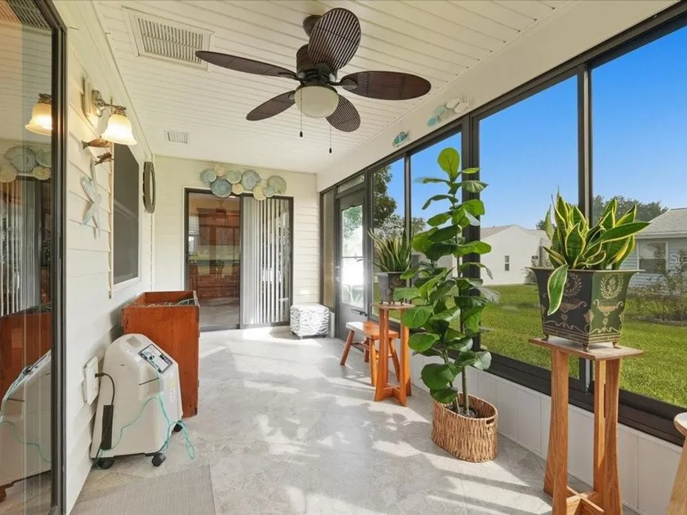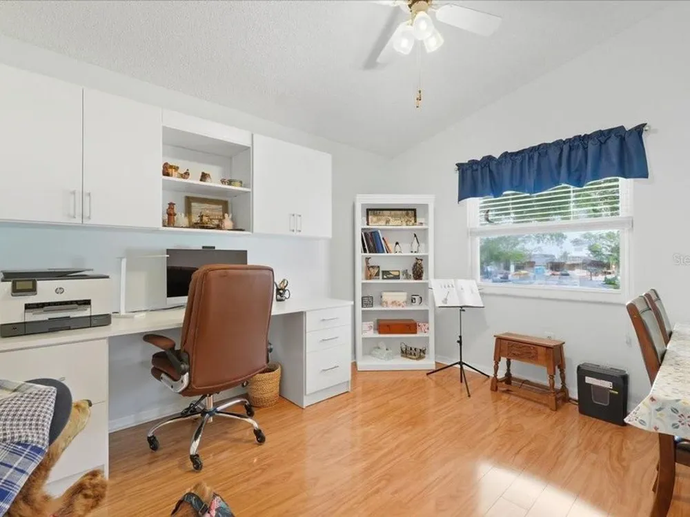 Welcome to this beautifully maintained 2-bedroom, 2-bath home in the highly sought-after Sandpiper Golf & Country Club, a 55+ golf community in Lakeland! Pride of ownership shines throughout this move-in ready residence featuring an open, spacious floor plan ideal for both relaxing and entertaining. The bright kitchen offers stainless steel appliances, a center island, solid wood cabinetry, and granite countertops with plenty of workspace. The dining area flows effortlessly into the living room, creating a warm and inviting space filled with natural light. The primary suite is a peaceful retreat with walk-in closets and a private en suite bath featuring a solid wood vanity. The generous guest bedroom has access to an updated second bath. A separate office with a built-in desk offers flexible space that could easily serve as a third bedroom or hobby room. Enjoy your morning coffee or unwind after a round of golf in the spacious enclosed lanai, complete with central air and heat for year-round comfort. Recent updates include: fresh interior paint, extended driveway, new sod and river rock landscaping, generator outlet and surge protector, new attic insulation, and new ceilings in both the lanai and front porch. Sandpiper Golf & Country Club offers resort-style amenities including golf, a fitness center, clubhouse, restaurant, community pool, tennis courts, shuffleboard, and more. Conveniently located near medical facilities, shopping, dining, and I-4 just minutes from both Tampa and Orlando this home truly has it all. Don’t wait,schedule your private showing today!