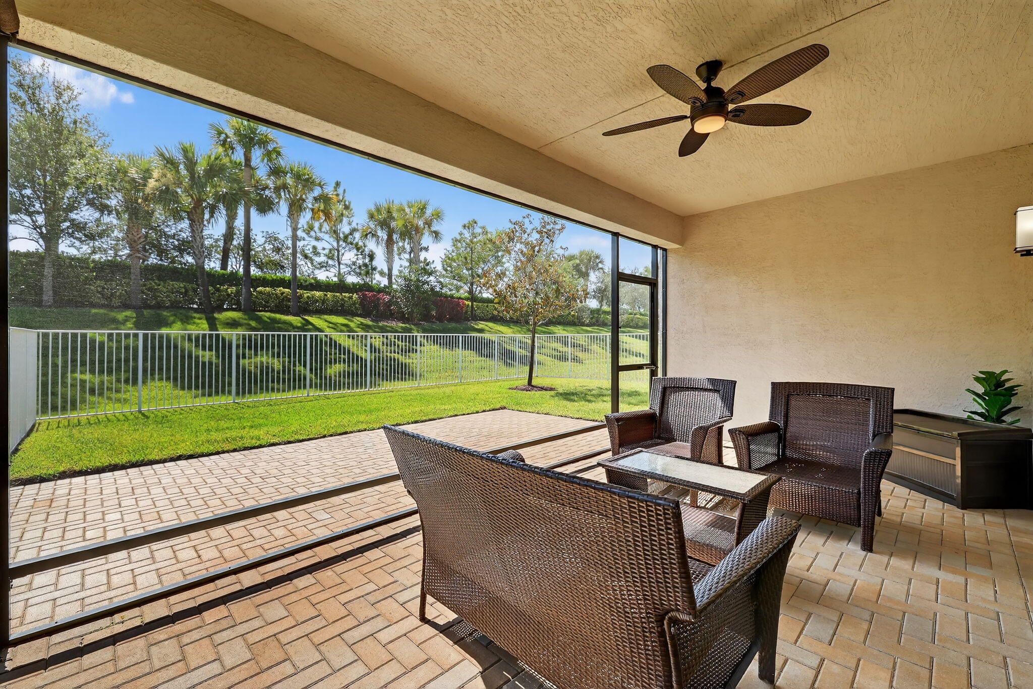 Welcome to your Florida dream home! This beautifully appointed Lucia Model is nestled on a private oversized lot in the highly sought-after Valencia Cay community within Riverland. 2 Bedrooms + Den, 2 Bathrooms, Private, Landscaped Lot, and room for a pool. Open-Concept Floor Plan, Resort-Style Community Amenities. Don't miss your chance to live in one of Port St. Lucie's most desirable 55+ communities. Offering the perfect blend of luxury, comfort, and privacy, this residence is move-in ready & waiting for its next proud owner. Step inside to discover an open-concept layout filled with natural light, and upscale finishes throughout. The gourmet kitchen features stainless steel appliances, quartz countertops, plenty of cabinet space and counter space, perfect for everyday living or entertaining. Enjoy serene indoor-outdoor living with a spacious covered lanai overlooking lush, private backyard that is fenced in. You will enjoy your personal retreat for morning coffee or evening relaxation. The primary suite is a true sanctuary with dual walk-in closets and a spa-like en-suite bathroom complete with a walk-in shower and double vanities. Additional features include a versatile guest bedroom, den/home office, impact windows, and a full-sized laundry room. Valencia Cay at Riverland offers resort-style amenities including a clubhouse, pools, fitness center, pickleball, tennis, bocce, walking trails, and countless clubs and social events all in a vibrant, gated community just minutes from the new Riverland Town Center shopping center accessible by golf cart through the paseo. Dining is available at the Cay Café and River Fresh Café without leaving the community or Riverland. The Cleveland Clinic hospital and medical facility is nearby. Schedule your private tour today! Cleveland Clinic hospital and medical facility are nearby. Easy access to I-95, Florida's Turnpike, and the Treasure Coast beaches.