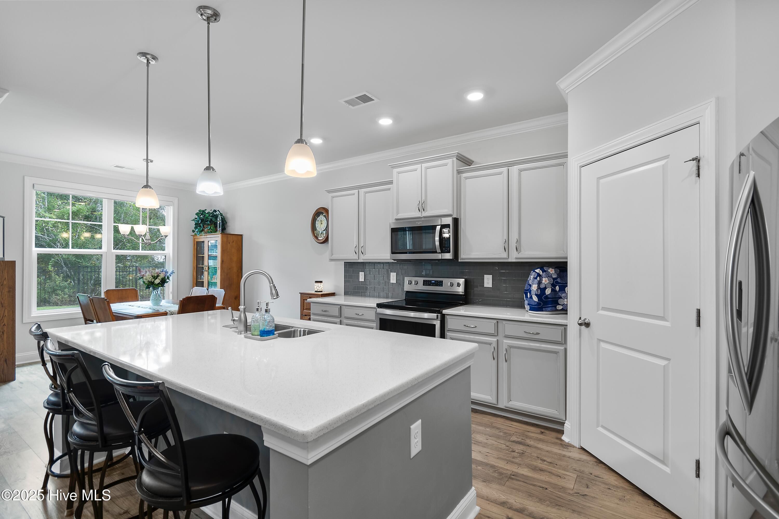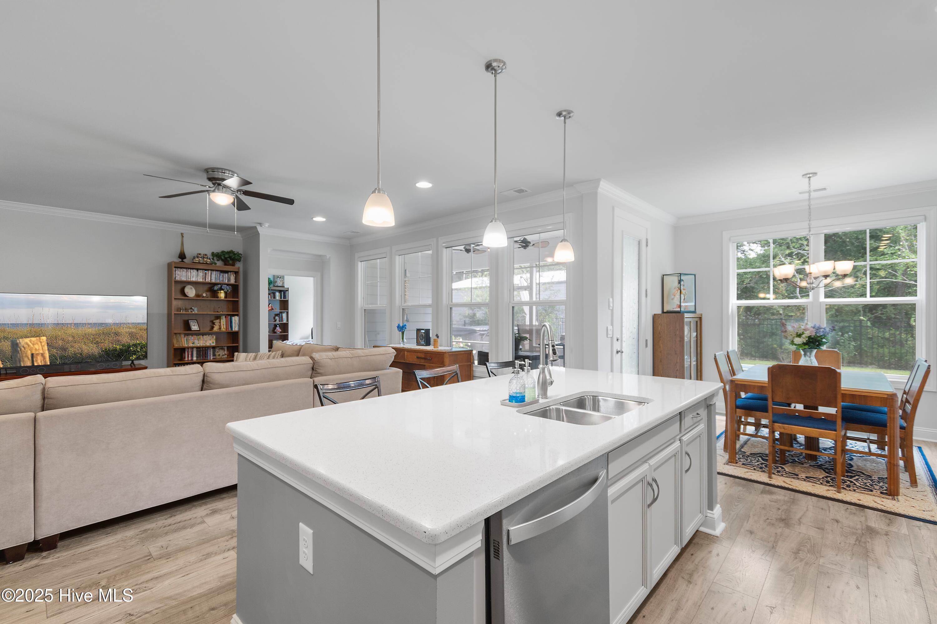 This is your lucky day! Welcome to the charming neighborhood of Cape Side in Sunset Beach, with beautiful custom homes, a wonderfully convenient location and low HOA dues. This lovingly cared for home is ready for a new set of owners. With its open floor plan, generous kitchen with upgraded cabinetry, pantry, and quartz counters, high-end laminate flooring throughout the first floor, high ceilings, fenced yard, and three-car garage, this home is sure to please. Five bedrooms and four bathrooms means there is plenty of room for visitors and even a home office in addition. The upstairs would serve as a wonderful suite for guests as the bedroom has an adjacent bathroom and the bonus room is suitable for a separate sitting or living area. There is more than ample storage in this home, with ten closets and additional walk-in storage accessible from the bonus room. The main floor living area boasts very comfortable space and would easily accommodate a generous amount of furniture. The sizable screened porch and enlarged patio offer very pleasant outdoor space as well. These conscientious owners have done some very nice ''extras'' already for you, such as tile backsplash in the kitchen, extra outlets in the garage, irrigation, and custom roller shades in all windows. The location of this home is absolutely fantastic, nestled in the quaint town of Sunset Beach, approximately 10 minutes from the beach and a stone's throw from the town area of Calabash, with its seafood restaurants and shopping. There are several options for grocery stores, pharmacies, dining, and health care as well. Recreational opportunities in this area abound, with ten golf courses within less than 10 minutes, three nearby beaches, the ICW for fishing, boating or kayaking, and a large park nearby with plenty of tennis and pickleball courts, dog parks, and sporting fields. What are you waiting for? Schedule your showing today!