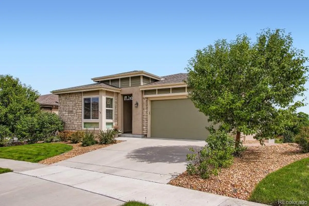 Step inside this beautifully appointed home located in the +55 Skyestone neighborhood. If you are looking for an amazing walk-out property, look no further. Built-in speakers enhance this great room as you notice the warm Caramel Oak wood flooring as you walk through the main level. A stunning custom stone framed fireplace and added mantel enhance this cozy great room area. Warm honey-hued cabinetry, stainless steel appliances, a large island with seating, upgraded quartz countertops, and a stone backsplash create a chef’s kitchen perfect for entertaining. Recent updates include a new microwave (2023) and dishwasher (2024). The primary and secondary bedrooms, great room, and deck are all outfitted with ceiling fans for year-round comfort. The laundry room offers added functionality with extra cabinetry and a utility sink. Outdoor living is a delight with a wrapped deck featuring eastern exposure, a covered patio, and a fully fenced, professionally landscaped backyard that backs directly to the community park. Beautifully private to enjoy our amazing Colorado evenings. Home exterior was painted in 2023. The finished walk-out basement expands the living space, while practical upgrades such as a whole-house humidifier, radon system, and two sump pumps replaced in 2022 provide peace of mind. This home is truly move-in ready, blending thoughtful upgrades, timeless design, and an unbeatable setting. Skyestone Lodge is the perfect setting to meet up with neighbors and explore the many Clubs and events that they offer. Outdoor pool, Pickle Ball Courts, Fitness area and so much more. Loads of hiking and biking trails are right out your front door. Close to Boulder and the Northwest Parkwy.