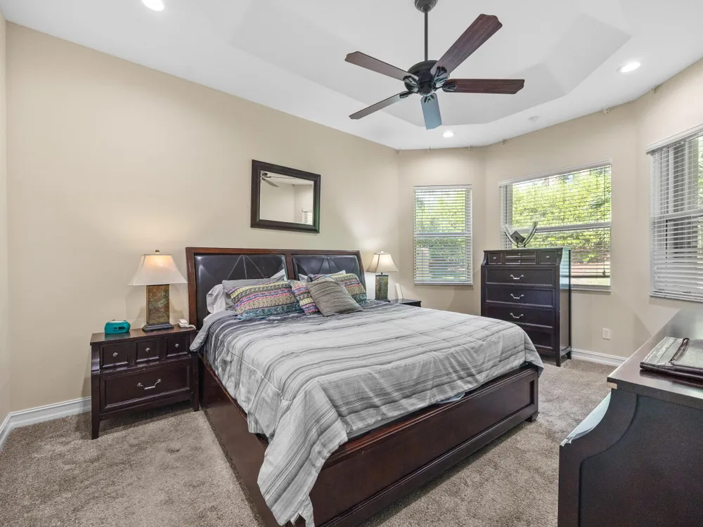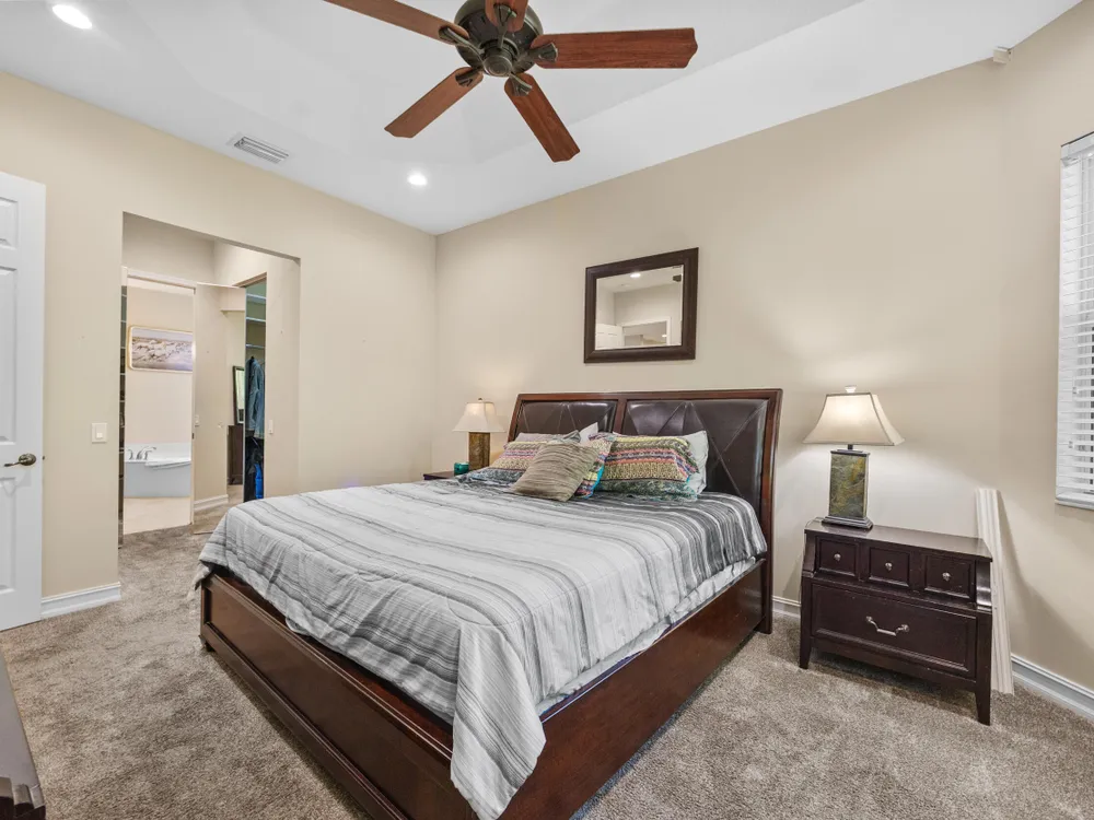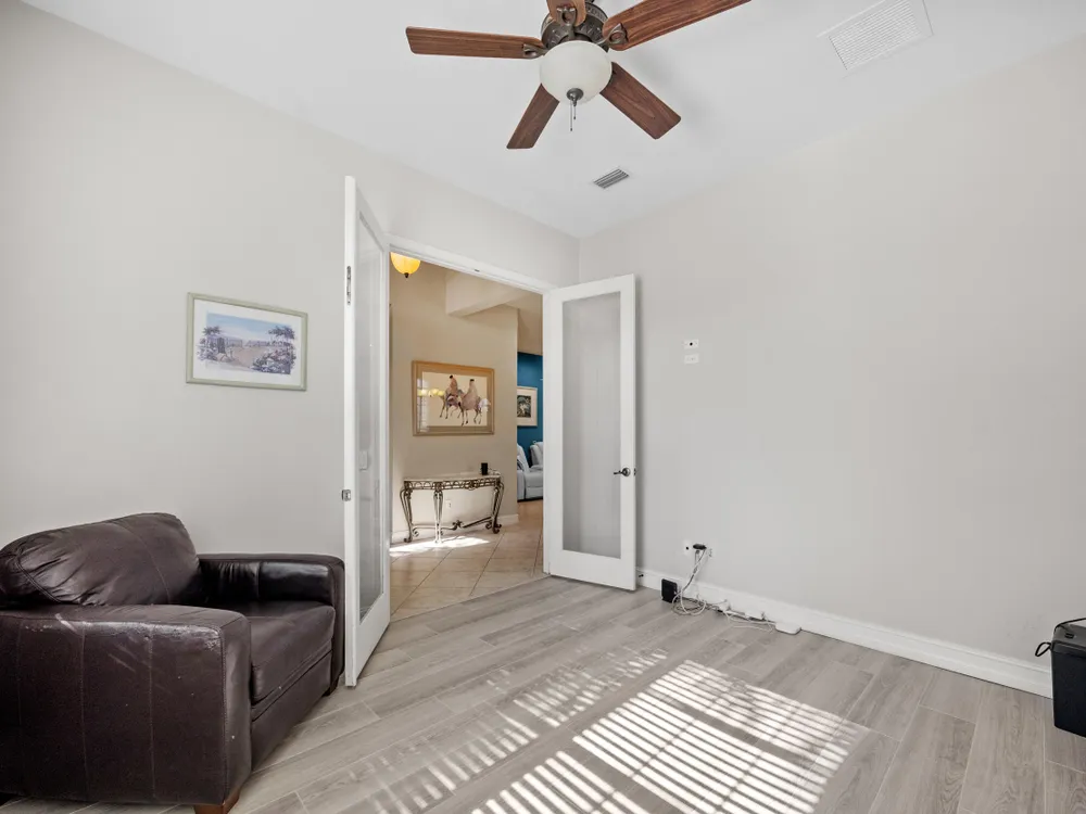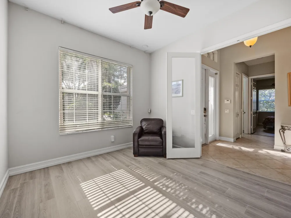 - Entry Level Living Area, French Door(s)/Atrium Door(s), Split Bedrooms, Walk-In Closet(s), Home Office, Great Room, Eat-in Kitchen, Separate/Formal Dining Room, Snack Bar, Blinds, Dual Sinks, Primary Downstairs, Separate Shower, Bathtub, Storm Shutters