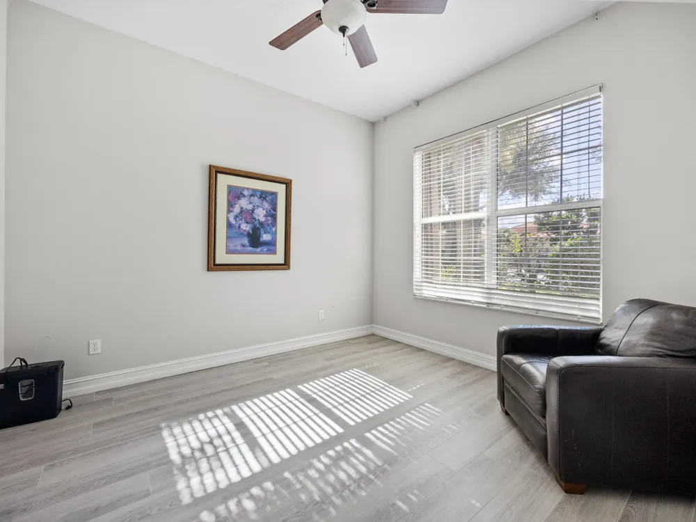 Live the lifestyle you've been dreaming of in this light-filled, impeccably maintained 3-bedroom (currently set up as 2 bedrooms + a den), 2-bath Isabella model in the sought-after 55+ community of Valencia Pointe!Featuring an open, airy layout with spacious living areas, the kitchen includes granite countertops, flat‑panel cabinetry, stainless steel appliances, pull‑out drawers, and a built-in pantry--perfect for the home chef.The owner's suite offers a luxurious retreat with tray ceilings, a sitting area, dual walk‑in closets, and a bathroom with Roman tub and separate shower. Accordion hurricane shutters throughout ensure peace of mind, and the covered, screened lanai is a perfect spot to enjoy year-round tranquility.
