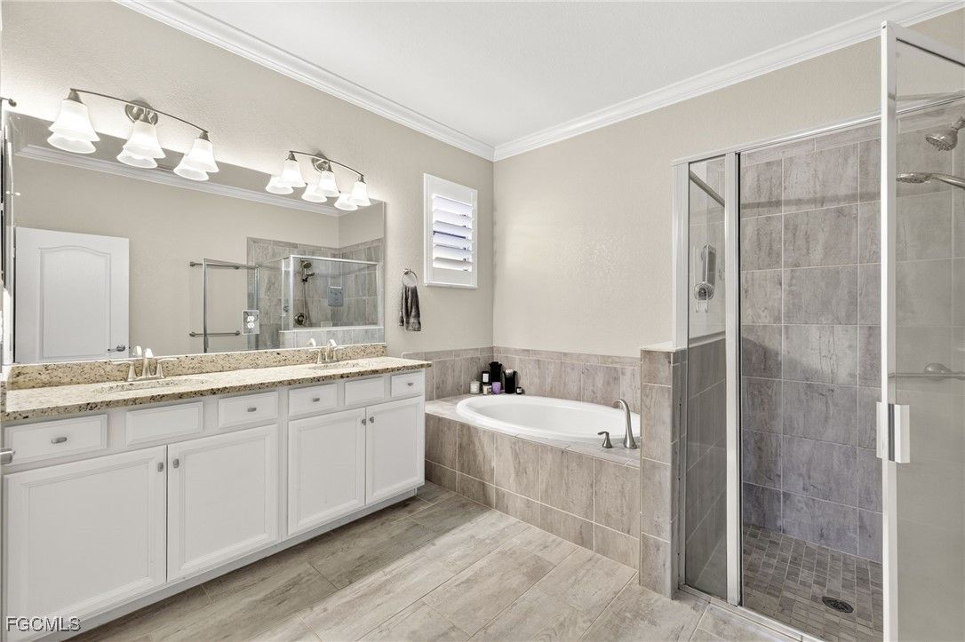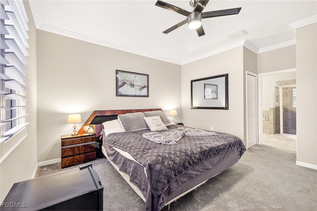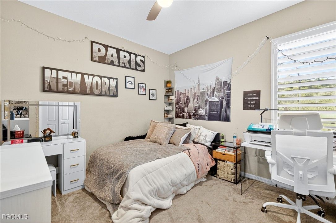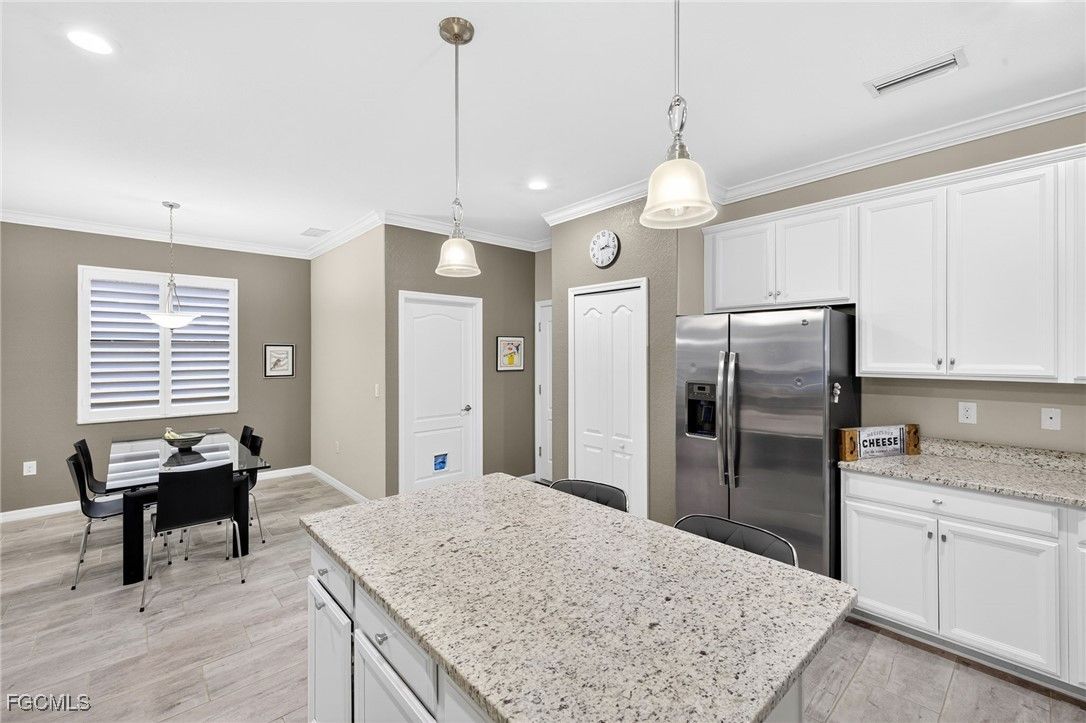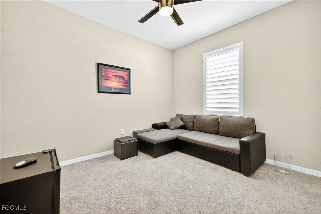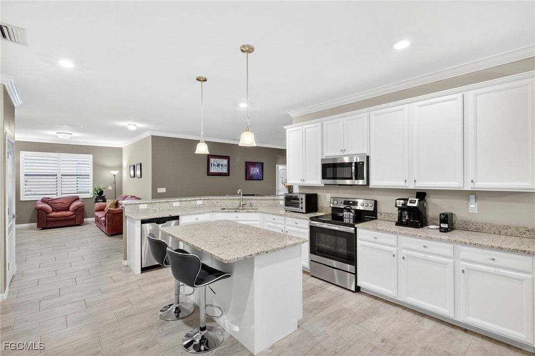 Live the Resort Lifestyle in Pelican Preserve! This gorgeous updated Tivoli model offers the ultimate in Florida living with 4 bedrooms, 3 full bathrooms, a full 3-car garage, and 2,271 sq ft under air — all beautifully positioned on a premium golf and preserve view lot in one of Southwest Florida’s most sought-after 55+ communities. Inside, you’ll find a spacious, open-concept split-bedroom layout with volume ceilings, plank tile flooring, natural light, and fresh interior paint (2023). The chef’s kitchen is ideal for entertaining, featuring granite countertops, stainless steel appliances, a walk-in pantry, oversized island with breakfast bar, white cabinetry with pull-out drawers, and updated lighting. Step outside to the screened lanai showcasing a custom heated pool and spa with waterfall spillover, re-screened in 2023, plus a large under-truss sitting area for year-round relaxation or entertaining. The primary suite offers a generous walk-in closet, dual vanities, soaking tub, and walk-in shower. A separate guest suite with its own full bath is perfect for visitors or multi-generational living. Additional updates include a new water heater (2022), new carpet in bedrooms (2024), plantation shutters (2024), and enhanced landscaping. Located just minutes from I-75, RSW Airport, shopping, dining, and Spring Training stadiums (Red Sox & Twins). Pelican Preserve is a guard-gated, amenity-rich 55+ community featuring a 70,000 sq ft town center, 27-hole championship golf (optional membership), 25,000 sq ft clubhouse, indoor & outdoor pools, spa, fitness center, full-service restaurant & sports bar, theaters, pickleball, tennis, bocce, softball, dog parks, and more. Low-maintenance luxury in a premier Fort Myers location — this home is move-in ready and a must-see!