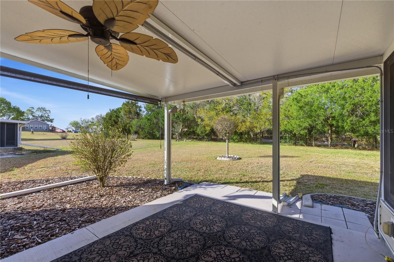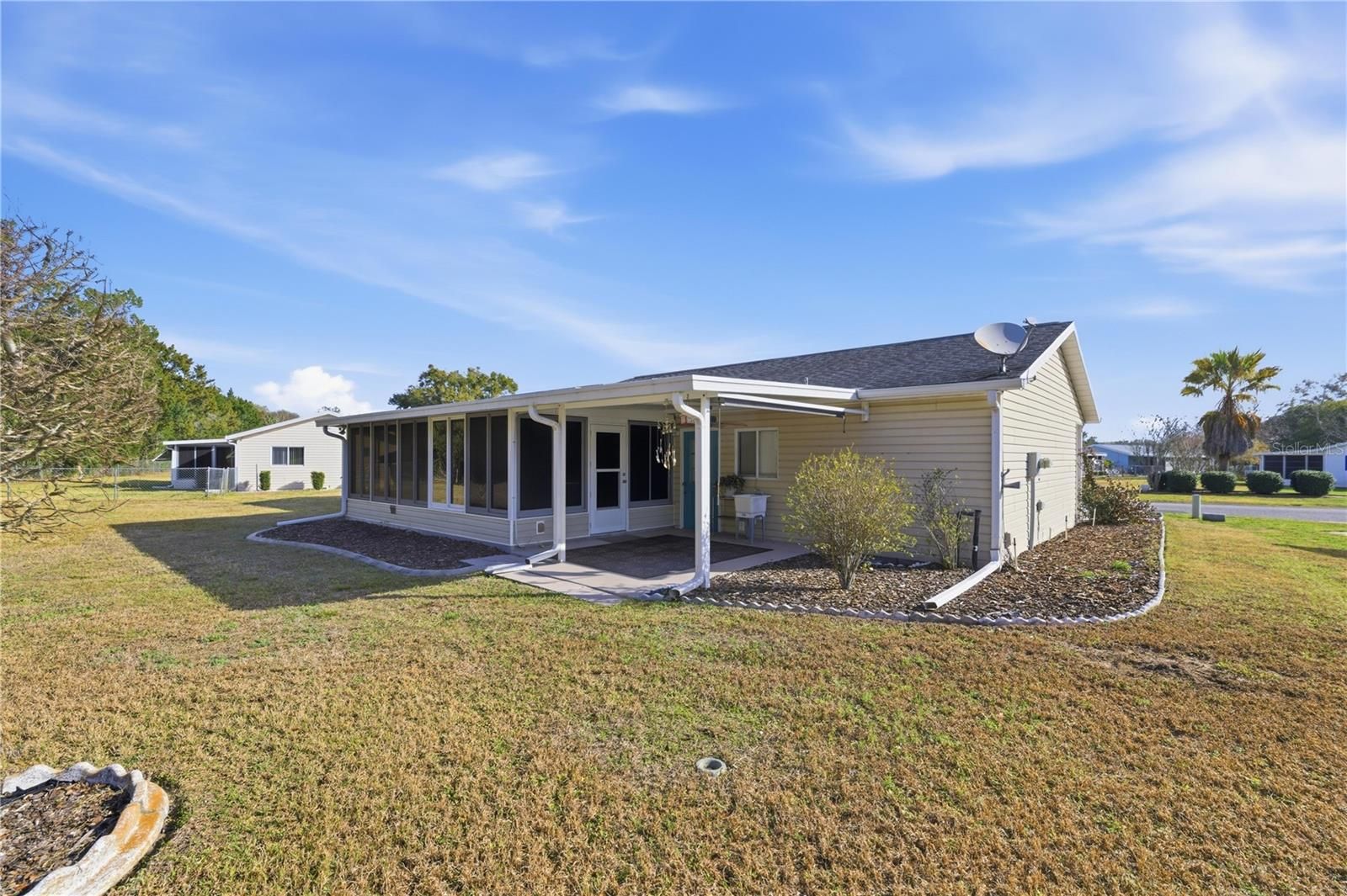 Welcome home to Central Florida living in the heart of Summerfield! Located in the desirable 55+ community of Spruce Creek South, this “cute as a button” Pecan model offers comfort, privacy, and access to an exceptional lifestyle. With no rear neighbors, the generous backyard backs up to a nature walk, bike trail, and golf-cart path—perfect for peaceful outdoor enjoyment. You can enjoy sitting in your Florida room and relaxing while enjoying the peaceful atmosphere and nature... Step inside to an inviting living/dining combination filled with natural light. The kitchen features quartz countertops, a newer tile backsplash, and a solar tube that enhances daytime brightness. Through the sliding glass doors, you’ll find a spacious Florida room/lanai with two ceiling fans and a portable A/C unit for added comfort. The open patio with roof cover includes a privacy shade and ceiling fan—ideal for relaxing outdoors. The primary bedroom offers a large walk-in closet and elegant chandelier lighting. The en-suite bath includes abundant cabinetry and a walk-in shower. For guest convenience, the second bedroom is located across the hall from the guest bath. Flooring throughout consists of laminate and ceramic tile—no carpet. Additional highlights: Covered front porch to have your morning brew or evening tea. Covered rear patio with ceiling fan and utility sink 2-car attached garage with laundry area Community Features: Spruce Creek South is a gated community with 24-hour guard service and golf-cart access across Hwy 441 to banks, doctors, shopping, restaurants, Walmart, and more. The residential gate leads to a nearby plaza with drugstores, urgent care, restaurants, spa services, and a newer Planet Fitness. Residents enjoy: 18-hole golf course and The Links Restaurant Heated pool & hot tub Separate men’s and women’s saunas with showers Fitness center Billiards room, library, and card rooms Event center with clubs, dances, live music, Zumba, and exercise classes Pickleball, tennis, and bocce ball courts Men’s and women’s softball teams with a professionally maintained field Scenic wooded areas for golf-cart rides and dog walking Just minutes from The Villages town squares, you can also enjoy nightly live entertainment (weather permitting). This is a deed-restricted community (not an HOA) with a required monthly maintenance/amenities fee. No CDD and no bond. Schedule your private showing today or request a virtual tour and start living the Florida lifestyle
