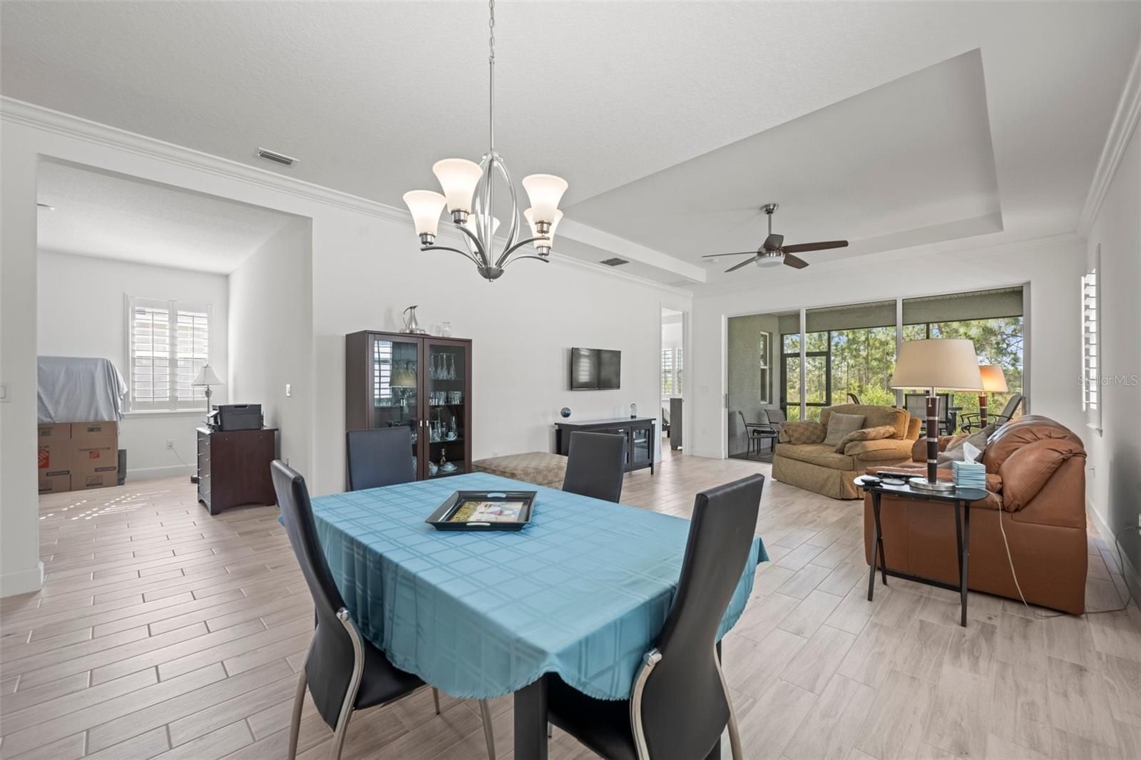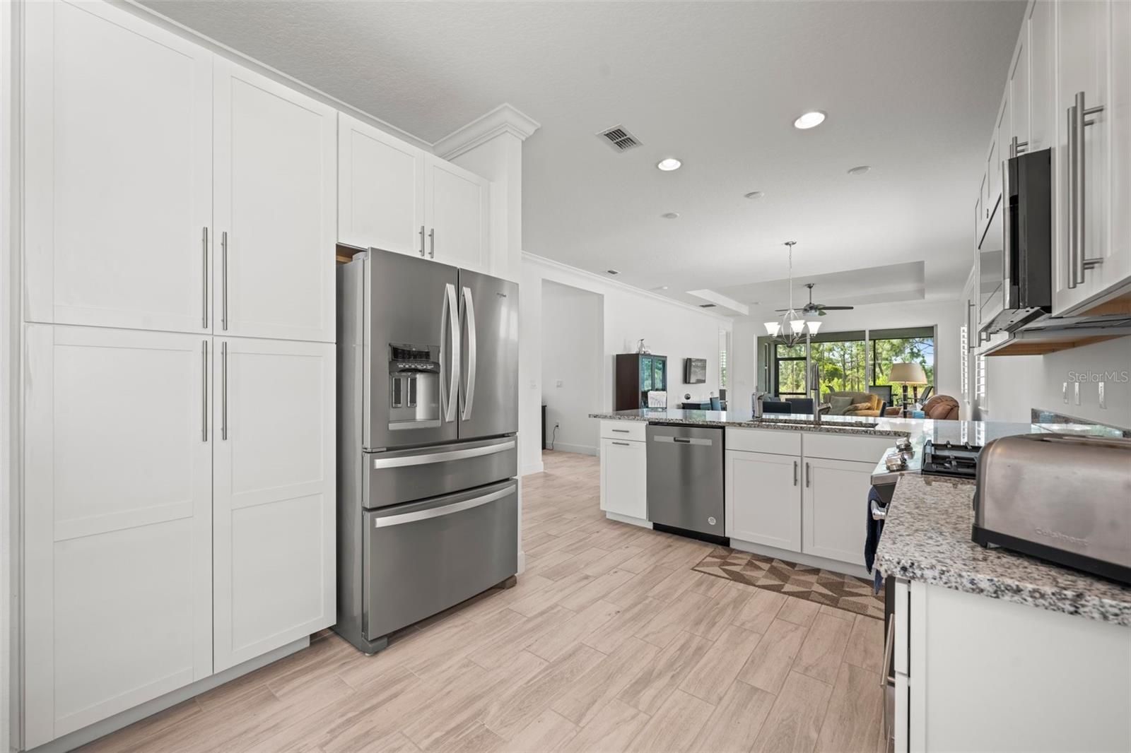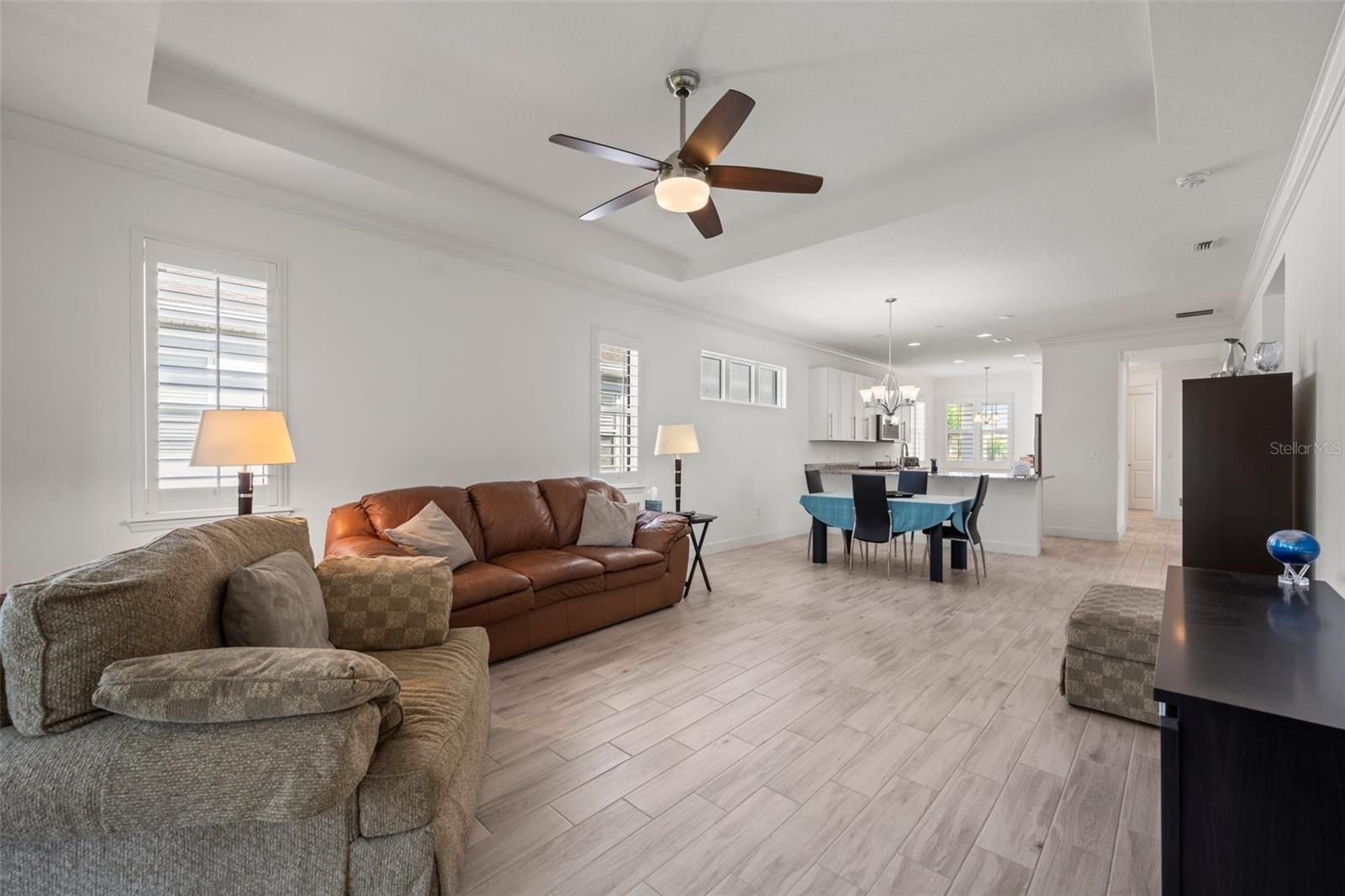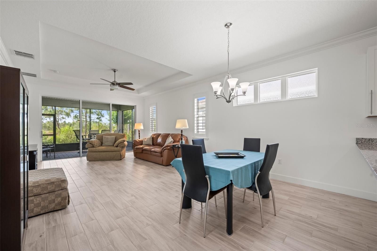 Welcome to your dream home in the beautiful Victoria Gardens/Cresswind Community. This 1651 sqft home built in 2019 offers 2 bedrooms and 2 baths, plus and office/den base on the very popular Jasmine home floorplan. That floorplan offers a large open concept great room and dining area as well as a very spacious and open, nicely appointed kitchen with its own separate eat in space. The kitchen is complete with granite counters and 42" cabinets, pendant lighting, breakfast bar, tile backsplash, SS appliances and pantry. All appliances stay including the washer and dryer. The bedrooms offer a split plan for more privacy. The Kingsized owners suite is nicely done, with 2 walk-in closets, a coffered ceiling and a luxury en suite bathroom features beautiful granite counter tops and cabinets, a walk-in shower and tub and a private water closet. There is luxury ceramic tile imitation wood plank flooring throughout the home, plantation shutters, double pane windows, ceiling fans, crowned molding in the great room, dining area and kitchen. The screened lanai overlooks the beautiful nature preserve giving you total privacy in your backyard knowing that no one will be able to build behind your very special lot. Enjoy this 55+ community with all of its outstanding amenities with your own private clubhouse and restaurant, tennis and pickleball courts, community pool, fitness center and much more. You just can't beat this location so close to the beautiful community of Deland with its restaurants and shopping and Stetson University and near by medical facilities and still just a short drive to the east coast beaches.