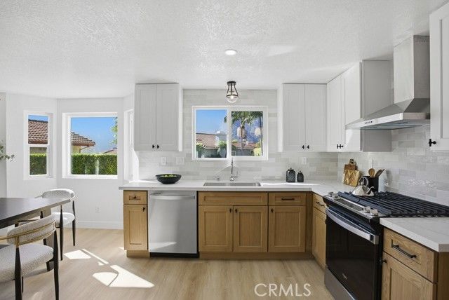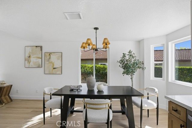 A beautifully renovated single-level home located in the highly desirable 55+ gated community of Camarillo Springs. This thoughtfully redesigned residence features brand-new flooring throughout, custom-tiled bathrooms, a new HVAC system and condenser, and a fully updated kitchen with quartz countertops, modern cabinetry, and new stainless-steel appliances including a range, microwave, hood, and dishwasher. The open-concept layout showcases vaulted ceilings, recessed lighting, a classic brick fireplace, modern LVP flooring, and newer dual-pane sliders and windows. The spacious primary suite offers ample room and natural light, direct patio access, vaulted ceilings, and a generous walk-in closet. The ensuite bathroom includes dual sinks, updated fixtures, and a tiled walk-in shower. The secondary bedroom features ample storage and direct access to a remodeled Jack-and-Jill–style bathroom. Outdoor living includes a low-maintenance backyard with mountain views, new walking pavers, and a small bocce ball area ideal for relaxation or entertainment. Additional highlights include an indoor laundry room with storage and a direct-access garage with custom cabinetry, a workbench, epoxy flooring, and a contemporary garage door. The property also features a full-size driveway accommodating two cars side-by-side—a rare advantage in this community where many lots offer limited driveway space. Camarillo Springs provides resort-style amenities including a clubhouse, pool, spa, fitness areas, walking trails, seasonal creek, and proximity to the Camarillo Springs Golf Course. Conveniently located near the 101 Freeway with easy access to shopping, dining, and recreation.