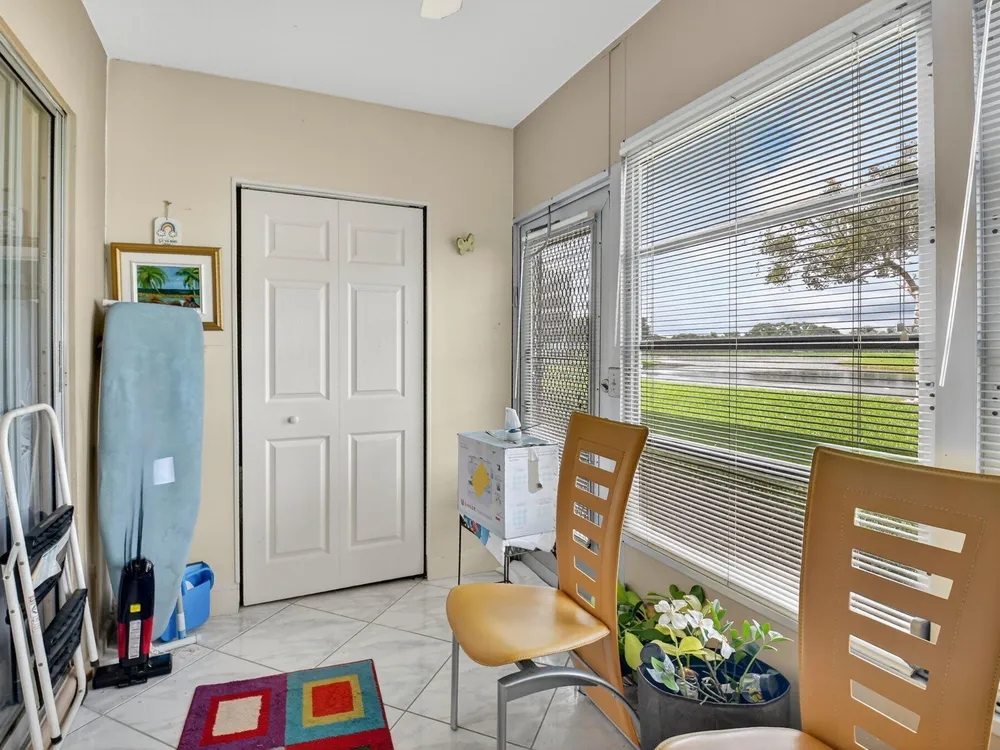 FIRST FLOOR LARGEST one bedroom model! Beautifully, updated kitchen with all new stainless-steel appliances, white shaker cabinetry, and quartz countertops 2022. Spacious primary suite, offering space for an in home office! Additional space in your private, cozy lanai for relaxation with a beautiful lake waterview. Updated primary bathroom with added cabinetry. Extra storage closets, both in the home and near the laundry room. Century Village offers a resort-style experience. Residents enjoy an impressive array of amenities, including a sprawling 125,000-square-foot clubhouse, a state-of-the-art fitness center, tennis and pickleball courts, shuffleboard, bocce ball, and a putting green. Many pools including, a heated indoor and outdoor pool.
