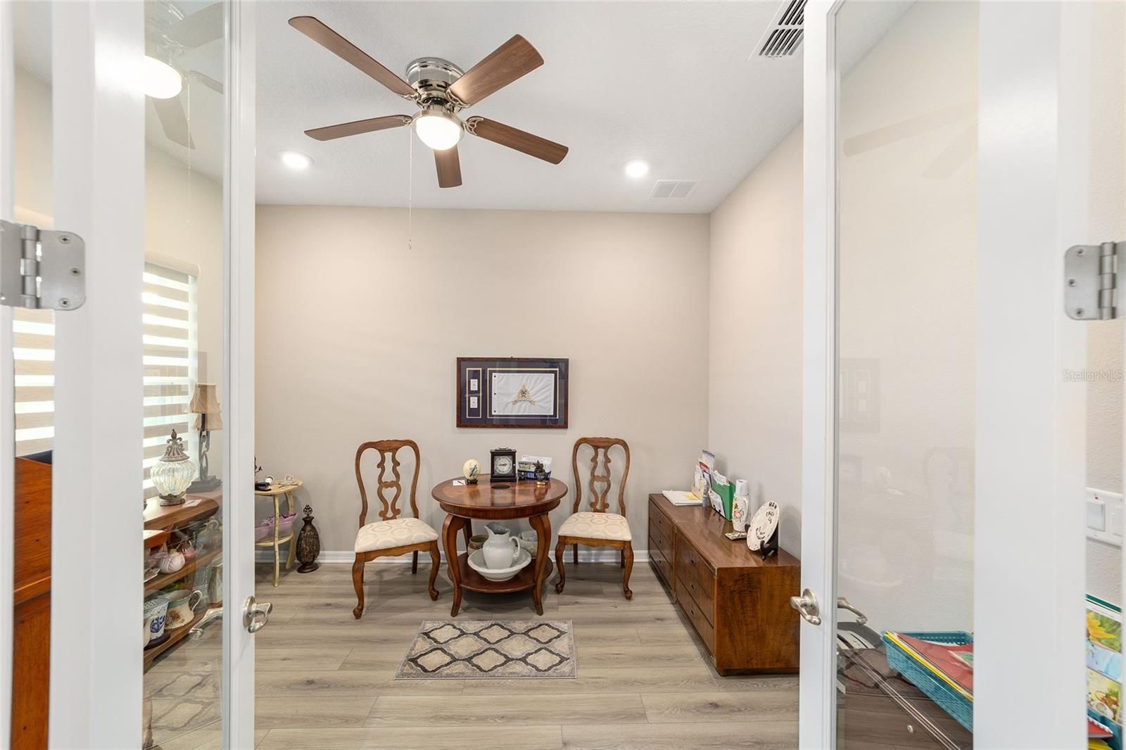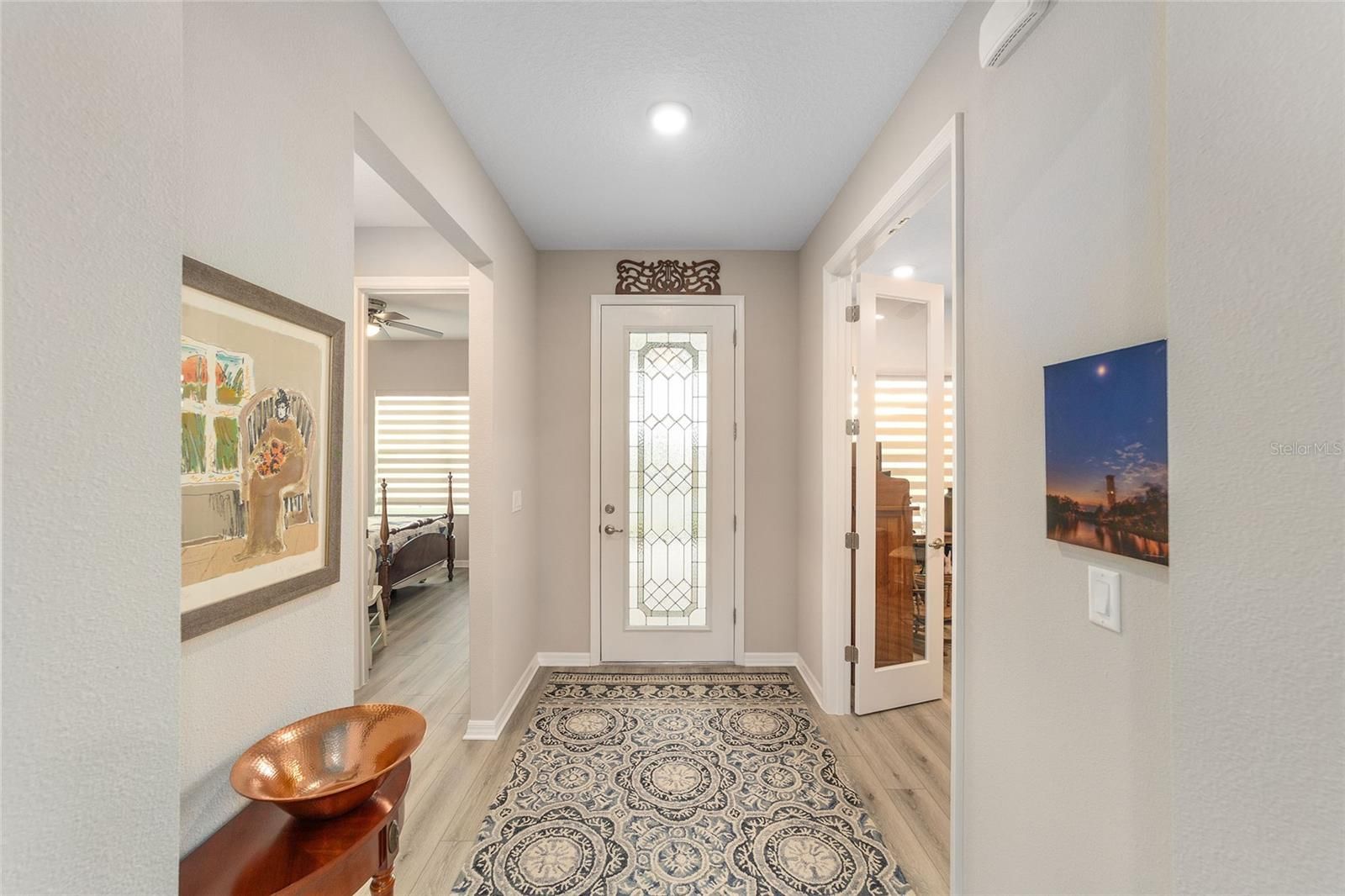 Welcome to 10691 SW 99th Pl, Ocala, FL 34481—a stunning 2024 Ariana model that is only 2 years young and perfectly positioned on a premium 0.22-acre corner lot in Longleaf Ridge VI within the highly sought-after On Top of the World community. Offering 2,019 sq ft of finished living space and 3,089 total sq ft under roof, this move-in ready home features a 2-car garage plus dedicated golf cart space, along with a beautiful paver stone driveway, walkway, and front porch. Enjoy added privacy with no home directly behind, plus tasteful landscaping and community palm trees that enhance the curb appeal. The backyard is already set up for outdoor enjoyment with an HOA-approved grilling station and pad, and an extended covered and screened lanai for year-round relaxation. Inside, you’ll love the bright, open layout featuring 2 bedrooms, 2 full bathrooms, a welcoming foyer, great room, flex room with French glass doors, spacious laundry room, and abundant storage including walk-in closets and a large walk-in pantry. Luxury Vinyl Plank flooring runs throughout, complemented by 9+ foot ceilings, tray ceilings with crown molding, custom luxury window shades, and thoughtful upgrades at every turn. The upgraded kitchen is a true highlight with staggered soft-close cabinetry, quartz countertops, tile backsplash, under-cabinet lighting, stainless steel appliances, and natural gas cooking—perfect for both everyday living and entertaining. Just inside the garage, you’ll appreciate the convenient drop zone area with closet, adding functionality and organization. The spacious primary suite is tucked away in the rear of the home for maximum privacy and includes a beautiful en-suite bath with dual sinks, quartz countertops, a walk-in shower with bench, private water closet, and a large walk-in closet with upgraded closet organizers. A comfortable guest bedroom, full guest bath with quartz countertops and a tub/shower combo with ceramic tile to the ceiling, plus six ceiling fans throughout, complete the interior. Step outside to the extended screened lanai—your perfect outdoor retreat—featuring a large flatscreen TV that conveys, with easy access to the backyard and grilling area for effortless indoor/outdoor living. Best of all, the HOA covers outdoor home maintenance (i.e., mowing, trimming, mulching, exterior painting every seven years, minor roof repairs, internet service, garbage, recycling and other amenities). Residents enjoy an unmatched amenity package through On Top of the World, including swimming, tennis, softball, golf, an RC park, and so much more. Conveniently located near the World Equestrian Center (WEC), plus shopping, dining, trails, hospitals, and medical care—this is Florida living at its finest. Don’t miss this exceptional opportunity to own a beautifully upgraded home on a premium lot in one of Ocala’s most desirable communities. Scheduled your showing today!!