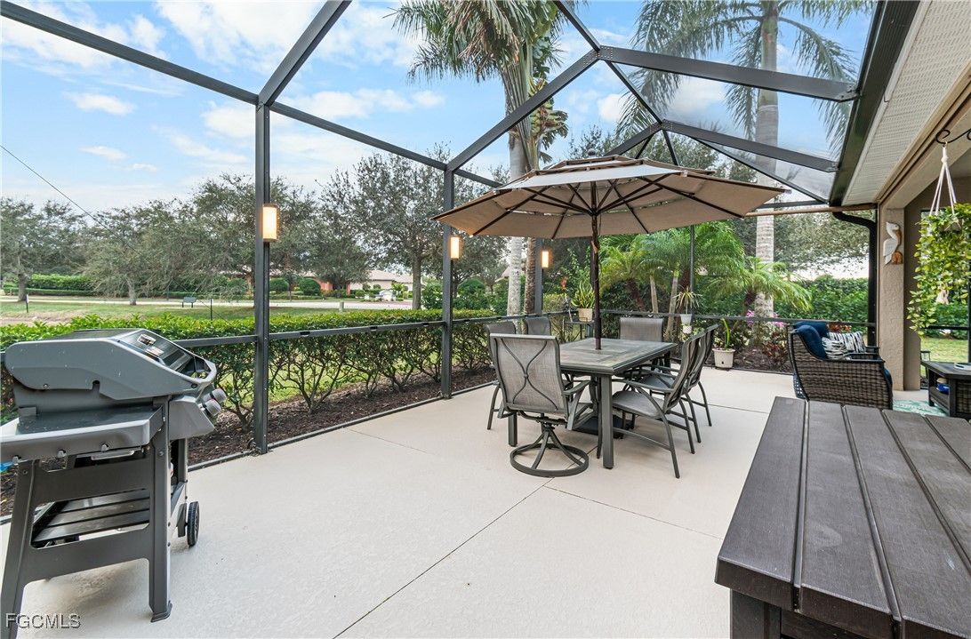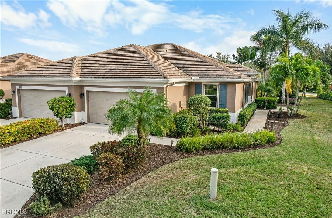 Welcome to effortless Florida living in Pelican Preserve, consistently ranked among the top 55+ communities in the U.S. This beautifully maintained attached villa offers a thoughtfully designed layout with 2 bedrooms and 2 baths, perfect for comfort and convenience. The home is offered furnished, allowing for an easy move-in or seamless seasonal living. The primary suite features custom built-in dressers and storage, along with a spacious walk-in closet, maximizing both style and functionality. An extended screened lanai provides a tranquil setting to enjoy lovely water views, ideal for morning coffee or relaxing evenings. Additional highlights include garage storage lift racks for enhanced organization and peace of mind. Conveniently located near Southwest Florida International Airport, as well as premier shopping, dining, and entertainment, this villa offers the perfect blend of resort-style amenities and everyday accessibility. Experience the best of low maintenance, active adult living in one of Southwest Florida’s most desirable communities.