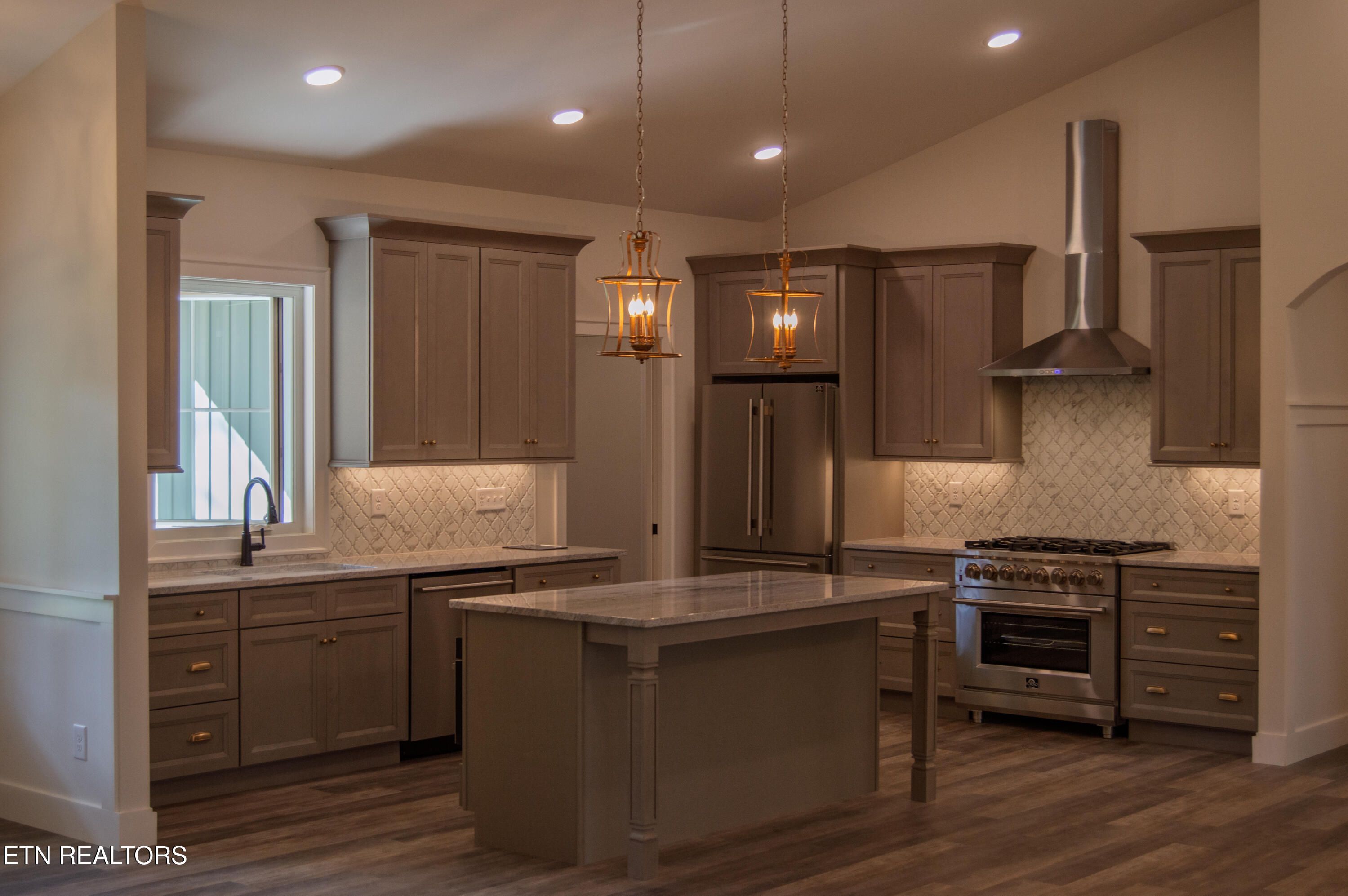 Brand-New Custom Home in Fairfield Glade TN! 3 bed/2.5 baths; New Construction 2025. Just completed and move-in ready! The Brighton Lane property sets on the Cumberland Plateau in the premier Fairfield Glade resort community, steps from St. George Lake and Spring Lake. Nestled on one of the larger lots with professional landscaping, fresh sod, pea gravel(aggregate) driveway, and a striking stone retaining wall, this home delivers mountain tranquility with modern elegance. Interior highlights: gourmet chef's kitchen: 36' natural gas chef-style range, microwave drawer, quartz tops, soft- close cabinetry and pantry with custom built-ins. Luxury primary suite: zero-entry frameless glass shower, dual vanities, and oversized walk in closet with built-ins. Man Cave/ Flex room: butcher block tops, wet bar, wine cooler, coffered wood ceiling, brick walls with direct access to patio and additional covered patio/outdoor media area. Perfect for hobbies or entertaining. Premium systems: Tankless water heater, fully encapsulated crawl space, with a whole home 22K Generac generator. Exterior and Garage: Insulated, steel faux oak grain style garage doors 8x8 and 16 x8. Covered rear 12x28.5 with tongue and groove ceiling overlooking a park like back yard. Fairfield Glade resort Lifestyle: 5 Championship Golf Courses(Stonehenge minutes away) 11Lakes for kayaking/fishing/ bird watching(non-motorized) Resort Amenities: Pools, tennis/pickelball, fitness center, marinas, trails, 24/7 security Location: 10 minutes to I-40, 1 hour to Knoxville/Chattanooga, 1 1/2 hours to Nashville. *All information deemed reliable but not guaranteed. Buyer to verify measurements, HOA rules, and lake access.