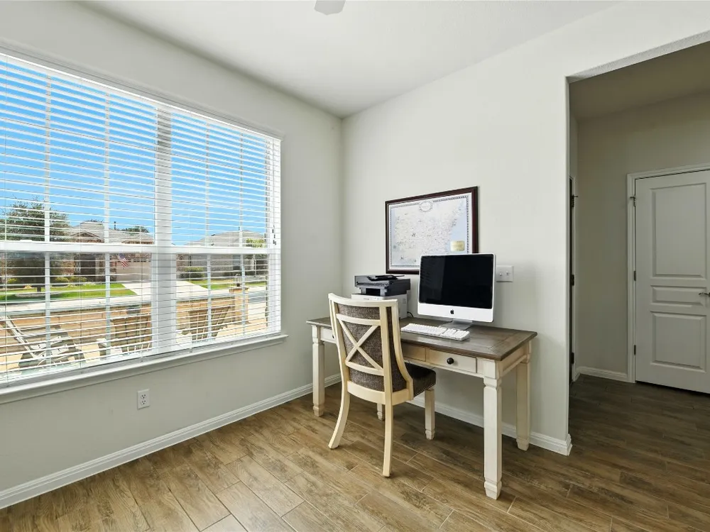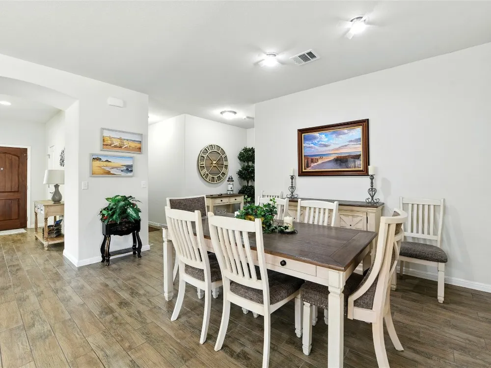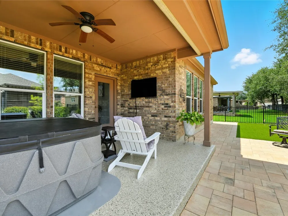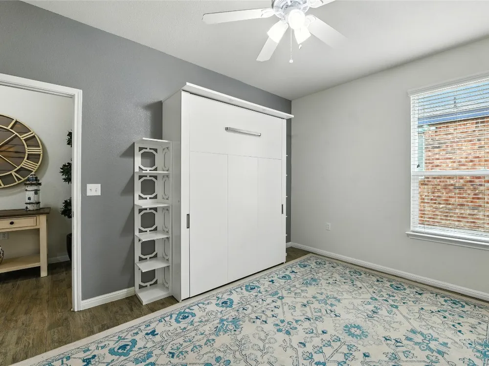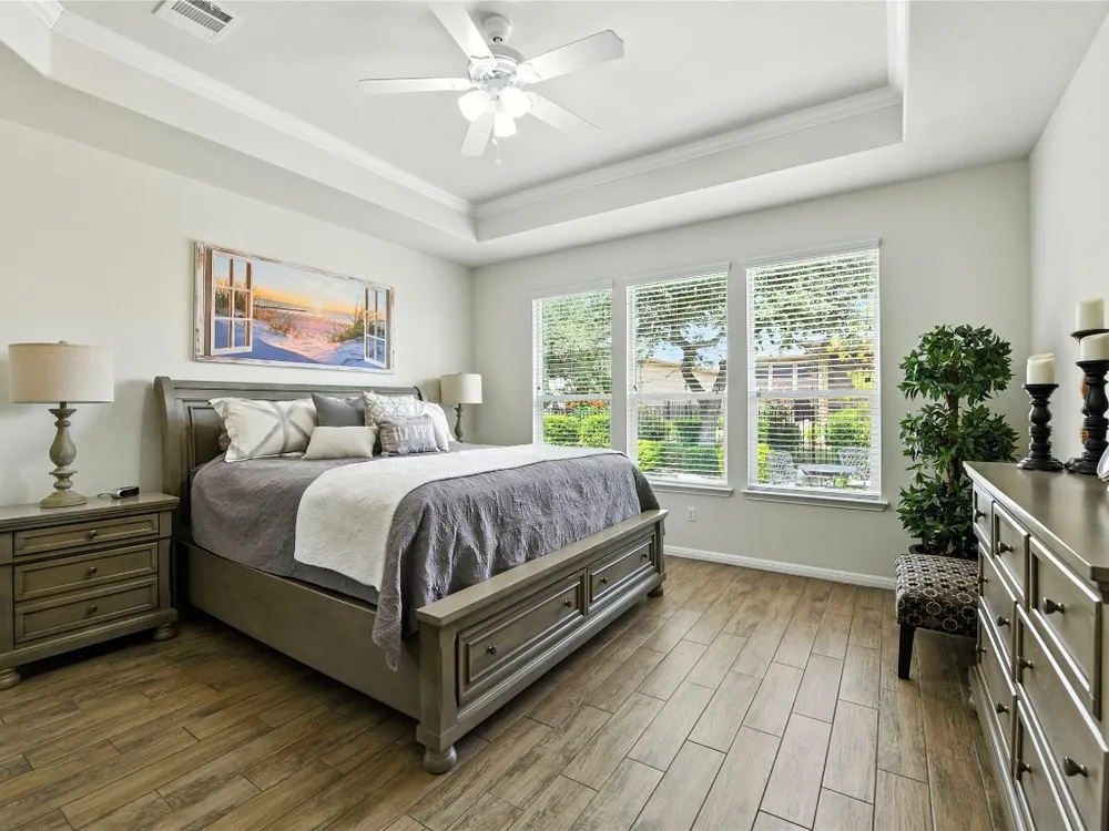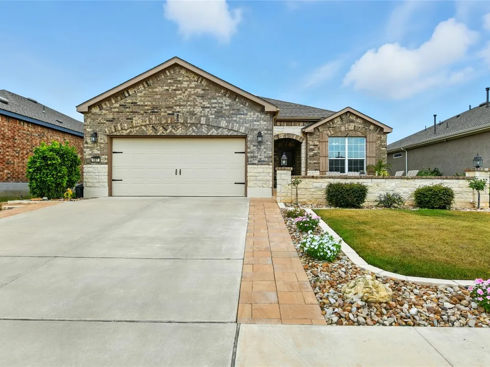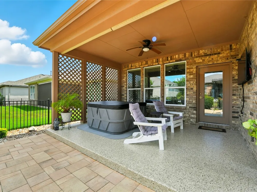 Discover the allure of this exceptional home nestled in Sun City—a stunning Martin Ray Model that exemplifies luxury living and is within walking distance to The Retreat Amenity center. *Take advantage of the opportunity to buy this home fully furnished (minus the sellers personal items), ask the listing agent for details.* Why wait to build when this gorgeous home is ready to embrace you. Positioned facing south, it bathes in natural sunlight, is surrounded by exquisite stonework adding to its curb appeal while offering peaceful living. You will be welcomed by the charming courtyard to enjoy with friends and neighbors. Step inside to discover an array of elegant features that enhance its beauty and functionality. The front room is a perfect space for an office/den/craft room. The kitchen is a chef's dream, boasting a lengthy tear drop island perfect for gathering, a convenient gas cooktop for culinary adventures, and gleaming wood look tile floors that add warmth to the space. The butler pantry provides ample storage, keeping your kitchen organized and clutter-free. Entertain in style with the dining area adjacent to the kitchen and living space. The primary bedroom is spacious and offers high ceilings and windows that overlook the beautifully landscaped backyard. The primary bath adorns a large walk-in shower, dual vanities, a ceiling fan and a large walk-in closet. The secondary bedroom offers a murphy bed perfect for guests. Outside you will fall in love with perfectly manicured, minimal maintenance yard with artifical turf, a covered patio with hot tub, TV and gas stub out for your BBQ. Enjoy the stone work and walkways on either side of the home. The 2 car garage offers built-in cabinets, work bench, ceiling storage racks and a water softener along with the additional 4’ extension providing extra storage. Come and see this special home and enjoy all that Sun City has to offer!