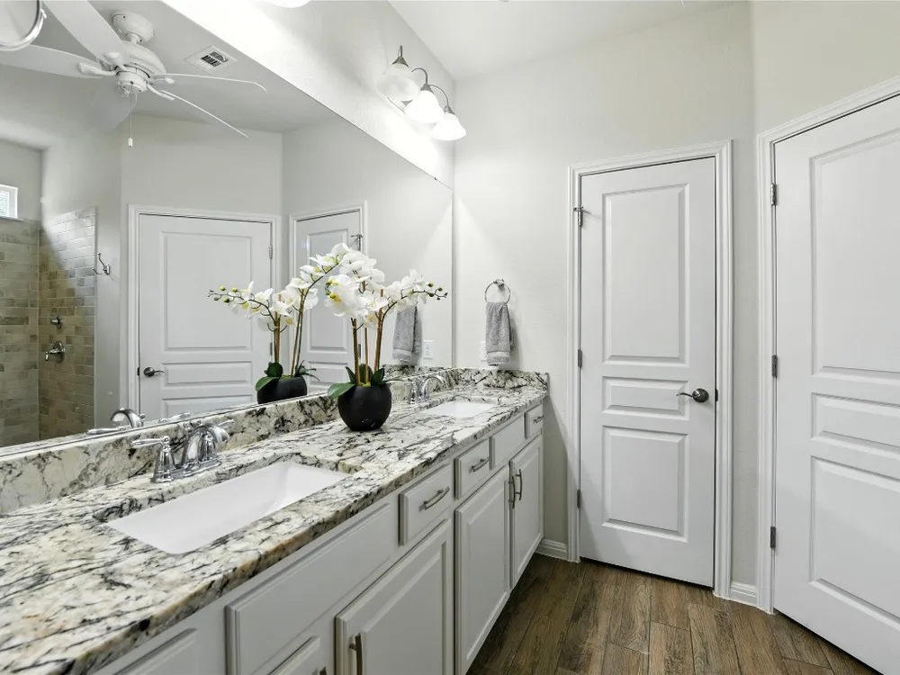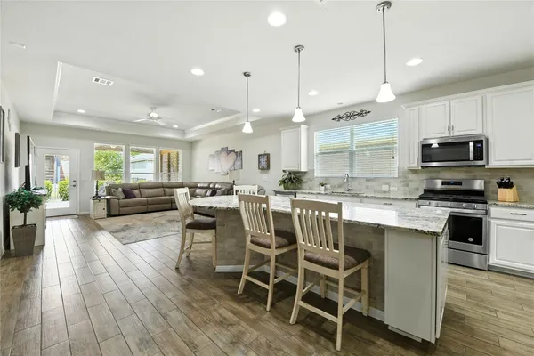 - Breakfast Bar, Granite Counters, High Ceilings, Main Level Primary, Pantry, Walk-In Closet(s)