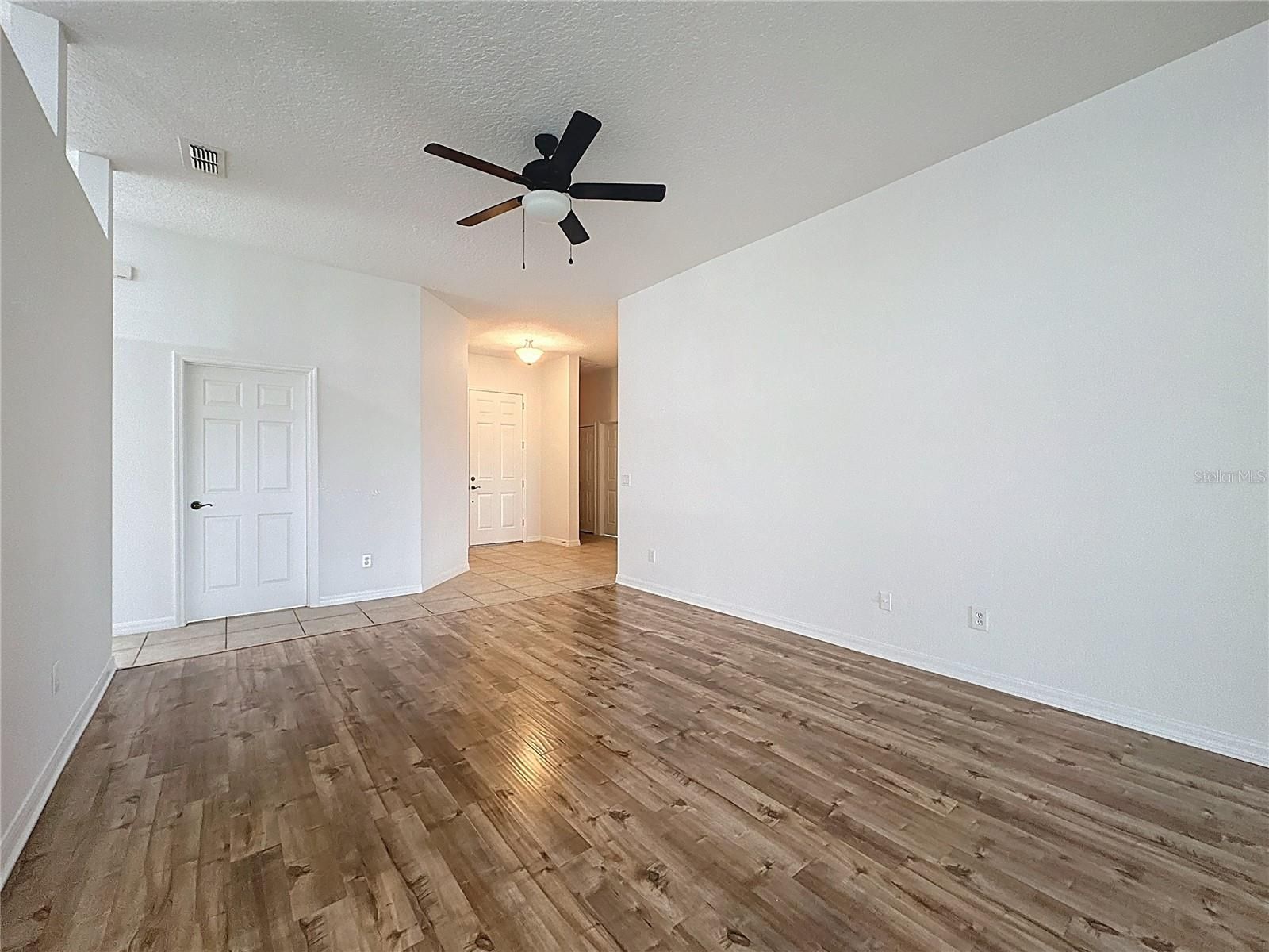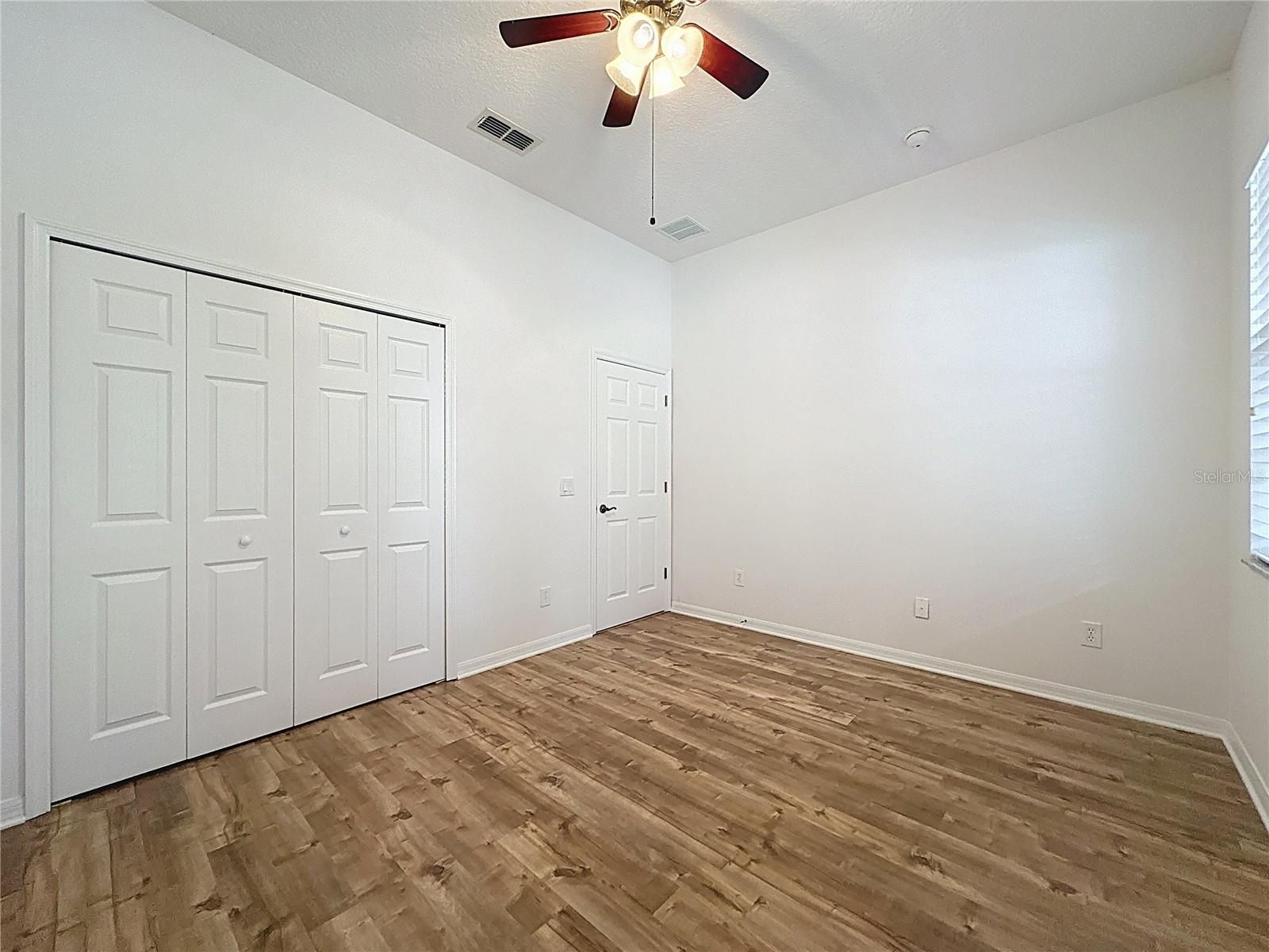 - Ceiling Fan(s), High Ceilings, Living/Dining Room, Main Level Primary, Solid-Wood Cabinets, Stone Counters, Thermostat, Walk-In Closet(s)