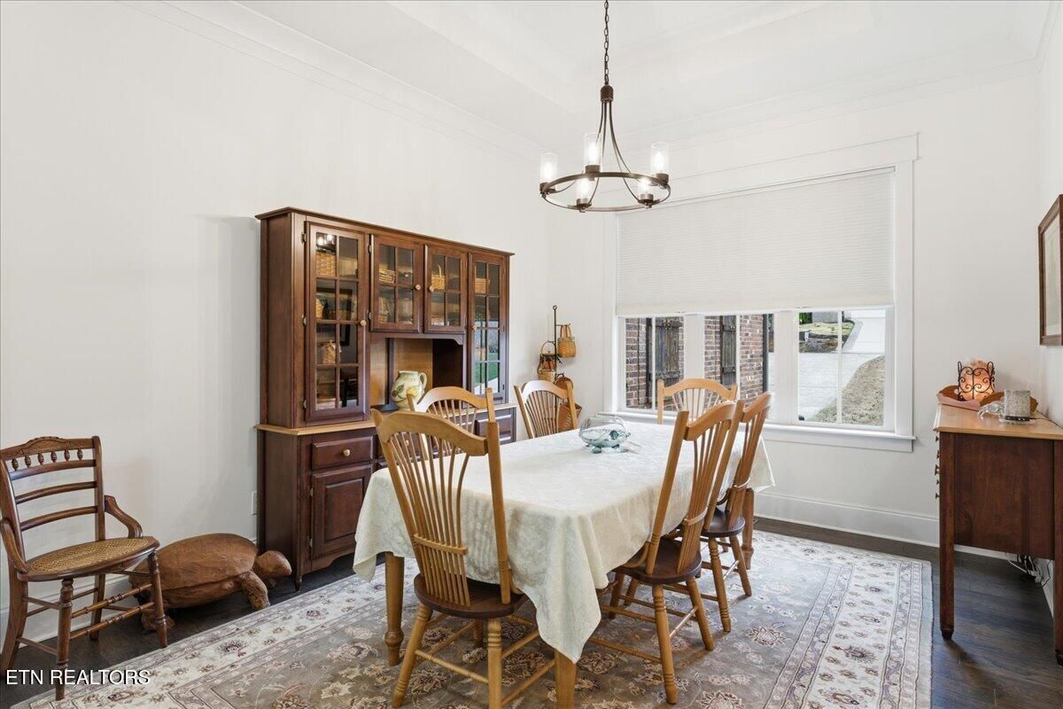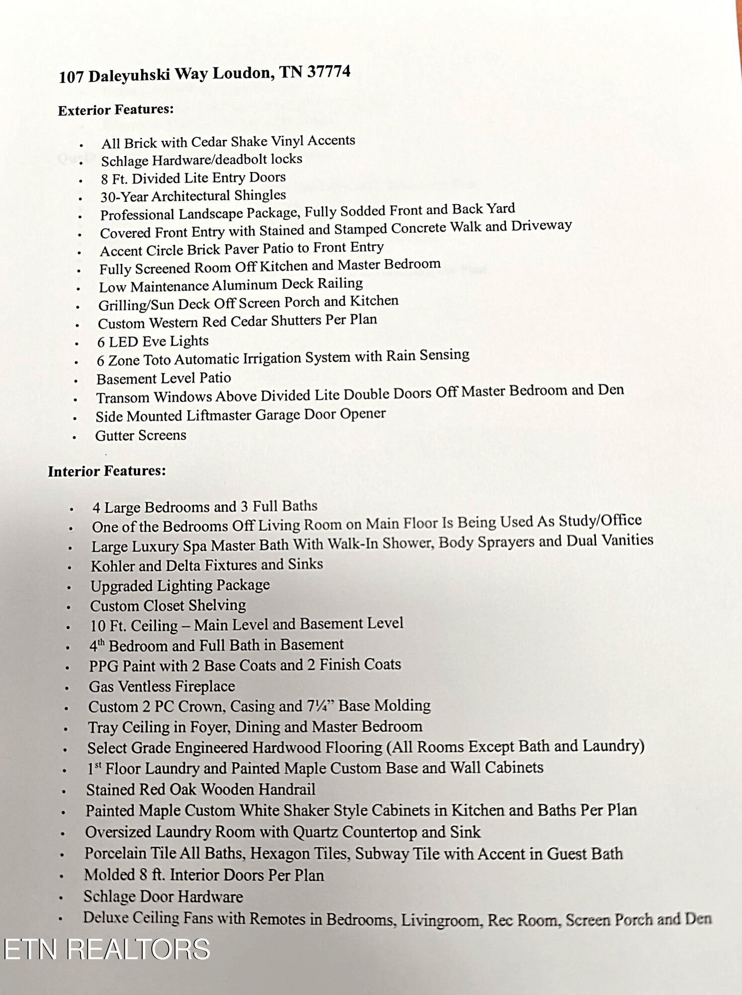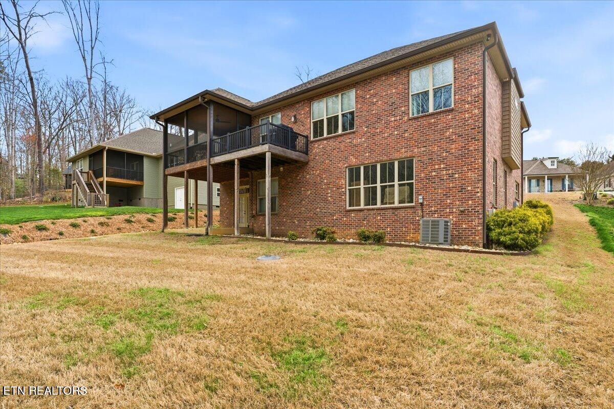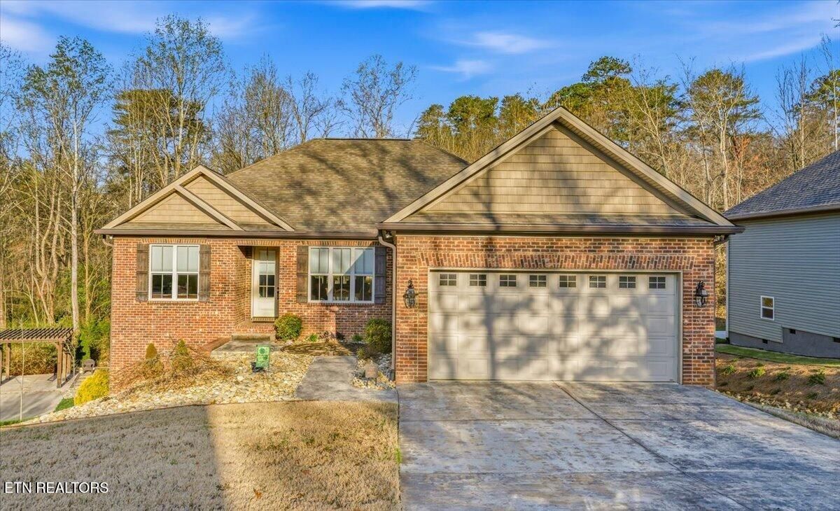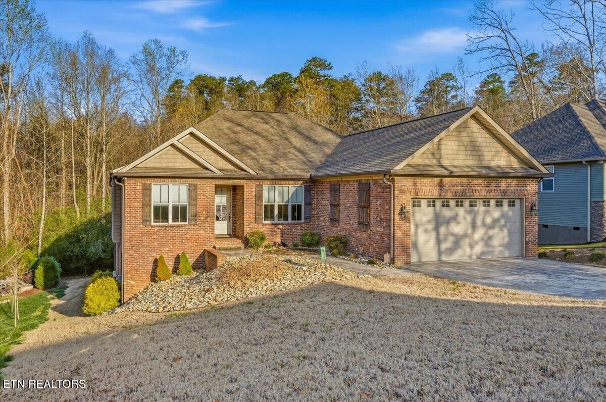 This stunning all-brick home is located in the beautiful neighborhood of Toqua Hills. It backs up to more than 5 acres of wooded common property, providing exceptional privacy and a peaceful natural setting. The main level features spacious living areas with soaring 10-foot ceilings and 8-foot doors, creating an open and airy feel throughout the home. Elegant crown molding adds a refined touch to the living spaces. The family room gas fireplace is ventless and perfect for those cool days. The screened in porch allows for a quiet space to sit and enjoy the outdoors with that morning coffee or evening cocktail. Split-bedroom floor plan offers privacy for the primary suite while keeping the main living areas perfect for entertaining and everyday living. The walkout lower level provides abundant additional living space, ideal for a recreation room, guest area, working shop or home office. The kitchen showcase white marble-look quartz countertops paired with custom white maple shaker-style cabinetry, delivering a clean, timeless design. In the luxurious primary bathroom, you'll find: - A large walk-in shower with body sprayers - Dual vanities - Custom closet shelving for optimal organization With beautiful finishes, generous living space, and unmatched privacy from the surrounding wooded acreage, this home offers comfort, elegance, and tranquility in one of the area's most sought-after neighborhoods. Notice the textured driveway which transitions to ornamental pavers as you approach the house. The large flat screen TV in the family room will remain with the house as well as all the surround sound equipment. Levolor Blinds throughout house and sun screening roll down shades on screen porch. Propane Tank is a 250 gal tank and is leased from Suburban Propane.