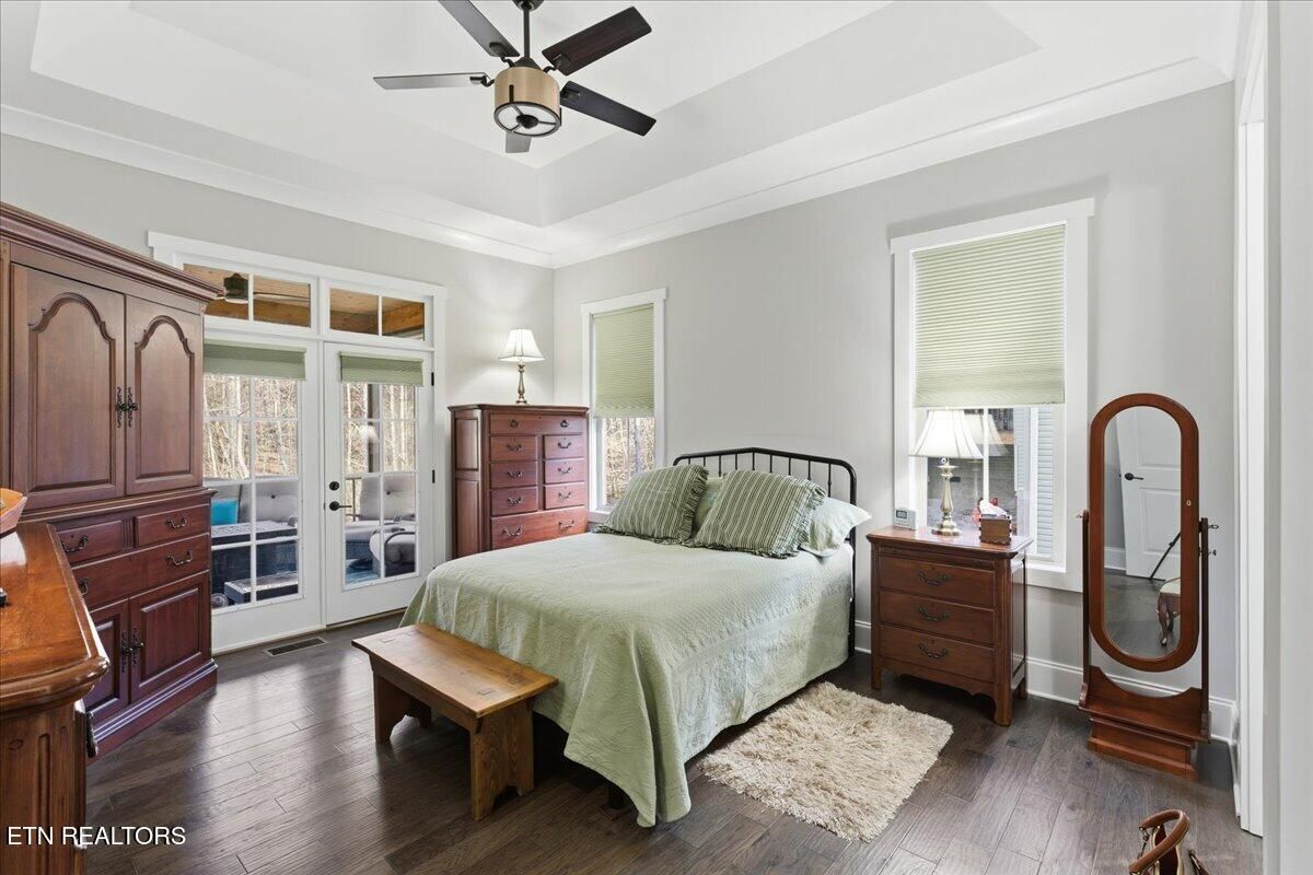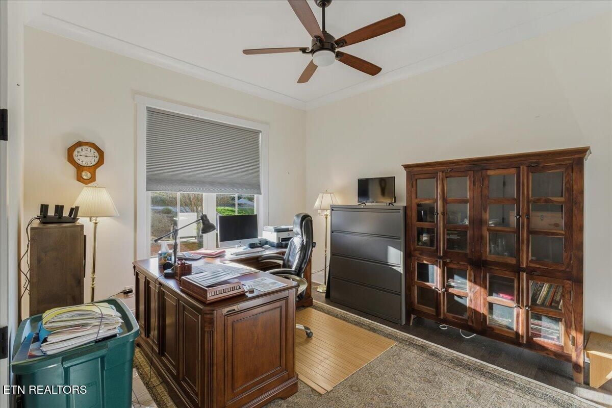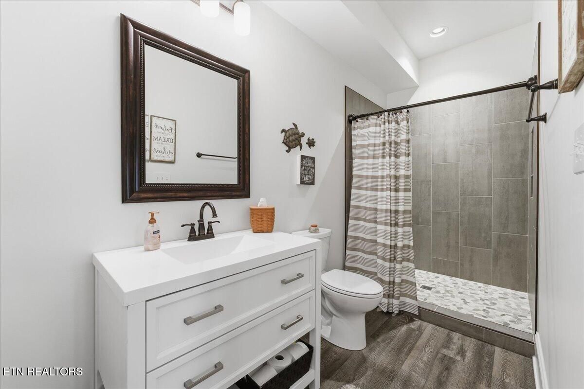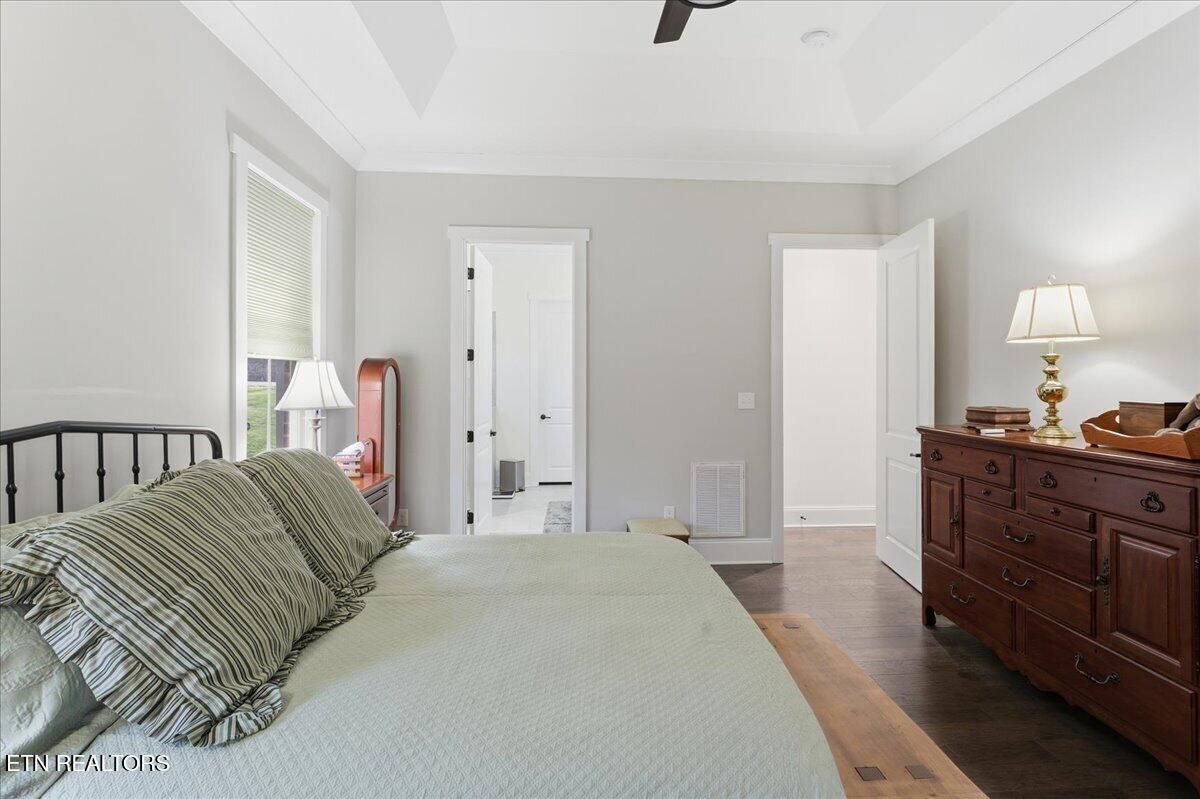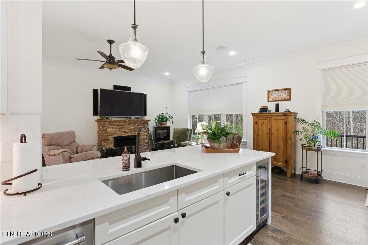This stunning all-brick home is located in the beautiful neighborhood of Toqua Hills. It backs up to more than 5 acres of wooded common property, providing exceptional privacy and a peaceful natural setting. The main level features spacious living areas with soaring 10-foot ceilings and 8-foot doors, creating an open and airy feel throughout the home. Elegant crown molding adds a refined touch to the living spaces. The family room gas fireplace is ventless and perfect for those cool days. The screened in porch allows for a quiet space to sit and enjoy the outdoors with that morning coffee or evening cocktail. Split-bedroom floor plan offers privacy for the primary suite while keeping the main living areas perfect for entertaining and everyday living. The walkout lower level provides abundant additional living space, ideal for a recreation room, guest area, working shop or home office. The kitchen showcase white marble-look quartz countertops paired with custom white maple shaker-style cabinetry, delivering a clean, timeless design. In the luxurious primary bathroom, you'll find: - A large walk-in shower with body sprayers - Dual vanities - Custom closet shelving for optimal organization With beautiful finishes, generous living space, and unmatched privacy from the surrounding wooded acreage, this home offers comfort, elegance, and tranquility in one of the area's most sought-after neighborhoods. Notice the textured driveway which transitions to ornamental pavers as you approach the house. The large flat screen TV in the family room will remain with the house as well as all the surround sound equipment. Levolor Blinds throughout house and sun screening roll down shades on screen porch. Propane Tank is a 250 gal tank and is leased from Suburban Propane.