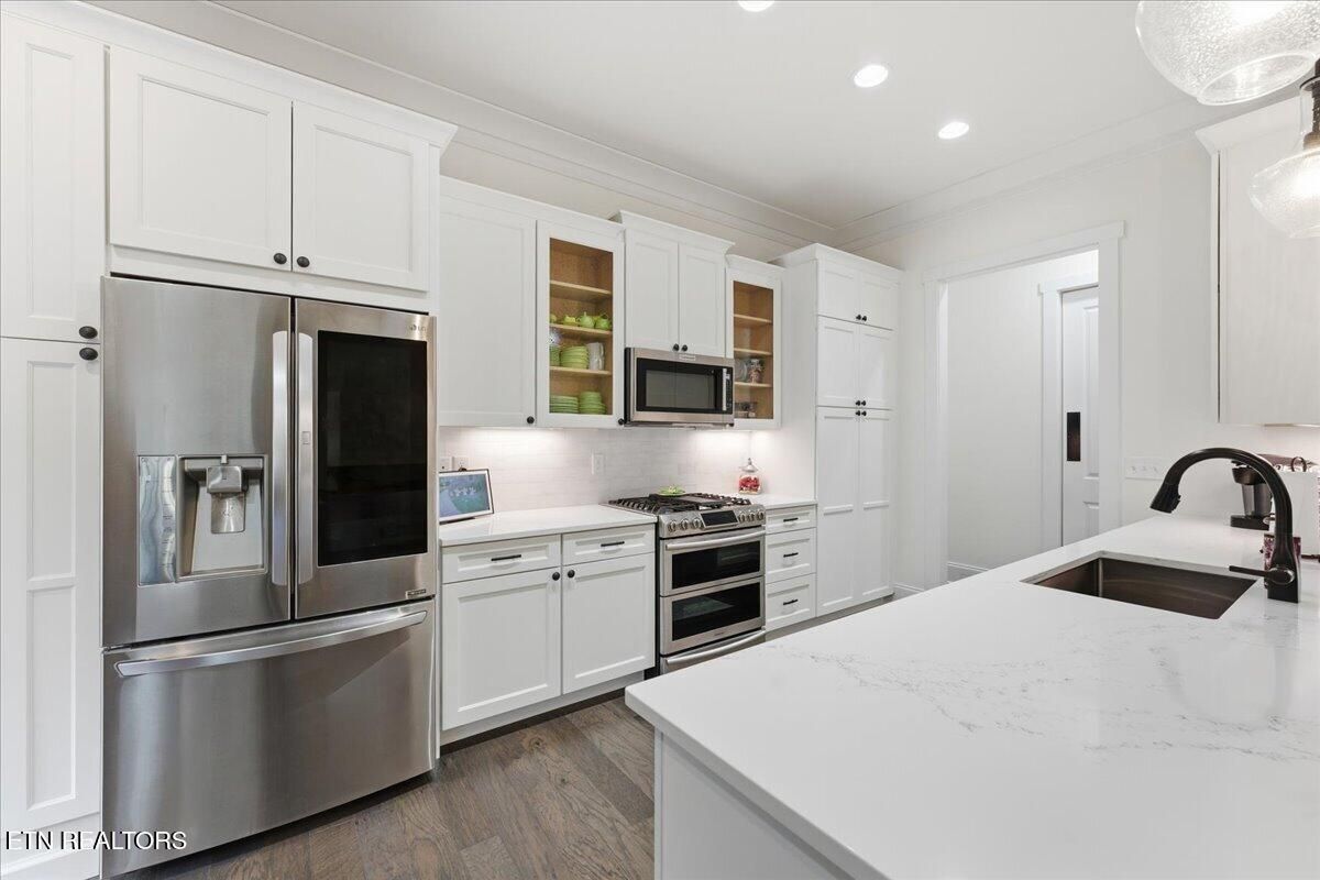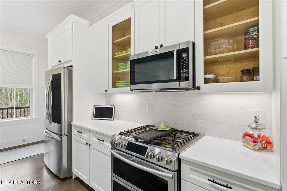 - Gas Cooktop, Dishwasher, Disposal, Microwave, Range, Refrigerator, Self Cleaning Oven