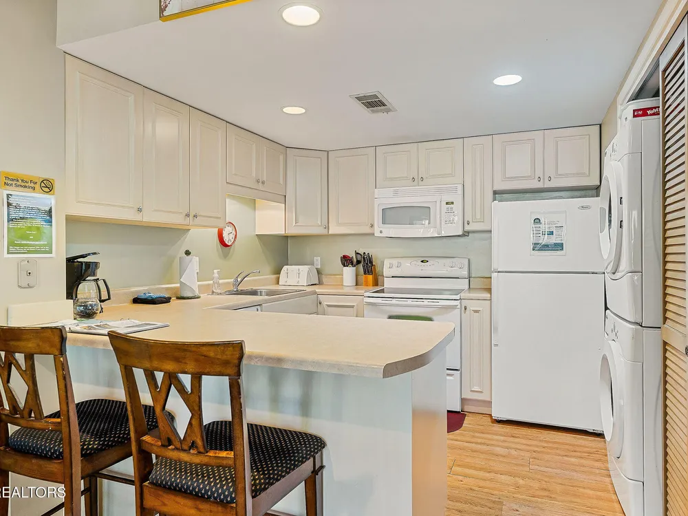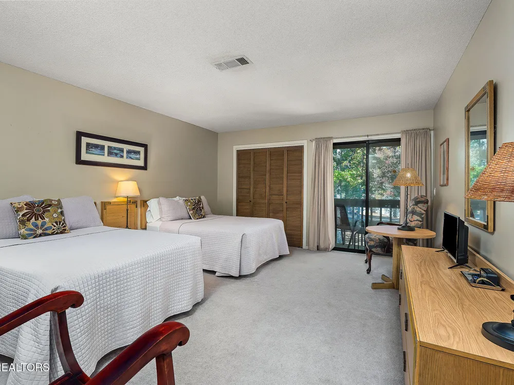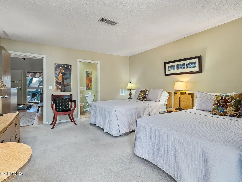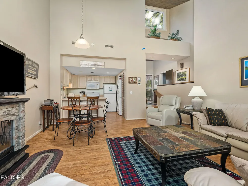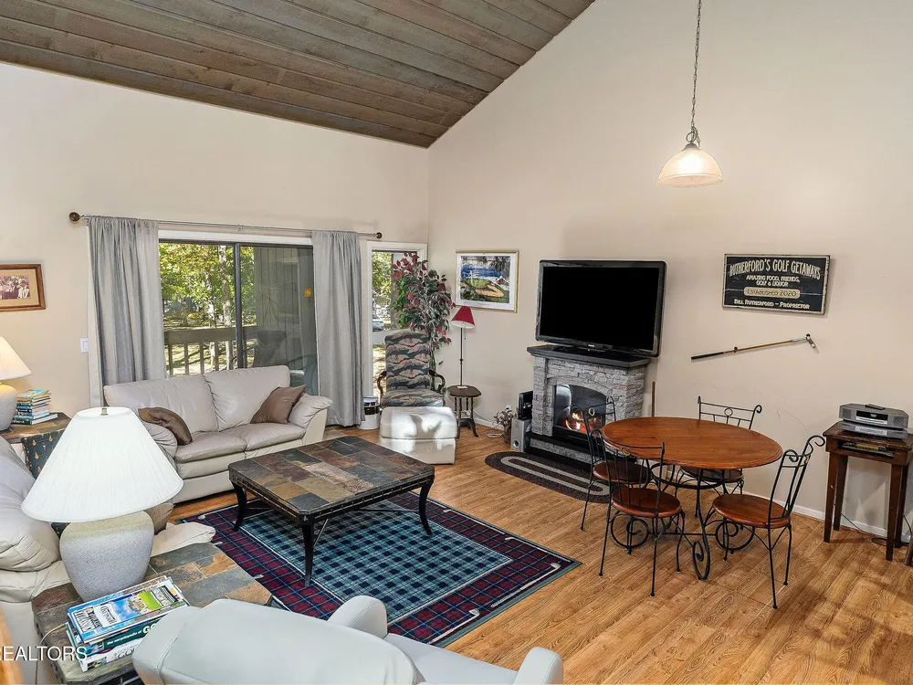 This fully furnished 2-bedroom, 2-bath condo is a great opportunity for rental income or a peaceful retreat. Set in one of the area's most sought-after communities, it's popular with golf package renters and vacationers alike. With over 1,200 square feet of well-designed space, this condo features beautiful new vinyl plank flooring in the living and dining areas, a well as the entryway and hall, plus tall vaulted ceilings and large windows that let in tons of natural light. Both bedrooms include two queen beds and are carpeted with quality flooring that was updated just two years ago. The open living room is warm and inviting with a new electric fireplace, perfect for relaxing after a day spent enjoying all the amenities nearby. The exterior has also been given attention—freshly painted decks, a roof that's just seven years old, and a recently serviced heating and air system offer added peace of mind. Not only are you minutes from scenic hiking trails like the Library Trail, but you're also close to everyday conveniences such as grocery shopping. The community offers five championship golf courses, eleven lakes, two marinas, tennis, pickleball, swimming pools, and more. Whether you're here to play or just get away, there's always something to enjoy. This condo checks the boxes as a smart investment and a comfortable living space. It's move-in ready and waiting—bring your overnight bag, your golf clubs, and maybe a few snacks for the neighbors. Everything, but a few personal items are being sold with the condo. This condo has been on the short-term rental program and has been a great producer, with many existing reservations still in place for 2025. Start making money on this investment immediately after purchasing it! The CCV assoc recently sent a $13,500 assessment to be paid over 3 years to all owners of 2 bedroom condos in the complex. Seller has already paid half $6,750. Copy of letter is in the MLS documents.