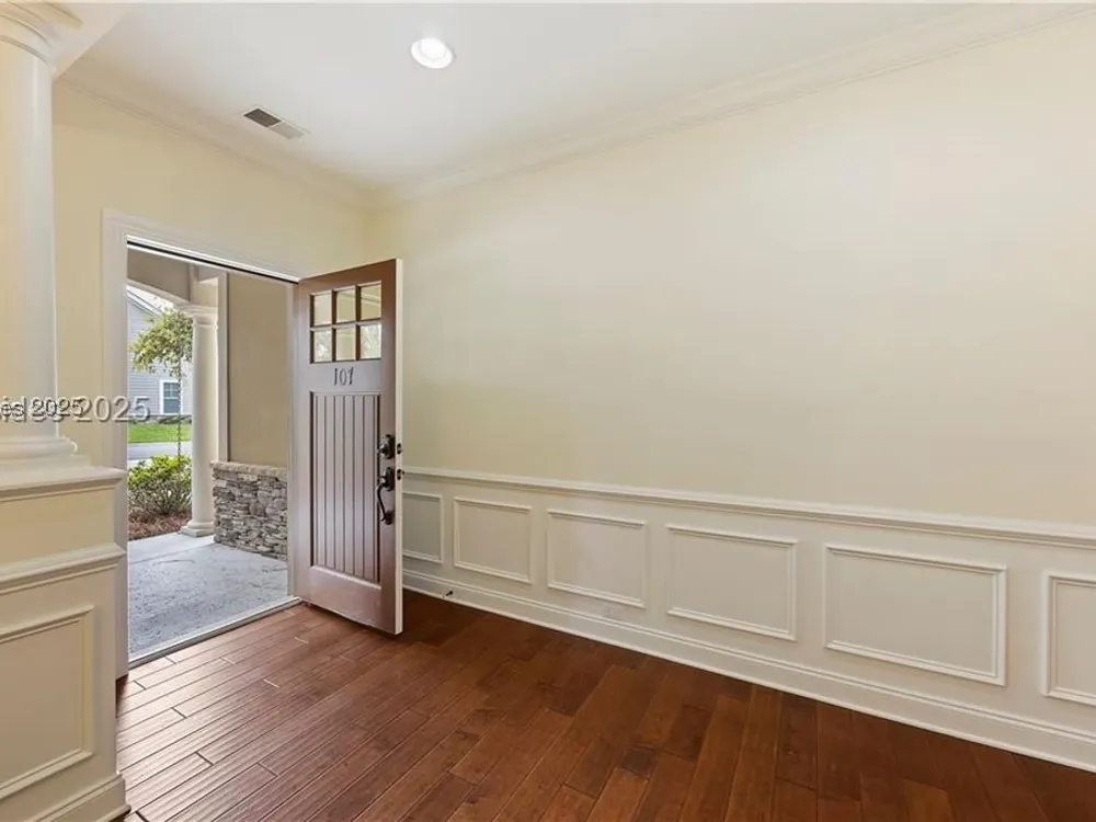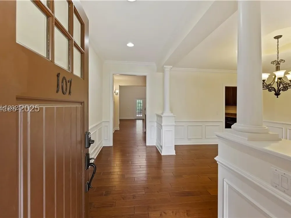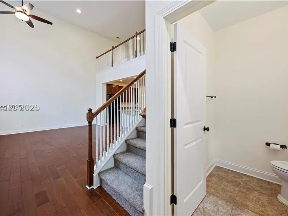 Welcome to 107 Fording Bend, where Lowcountry charm meets true maintenance-free living in the award-winning community of Hampton Lake! Recently refreshed with new paint, new roof, and new carpet upstairs, this home is move-in ready and offers one of the rarest luxuries in Bluffton real estate: zero exterior upkeep. Your HOA covers it all landscaping, pest control, roof and exterior home maintenance, even homeowners insurance making this the perfect full-time residence or effortless lock-and-leave getaway. Step inside and be wowed by the soaring ceilings of the great room, where natural light pours across gleaming hardwood floors. The open-concept design connects seamlessly to a gourmet kitchen with granite countertops, stainless appliances, and a large island ideal for entertaining. The primary suite on the main floor features a spa-like bath, walk-in closet, and an incredible sitting room retreat the perfect place for morning coffee or winding down with a good book. Outdoor living shines here with a covered and screened lanai overlooking a permanent private nature preserve. Enjoy year-round tranquility, knowing your backyard views will always remain green and private. Upstairs, two spacious bedrooms, a loft, and a versatile media room provide ample space for guests, hobbies, or a second living area that overlooks the main floor. Whether its movie nights, a home office, or a playroom, the possibilities are endless. Beyond your front door, Hampton Lake offers resort-style amenities unlike any other: a 165-acre freshwater lake with boating and fishing, a resort pool with lazy river, spa and fitness center, pickleball and tennis courts, on-site dining at Backwater Bills, miles of walking trails, dog park, and more. 107 Fording Bend is an exceptional opportunity to experience the very best of Bluffton living with none of the hassle. This is a must-see home for anyone seeking Lowcountry luxury made easy.