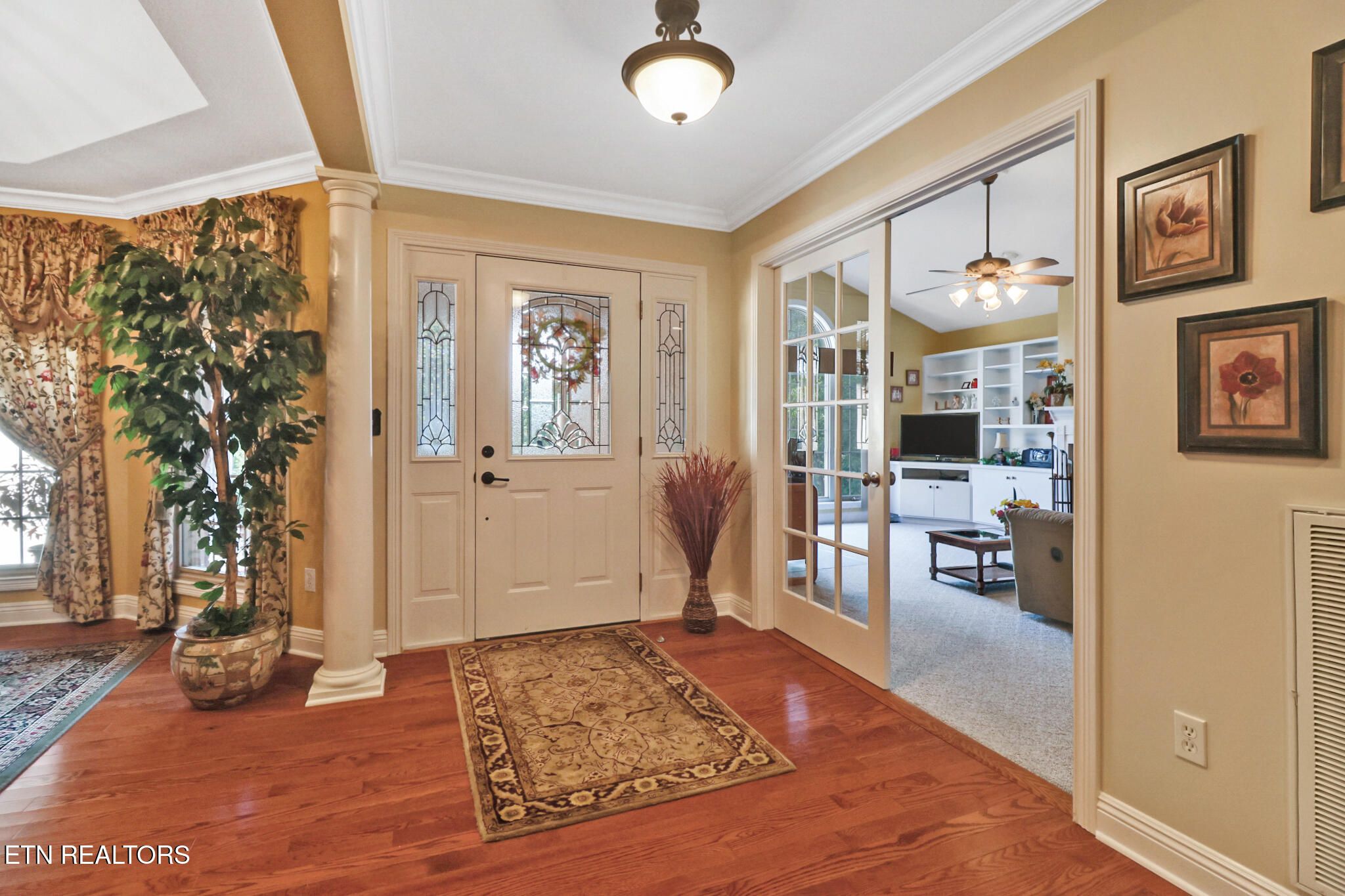 WOW! Looking for PERFECTION?! This elegant ranch home is located on the 17th fairway of the Brea Golf Course. The 2396 square foot home has been meticulously maintained by its one proud owner. The home is hidden from the road by its gorgeous landscaped front yard. You'll pull up to a brick home and a 3 car garage. Step inside and onto new hardwood flooring (6 months old). The entrance way has crown molding. On your right is a formal dining room with trey ceiling and crown molding. On your left is a library with vaulted ceilings, built in bookshelves and a gas log fireplace. This room can be used for so many different functions - as a library, office, media room, use your imagination... Continue into the living room with its vaulted ceiling and large window overlooking the golf course and remote blinds. The kitchen features granite countertops, pull out shelves, recessed lighting and pantry. Off the kitchen is a 3 season room where you can enjoy the beauty of the back yard and the golf course and relax. . Rounding out this home is its split bedroom floor plan. The large primary bedroom has a trey ceiling, crown molding and views. The primary bath has a faux marble paneling walk in shower, dual vanities, tile flooring, linen closet and walk in closet. The guest bedrooms both feature large closets, ceiling fans and carpeting. The guest bath has a tub/shower combo with dual sinks. Laundry room is tiled. To round out this home you have a 3 car garage with an outside sink. The crawl space is encapsulated. Furnishings are negotiable.