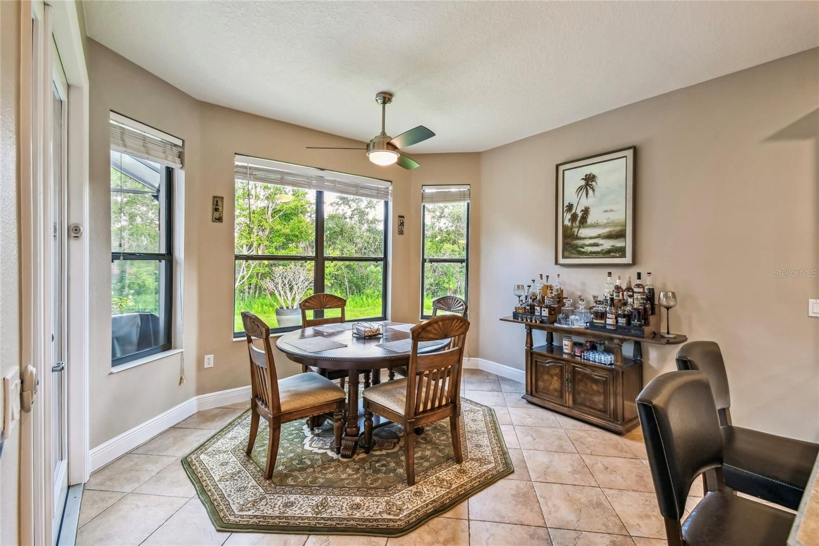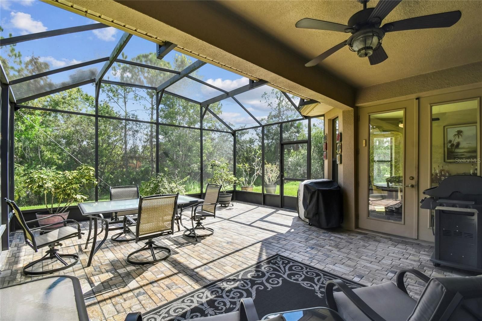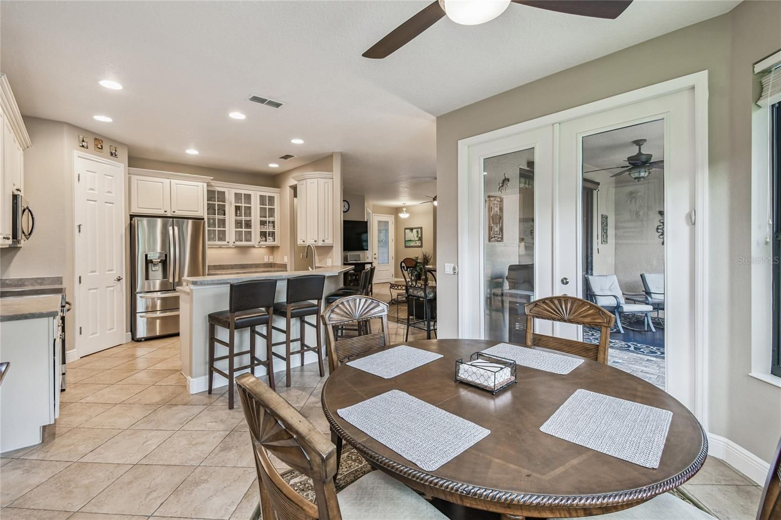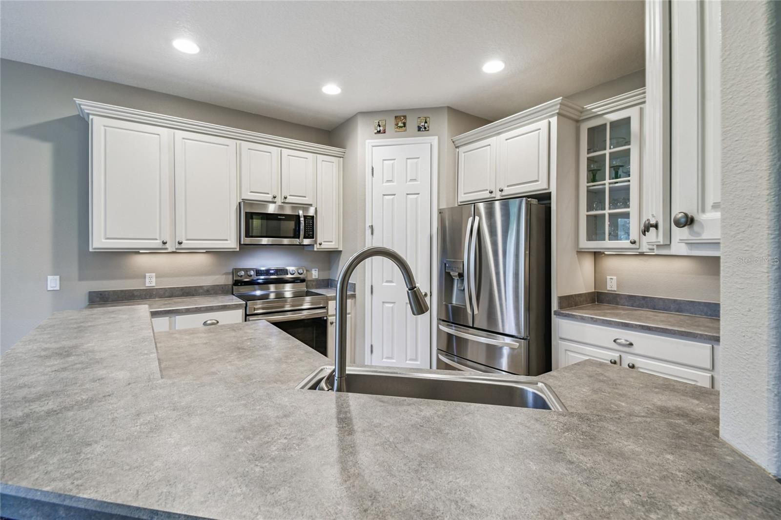 WELCOME TO THIS BEAUTIFUL PORT ROYAL MODEL! NEW ROOF 2023. HWH replaced in 2023 and HVAC replaced in 2018. Nestled on a quiet CUL-DE SAC and set on a serene and private conservation lot with water views on one side, this home offers both privacy and tranquility. Step inside to find CERAMIC TILE on the diagonal that leads you through a warm and inviting living space with tall ceilings and an OPEN FLOOR PLAN. All bedrooms feature new luxury vinyl flooring, combining style with easy maintenance. The kitchen features ALL-NEW stainless steel appliances, 42-inch cabinets with glass fronts and lower pull-out shelves, and a closet pantry — perfect for any home chef. The adjacent dining area includes a charming BAY WINDOW BUMP-OUT, creating a bright and welcoming space for entertaining, while FRENCH DOORS open to the private lanai for seamless indoor-outdoor living. The spacious PRIMARY SUITE includes a WALK-IN closet and a beautifully appointed ENSUITE BATH with an open walk-in shower featuring a decorative listello border, raised vanities, DUAL SINKS, upgraded LIGHTING and MIRRORS, a linen closet, and a private commode. The split floor plan provides privacy for guests, with a second bedroom and full bath located on the opposite side of the home. The den, with double doors, offers versatility as a third bedroom, home office, or media room. Relax and unwind on the EXTENDED, SCREENED and covered 20X22 EAST-FACING lanai with porcelain tile flooring, where you can enjoy gorgeous sunrises and your morning coffee while surrounded by peaceful natural views. A separate laundry room features a NEW washer and dryer (2025) and upper storage cabinets for extra storage. WHOLE HOUSE WATER FILTRATION SYSTEM installed in 2024. EXTERIOR PAINTED IN 2021. Two car garage with PULL DOWN ATTIC STAIRS. The HOA: - maintains the LANDSCAPING & IRRIGATION systems in the common areas as well as at individual homesites - maintains the roads throughout the community - PROVIDES SECURITY with gate guards and mobile patrols including the Polk County Sheriff - allows AUTOMATED GATE ACCESS for residents via license plate readers - provides residents with Fiber Optic Internet & TV service.***Poinciana Lakes Plaza is a MAJOR NEW SHOPPING CENTER that opened directly across from the Solivita Main Gate in Summer of 2024. It features Sprouts Grocery, TJ MAXX, Ross, Burlington, Rack Room Shoes, 5 Below, Ulta, Outback, First Watch, 5 Guys, Urgent Care, Dentist, TD Bank, Petco & Hair Cuttery PLUS MORE TO COME.***