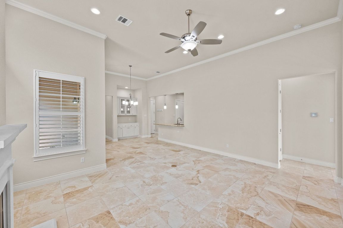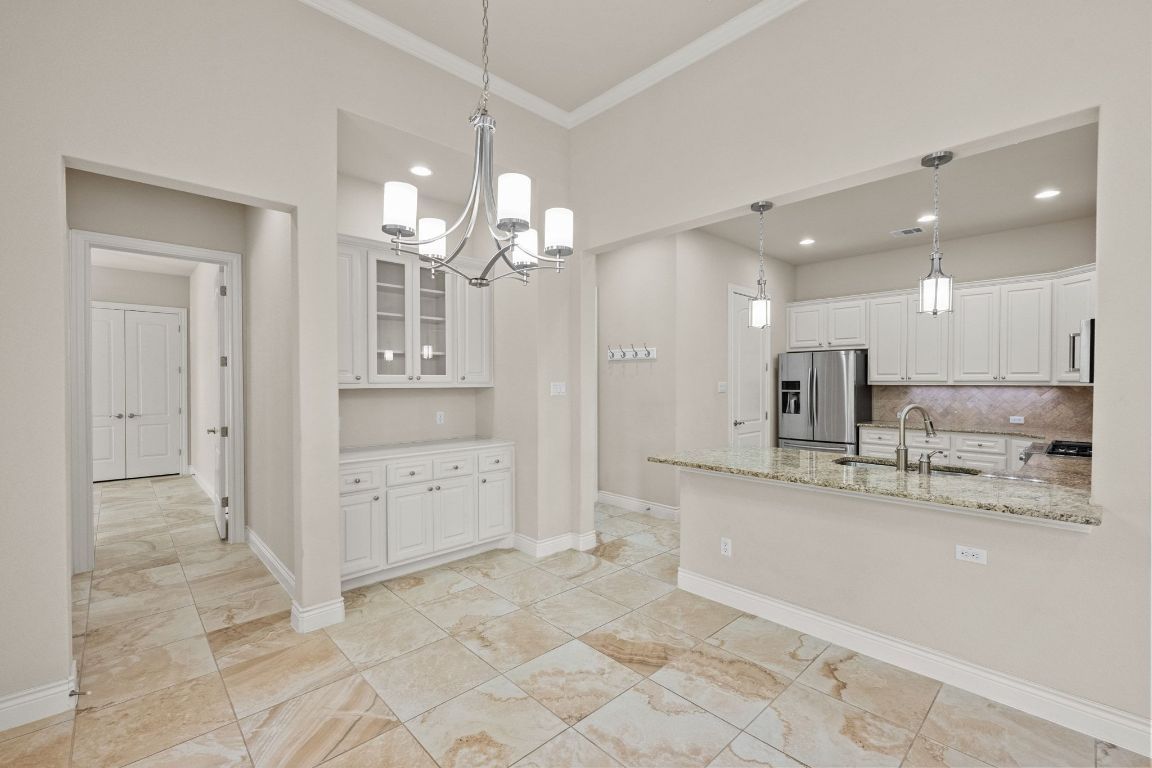 - Breakfast Bar, Bookcases, Built-in Features, Crown Molding, Granite Counters, High Ceilings, Main Level Primary, NoInteriorSteps, Open Floorplan, Pantry, Recessed Lighting, Storage, Walk-In Closet(s)