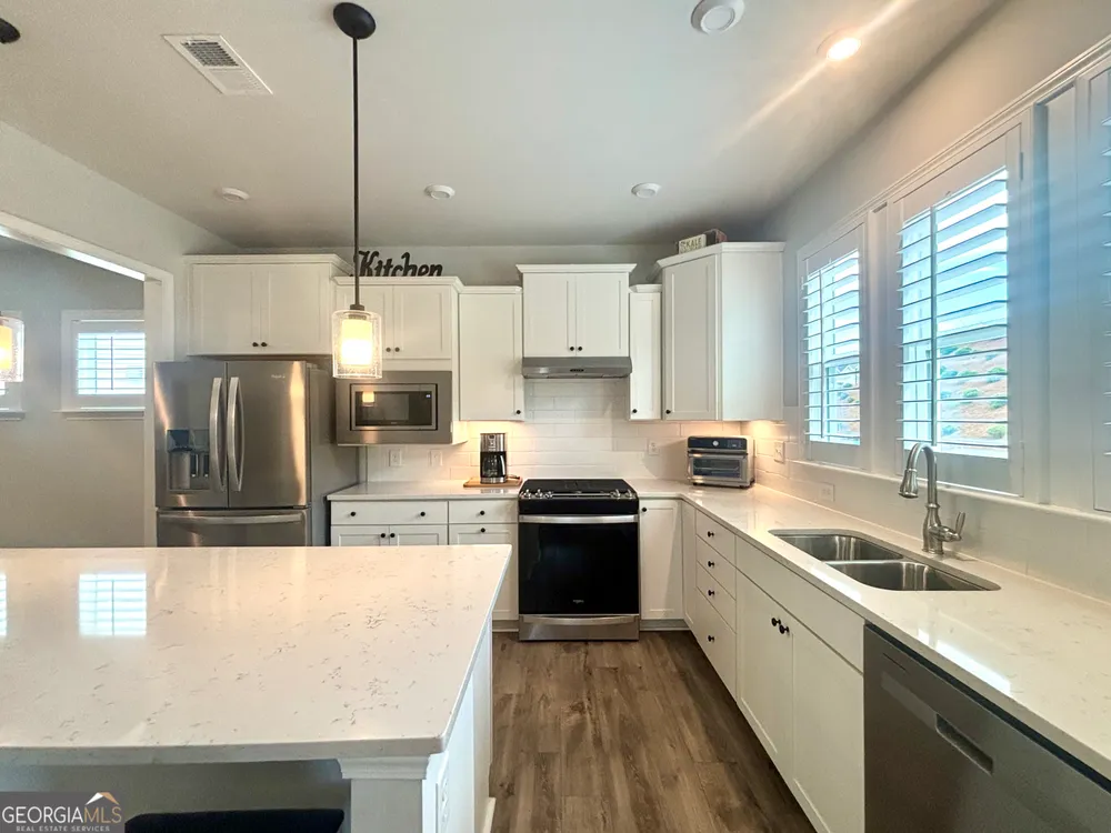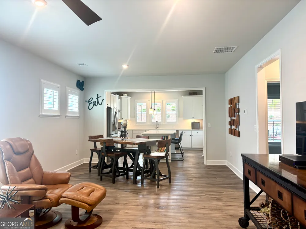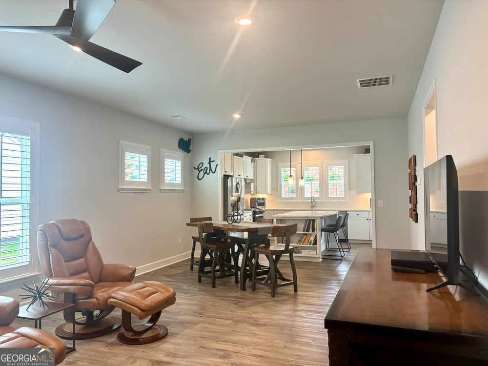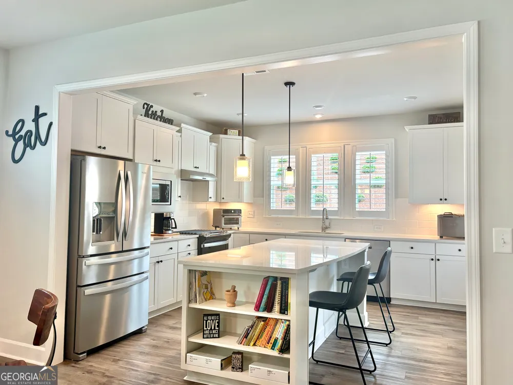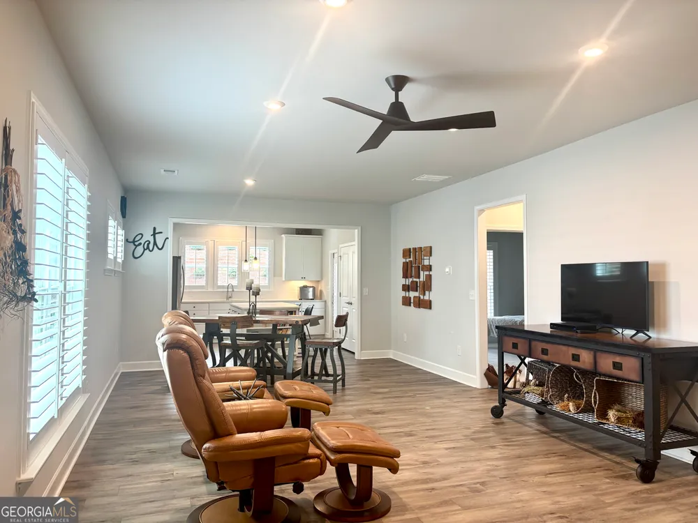 Imagine starting your mornings with coffee on a covered lanai, surrounded by the peaceful setting of one of Georgia's most welcoming 55+ communities. This beautiful 2023 Taft Street home isn't just a house-it's a lifestyle! Step inside and be greeted by an open, airy layout filled with natural light, timeless plantation shutters, and stylish upgraded flooring throughout. The heart of the home is the designer kitchen, where friends and family will naturally gather around the oversized quartz island. With white soft-close cabinetry, roller shelves, and stainless steel appliances, this kitchen is as functional as it is beautiful. Your owner's suite is a true retreat, featuring a tray ceiling, large walk-in closet, and a spa-like tiled shower with bench. There's also a flex office space-perfect for reading, hobbies, or working from home. And it doesn't stop there! The extended garage is a dream for storage and projects with epoxy flooring, custom-built shelving, attic access, and added security features. At Sun City Peachtree, you'll enjoy resort-style living every day-an 18-hole golf course, clubhouse, pools, pickleball, fitness center, walking trails, social clubs, concerts, and more. This is more than a home. It's the active, low-maintenance, fun-filled lifestyle you've been waiting for. Come see why 107 McKay Drive is the perfect place to call home.